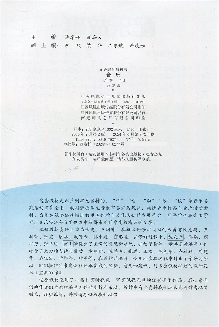 2024年秋 小学音乐课本 三年级上册 五线谱 3上 小学音乐教材 苏少版 学生用书 官方直营正版 江苏凤凰少年儿童出版社 SS