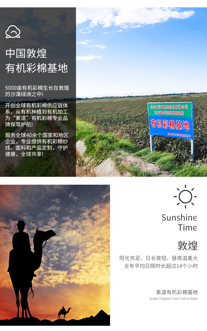 - 素道有机彩棉,源自2005年的健康纺织品牌,为上百万户家庭解决“穿”的健康、“用”的放心的问题。