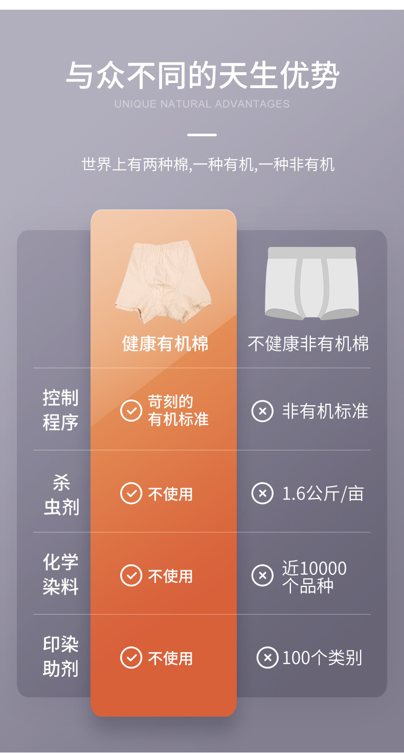 素道天然有机彩棉男士棉质平角裤 宽松大码内裤 透气舒适四角短裤