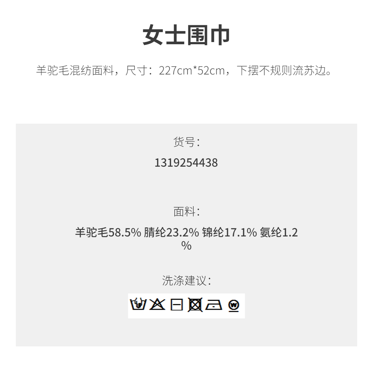 商场同款PURE TOUCH女装25秋冬新款羊驼毛混纺围巾227*52cm
