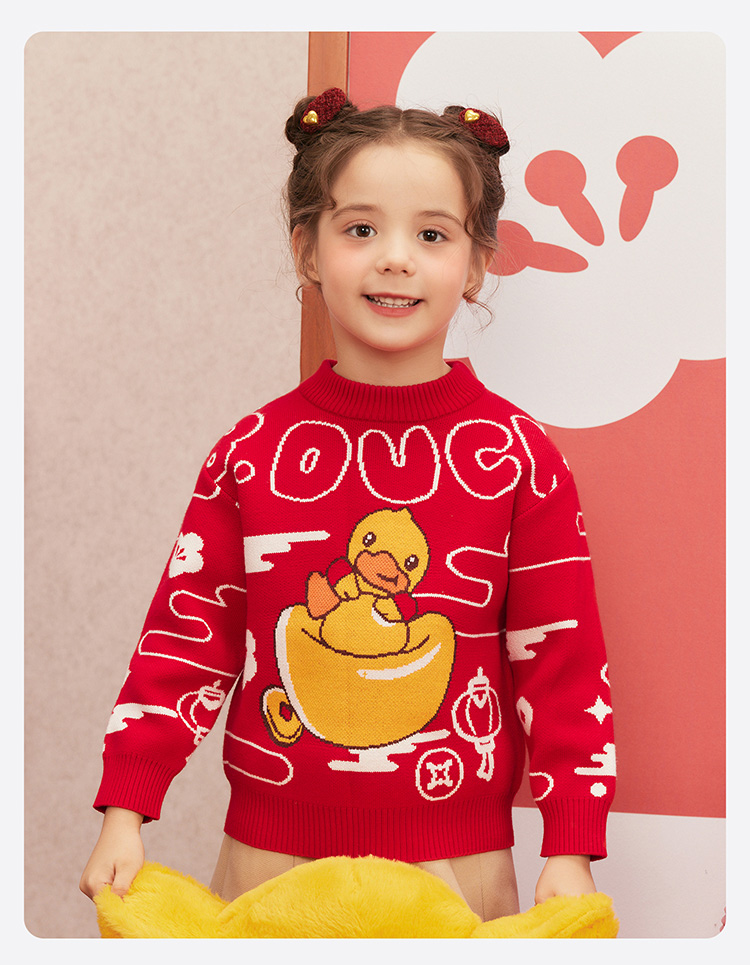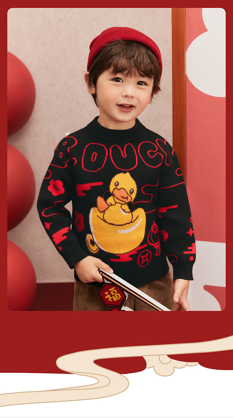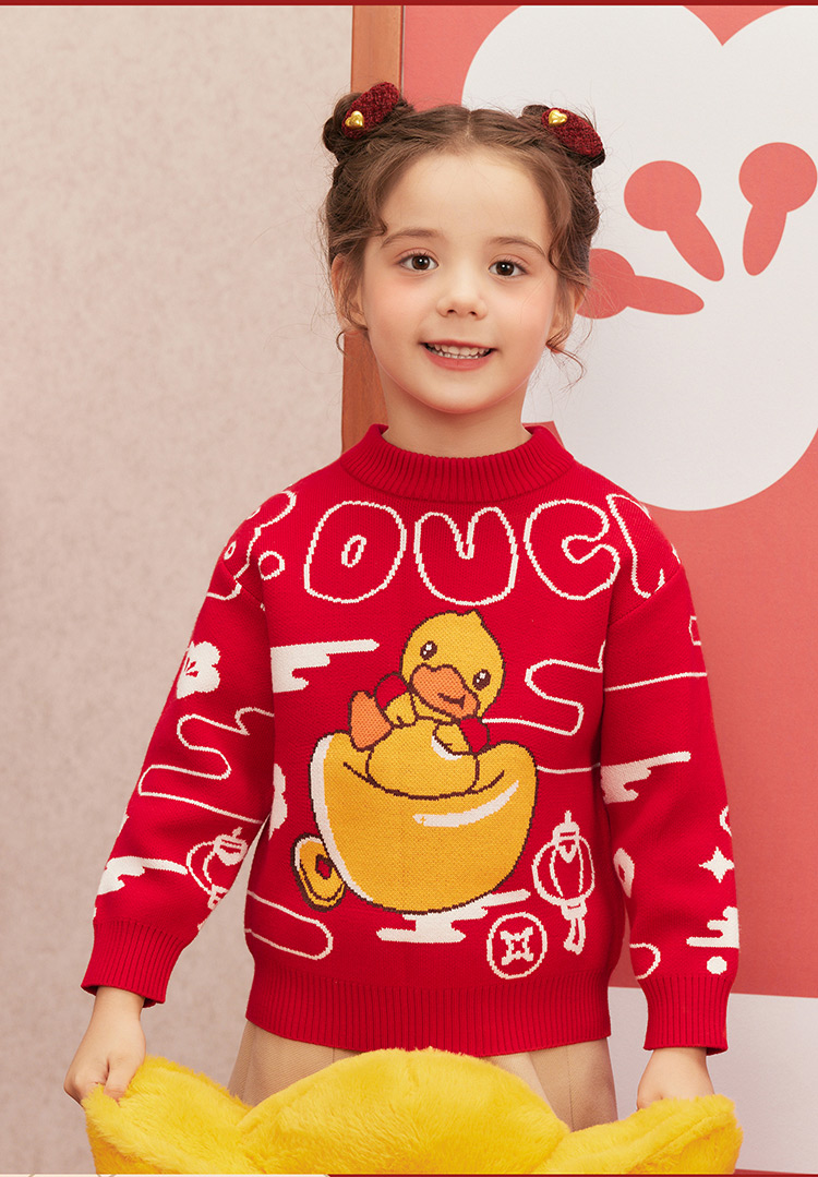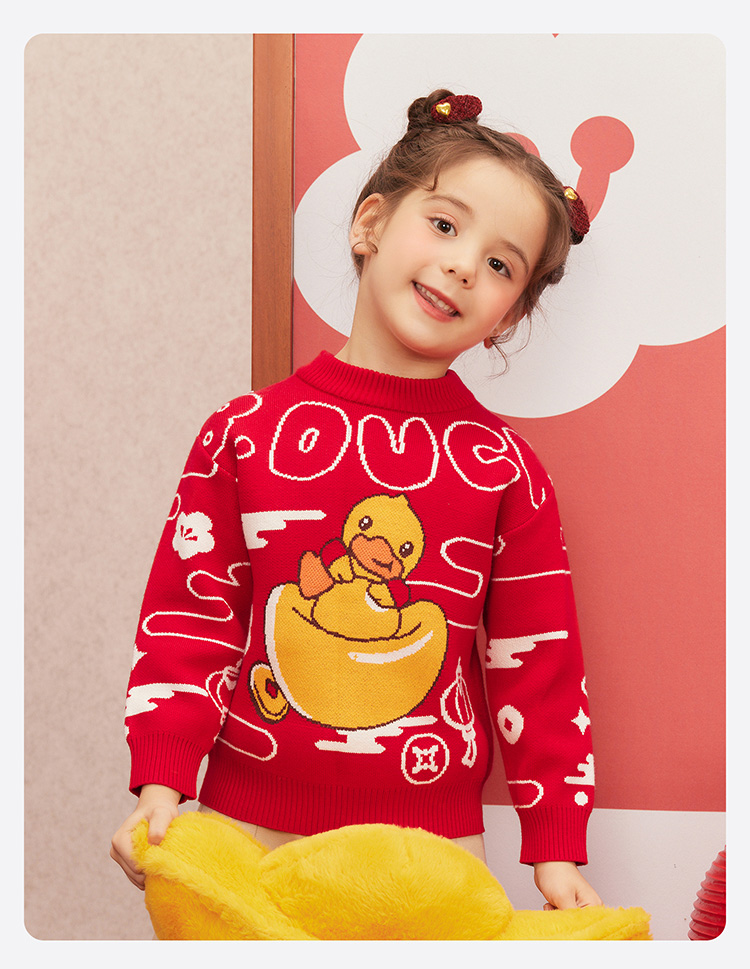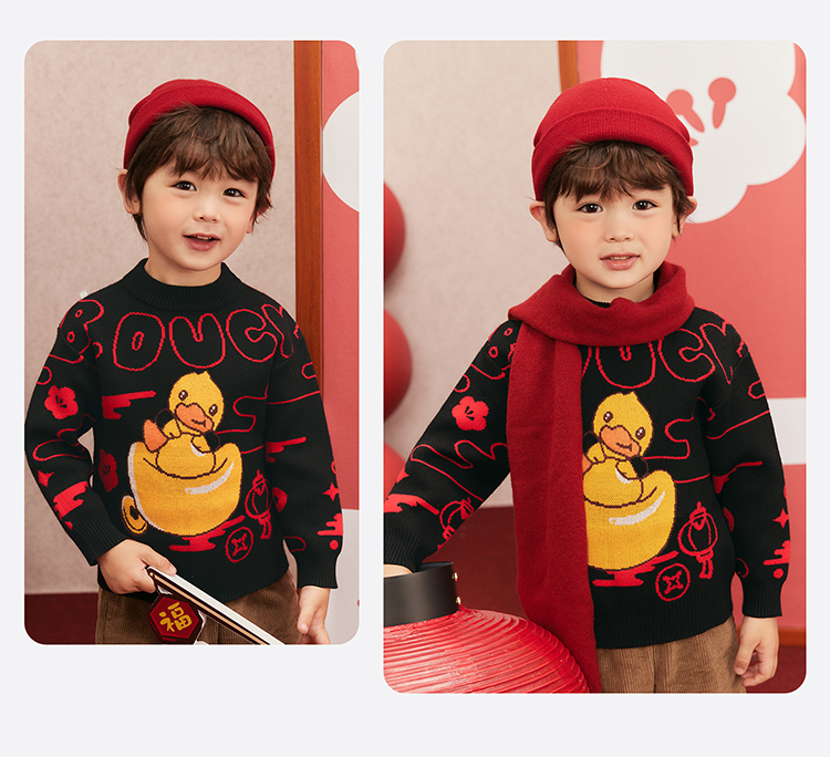 B.Duck小黄鸭童装冬季男童圆领卡通针织衫上衣保暖105-150 BF5512061