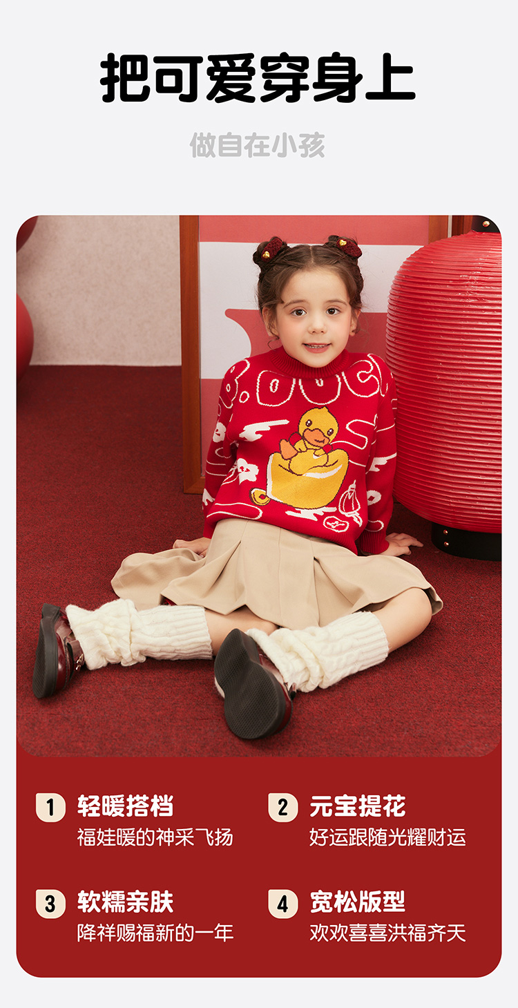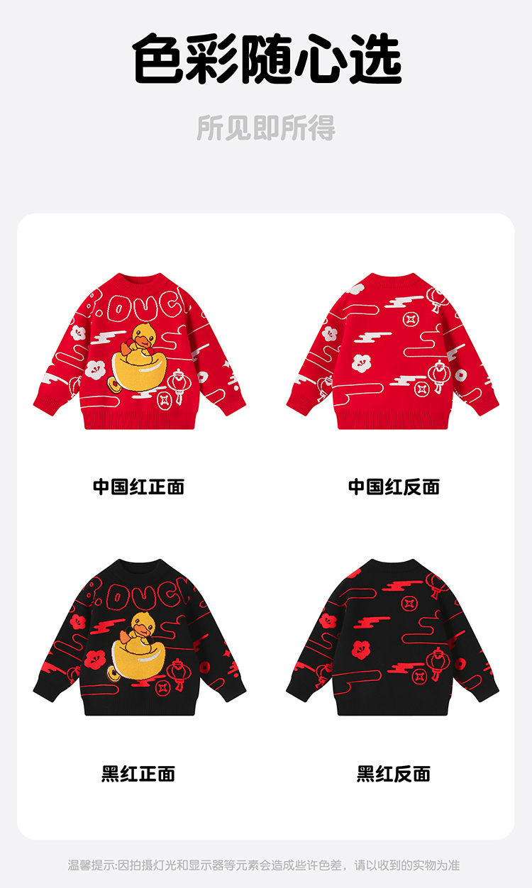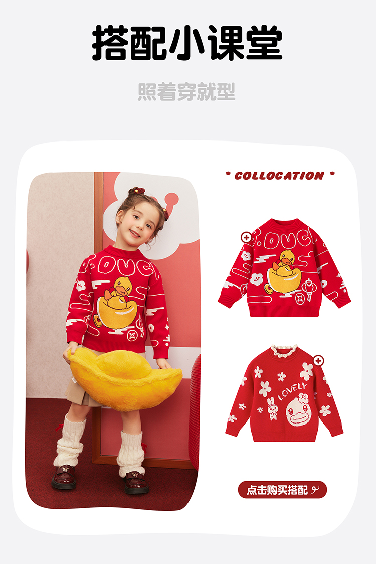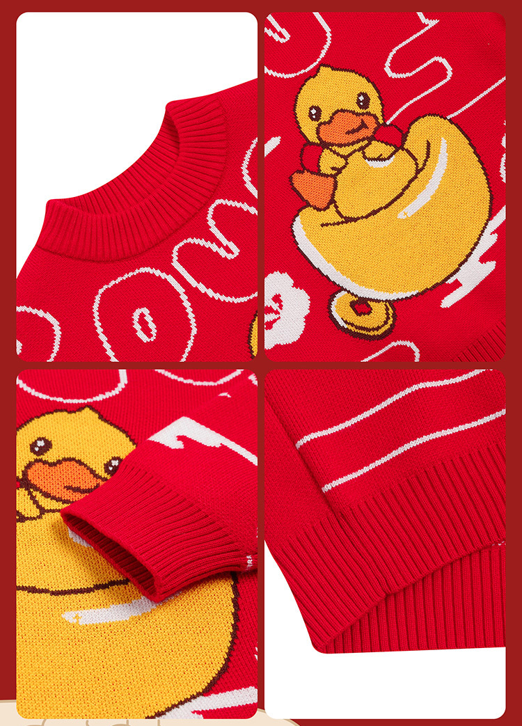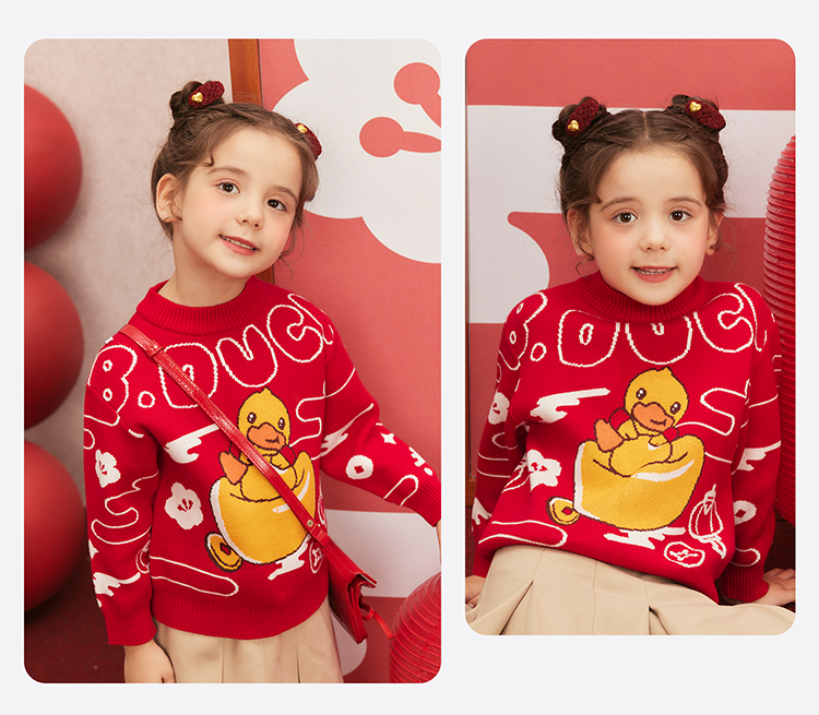 B.Duck小黄鸭童装冬季男童圆领卡通针织衫上衣保暖105-150 BF5512061