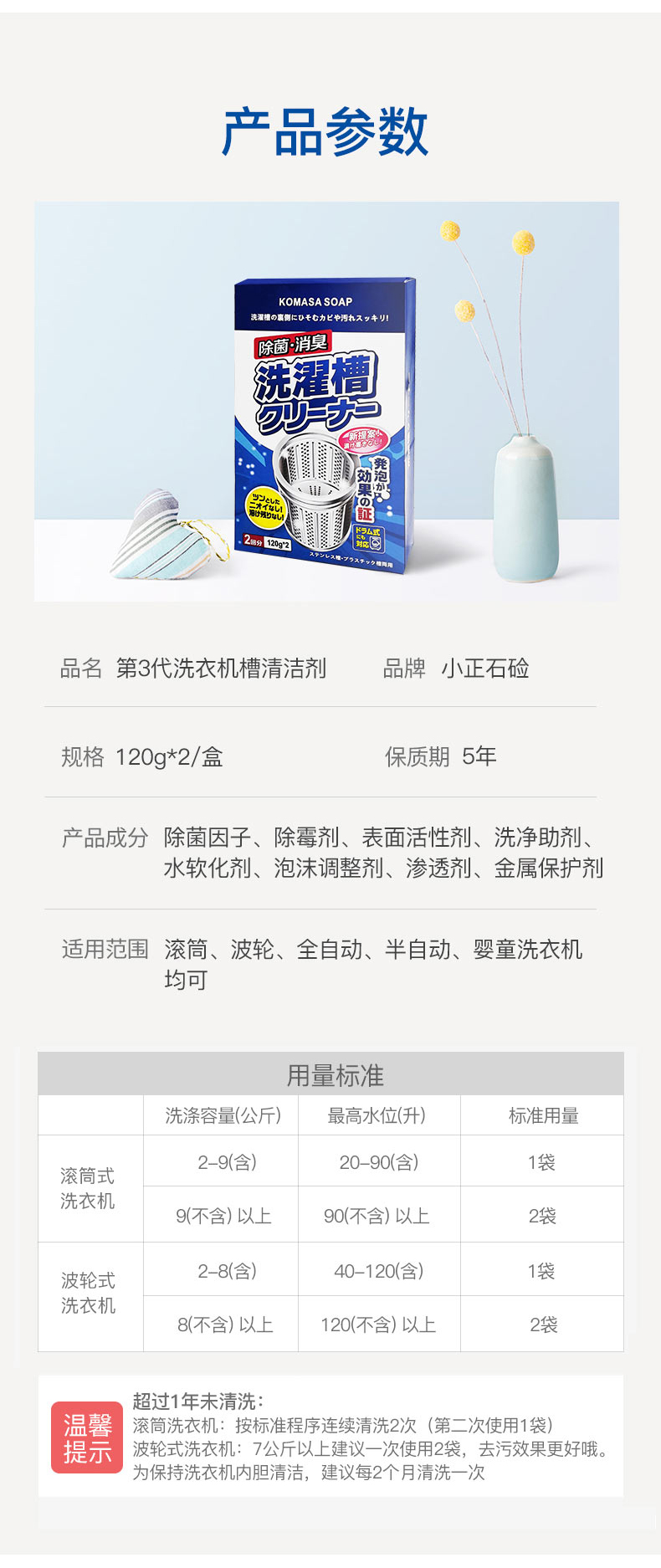 小正石硷洗衣机槽清洗剂除菌消毒洗衣机强效去污粉120g*2/盒