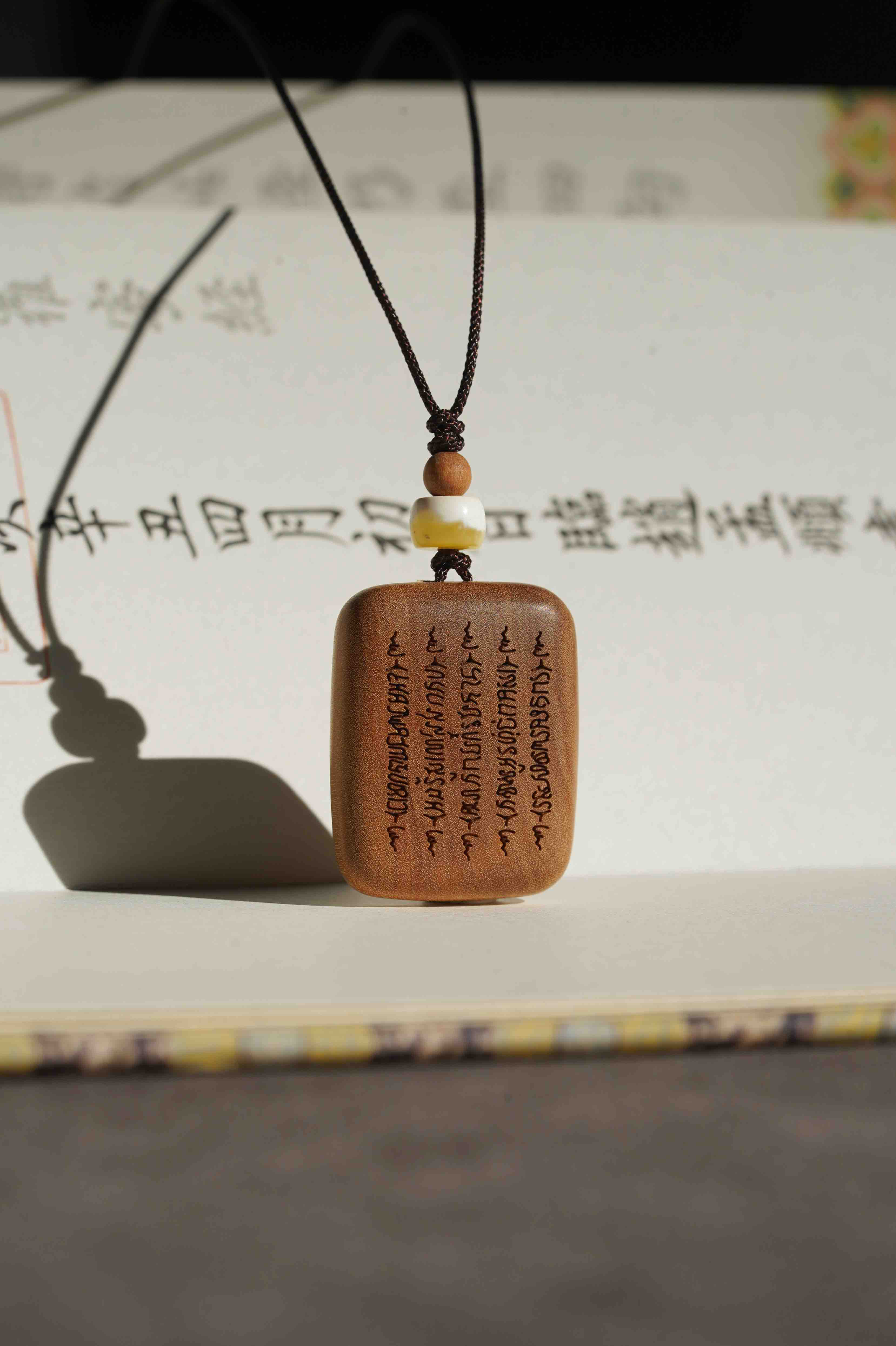老山檀香手工雕刻无事牌,梵文平安喜乐,招财聚福。