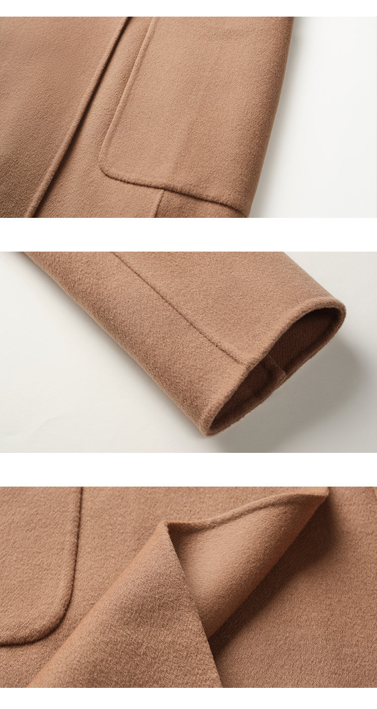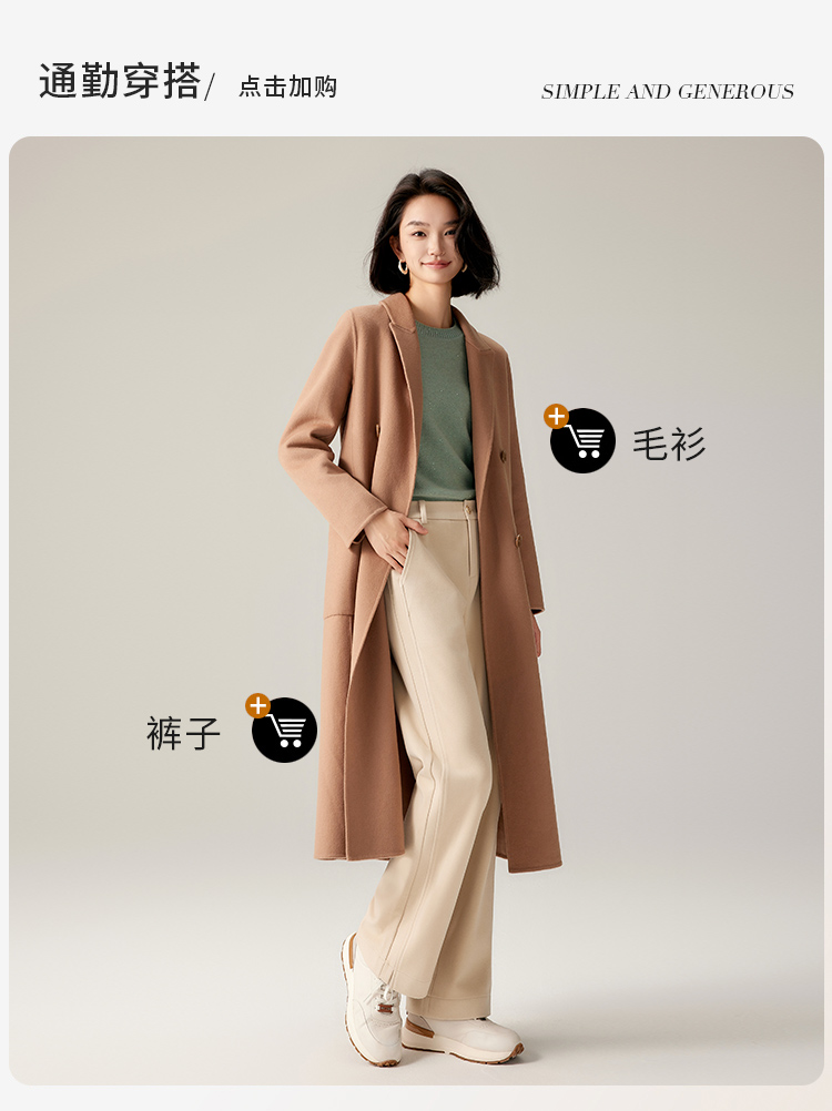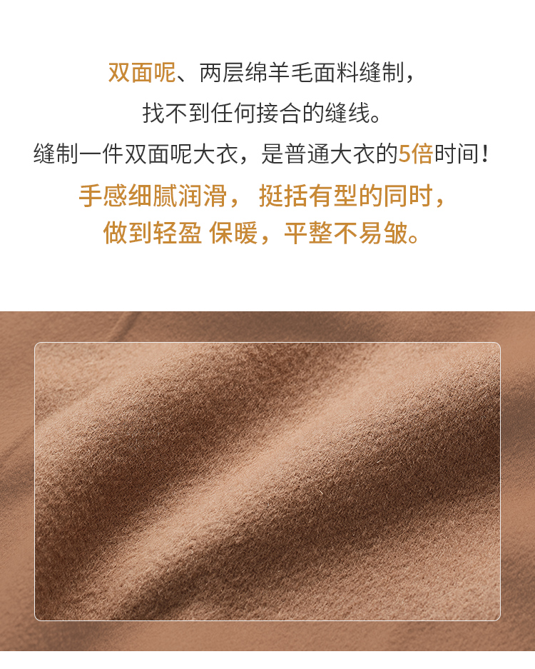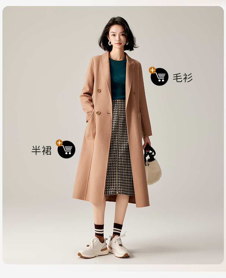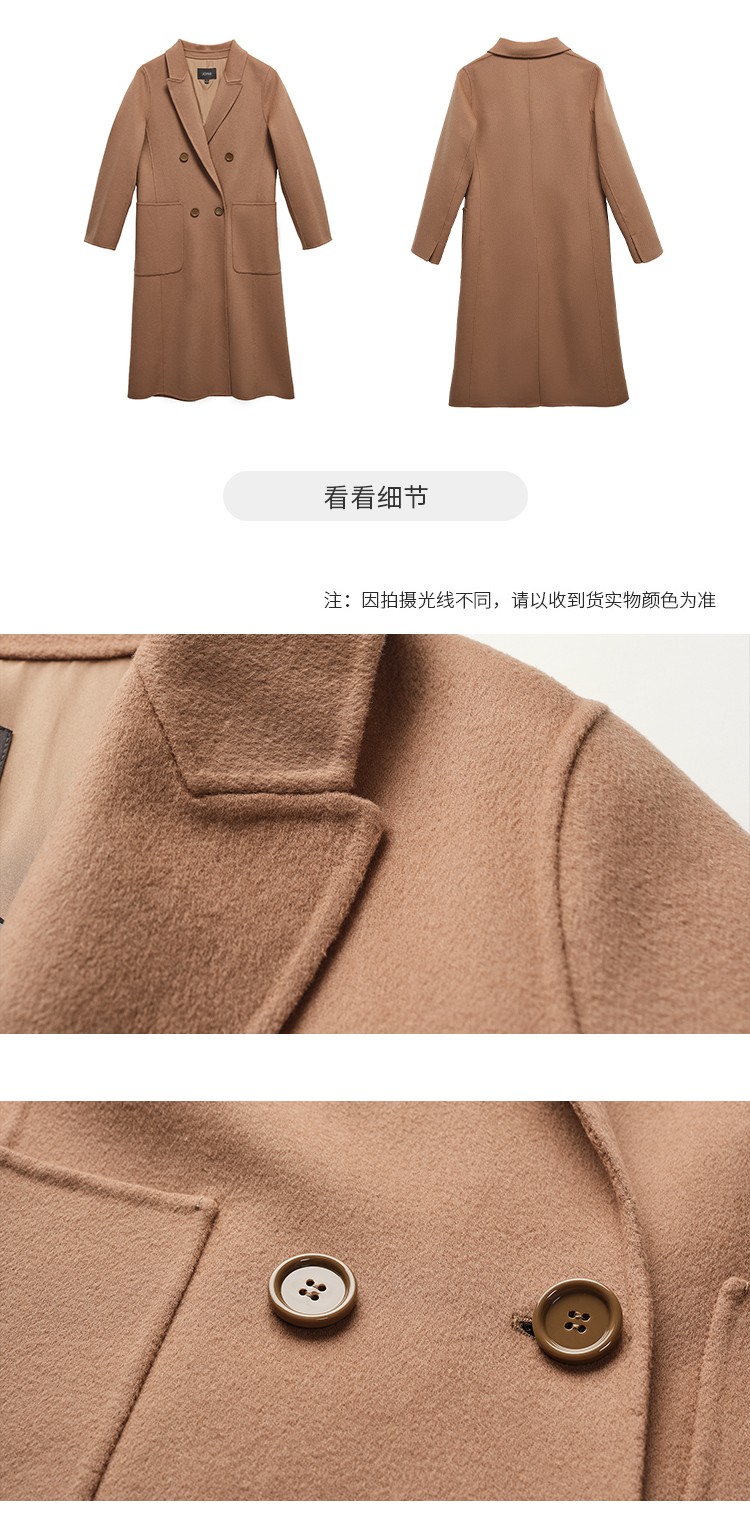 【商场同款】CJCI011 时尚气质毛呢大衣 双面呢 摩卡色 摩登通勤 双排扣气质款中长大衣 绵羊毛 气质