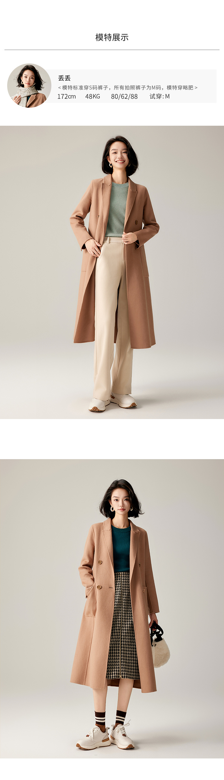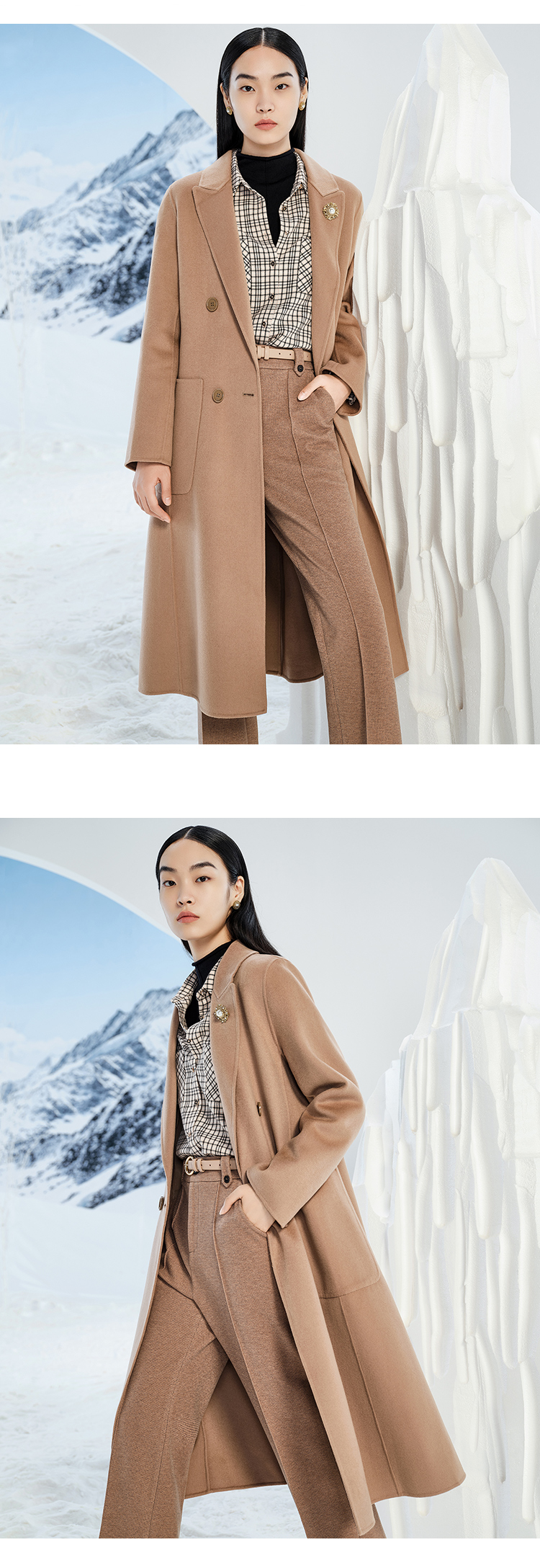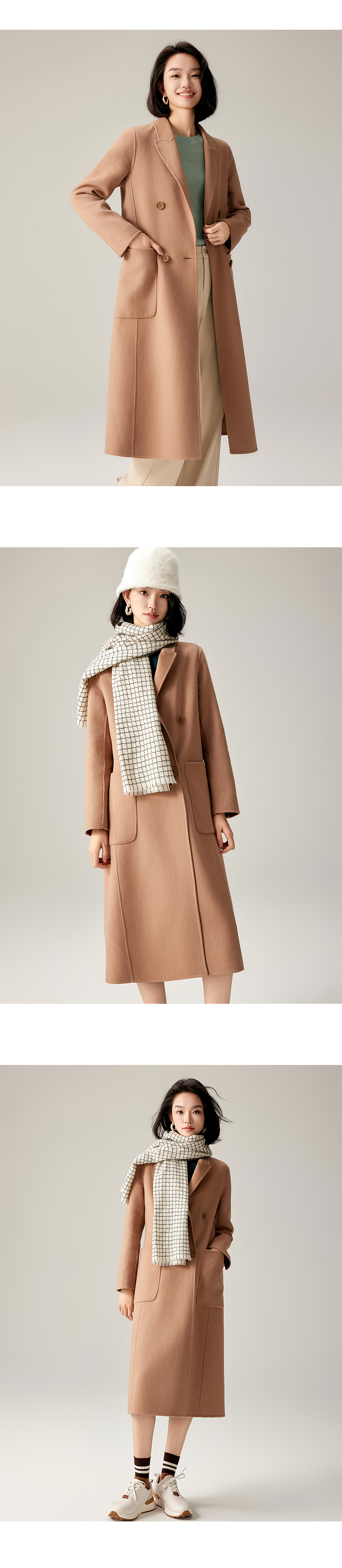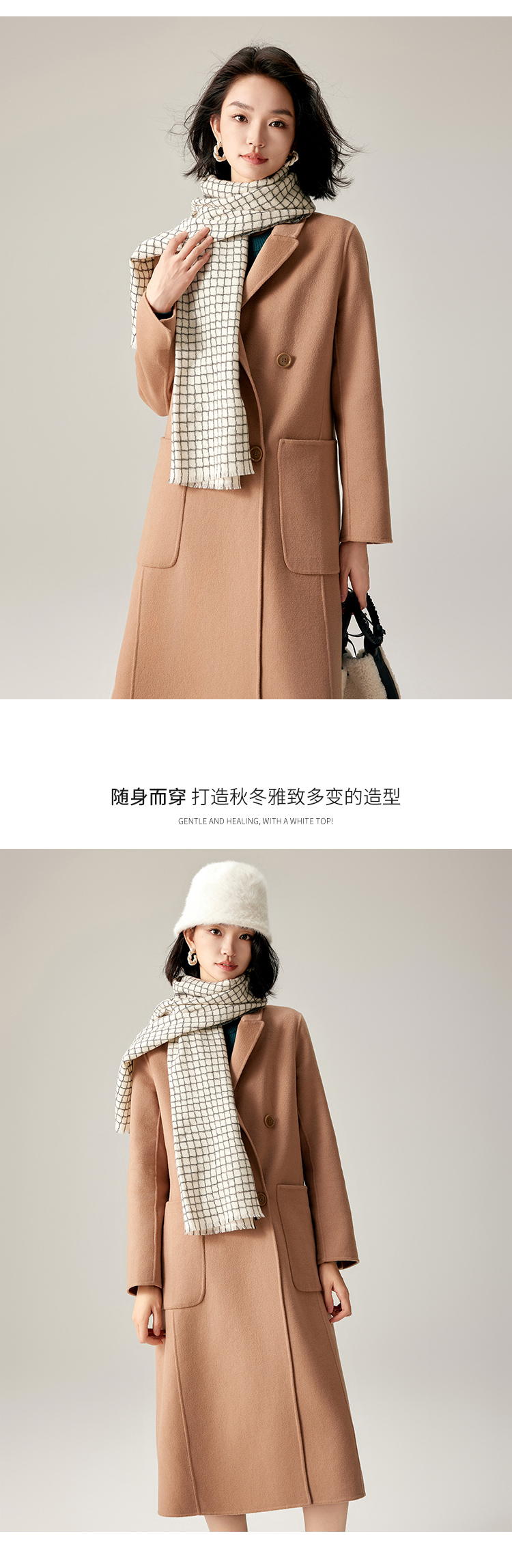 【商场同款】CJCI011 时尚气质毛呢大衣 双面呢 摩卡色 摩登通勤 双排扣气质款中长大衣 绵羊毛 气质