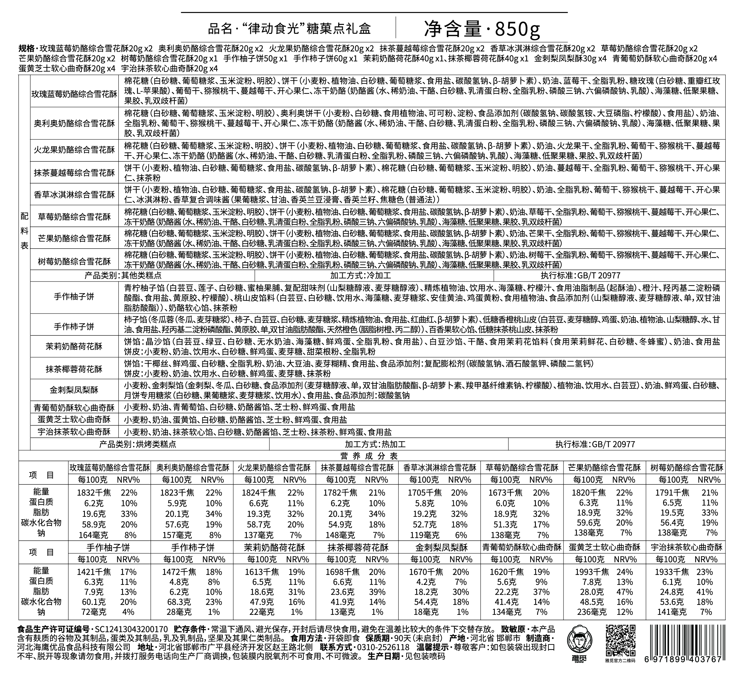 雅觅 雪花酥抹茶椰凤梨酥曲奇综合糕点礼盒律动时光850g 35枚办公室休闲零食早餐茶点心 送礼佳品