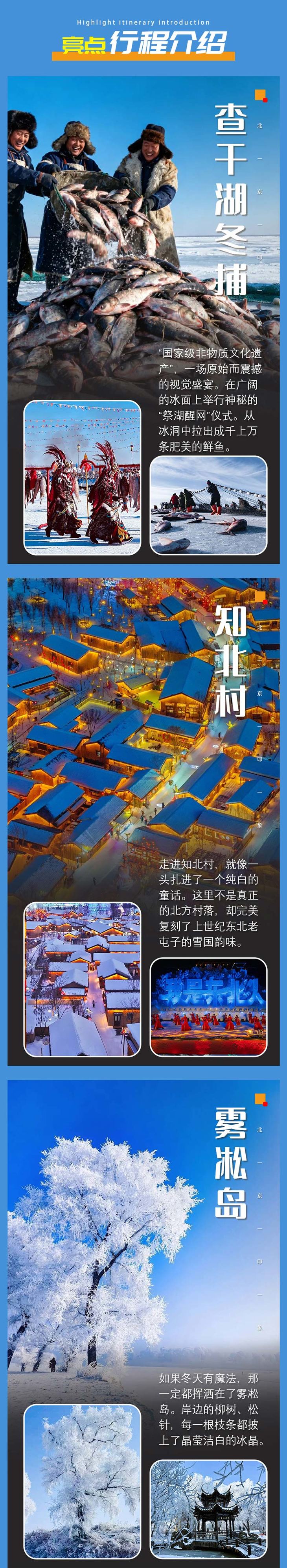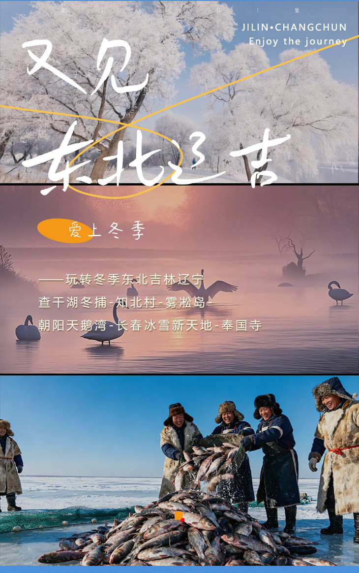 2)门票:查干湖冬捕80元,知北村58元,雾凇岛团体70,奉国寺团体42元,冰雪新天地268元(自愿前往);门票价格供参考,以景区实际政策为准;