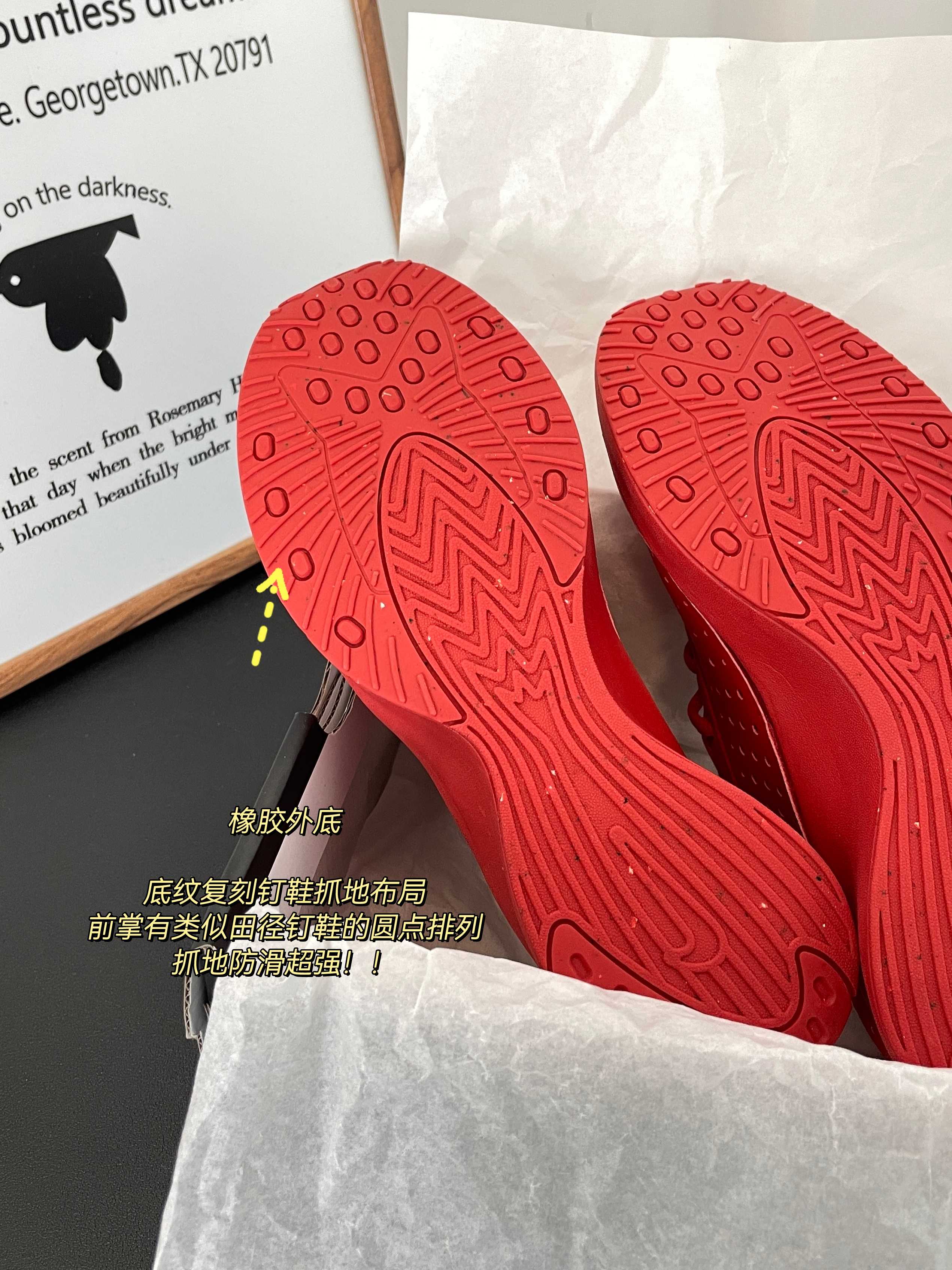 橡胶外底 底纹复刻钉鞋抓地布局 前掌有类似田径钉鞋的圆点排列 抓地防滑超强!!