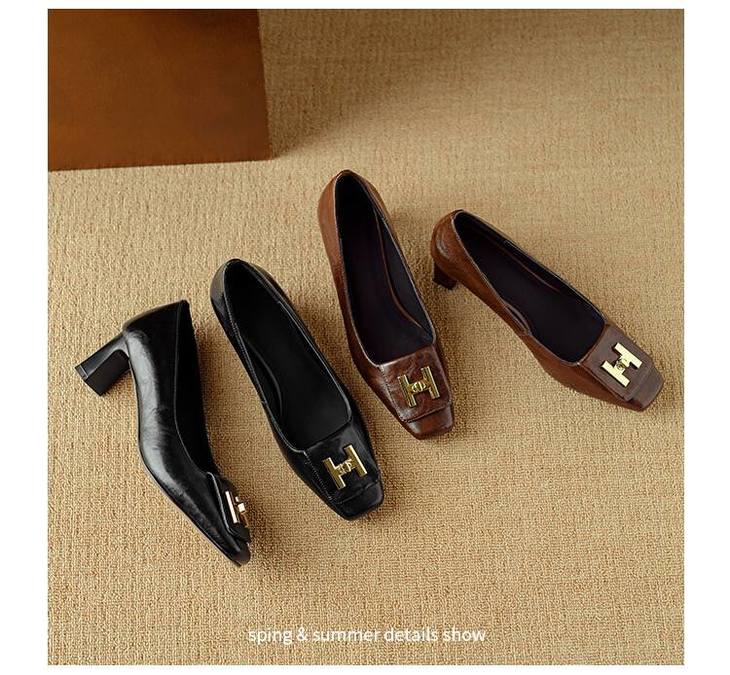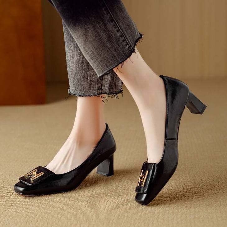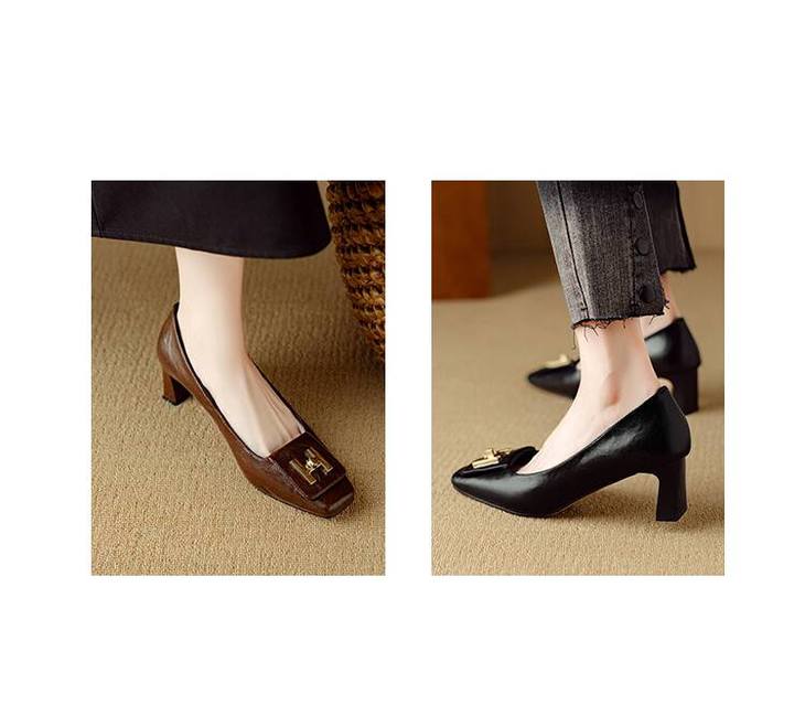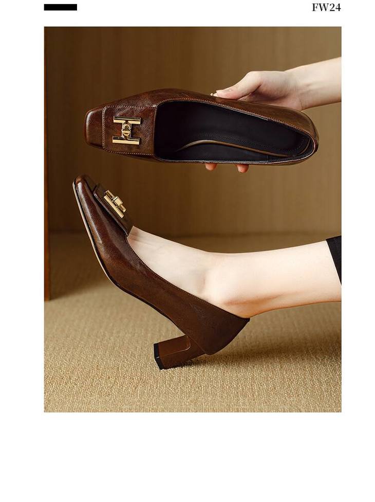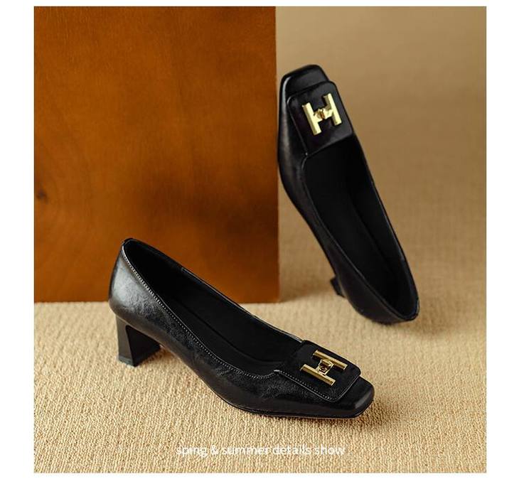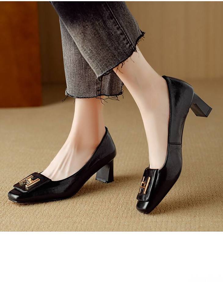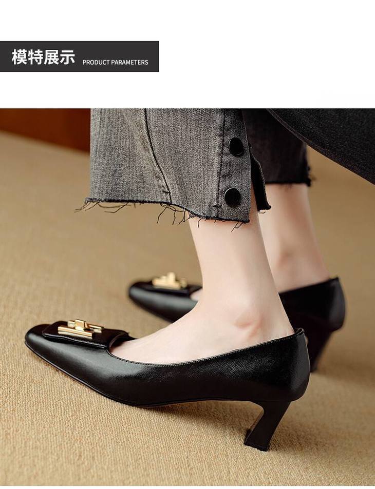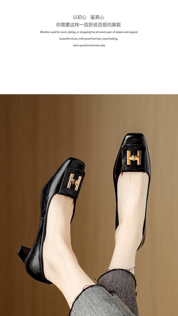 【预售5天】优雅气质女鞋方头粗跟秋春季新款鞋子金属扣四季通勤单鞋DB&M6018