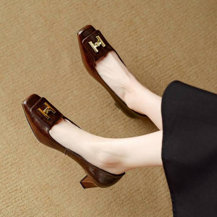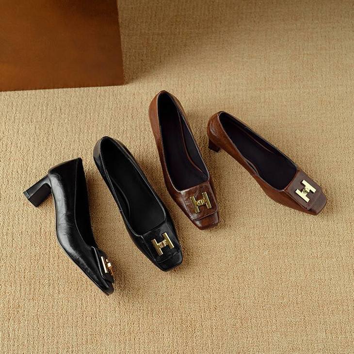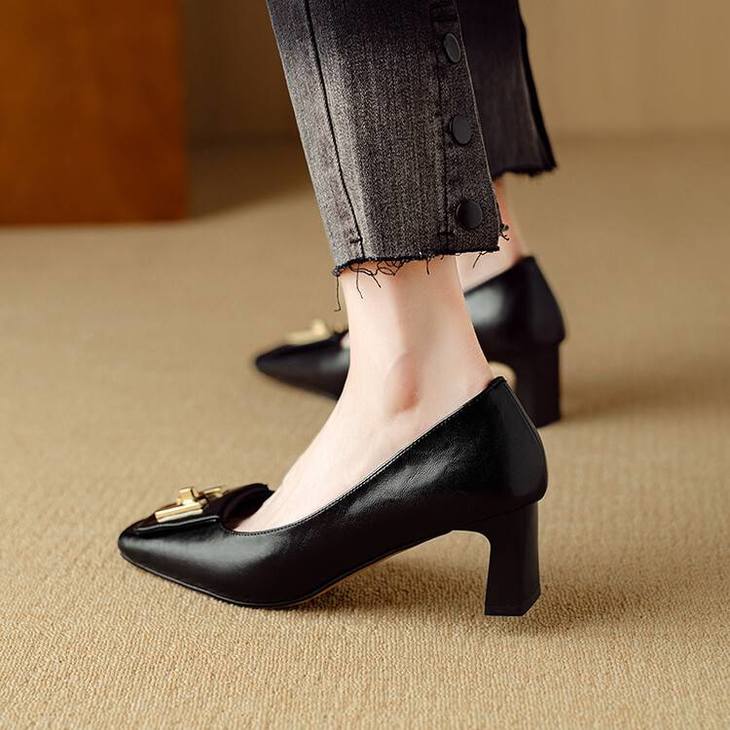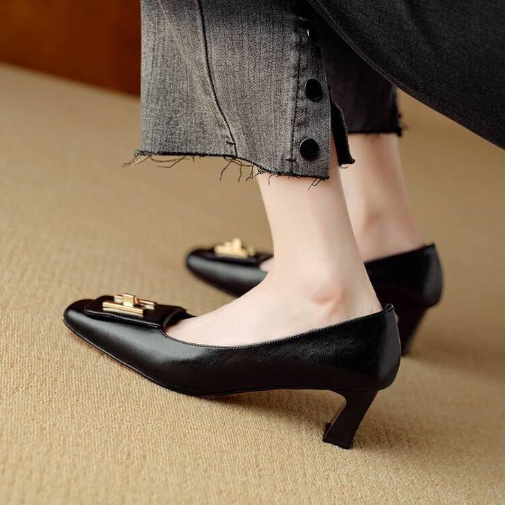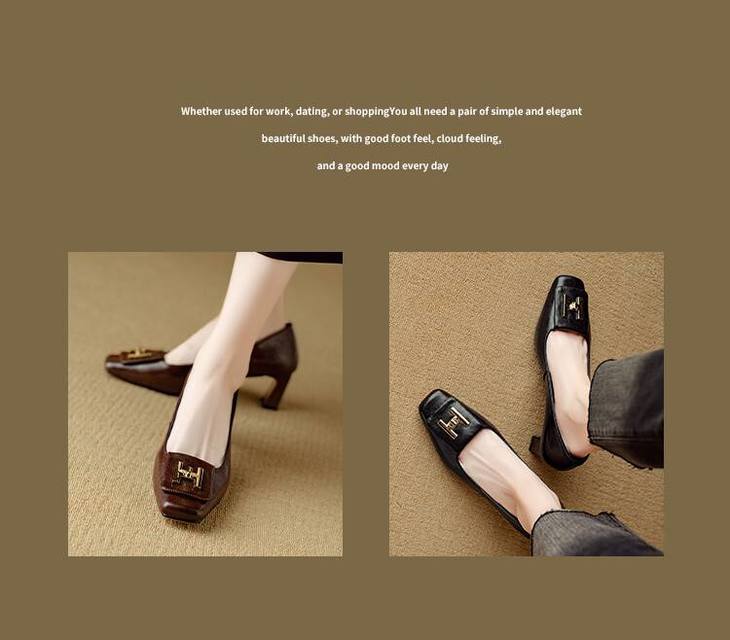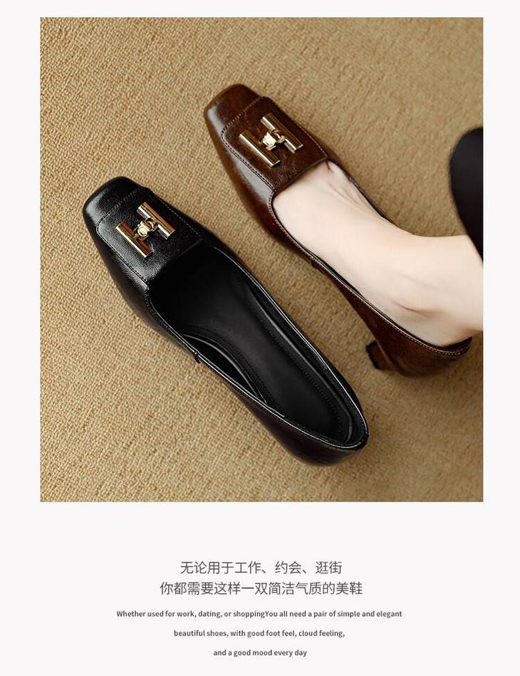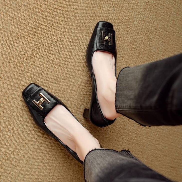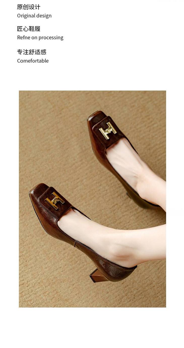【预售5天】优雅气质女鞋方头粗跟秋春季新款鞋子金属扣四季通勤单鞋DB&M6018