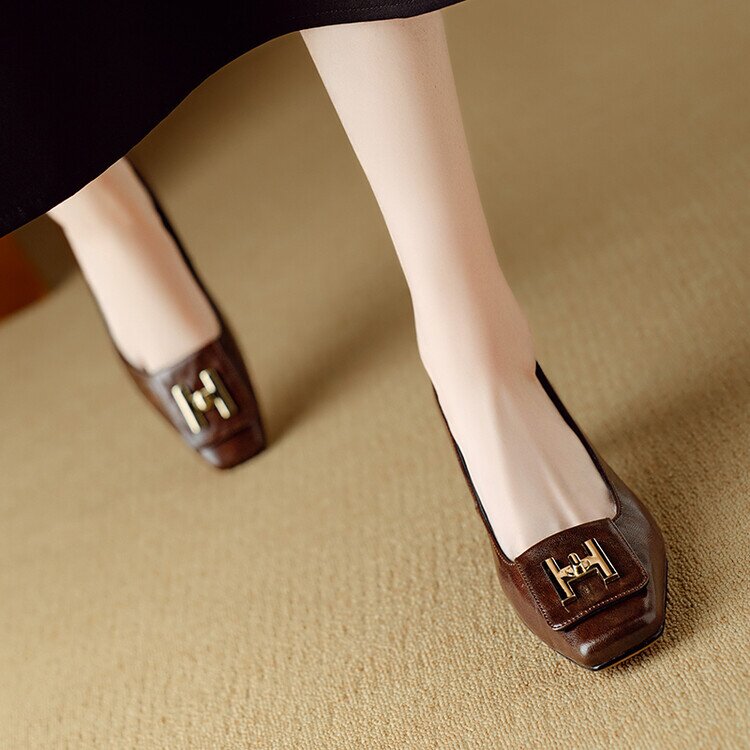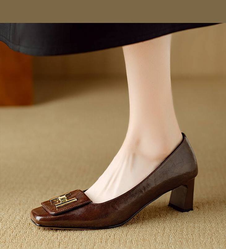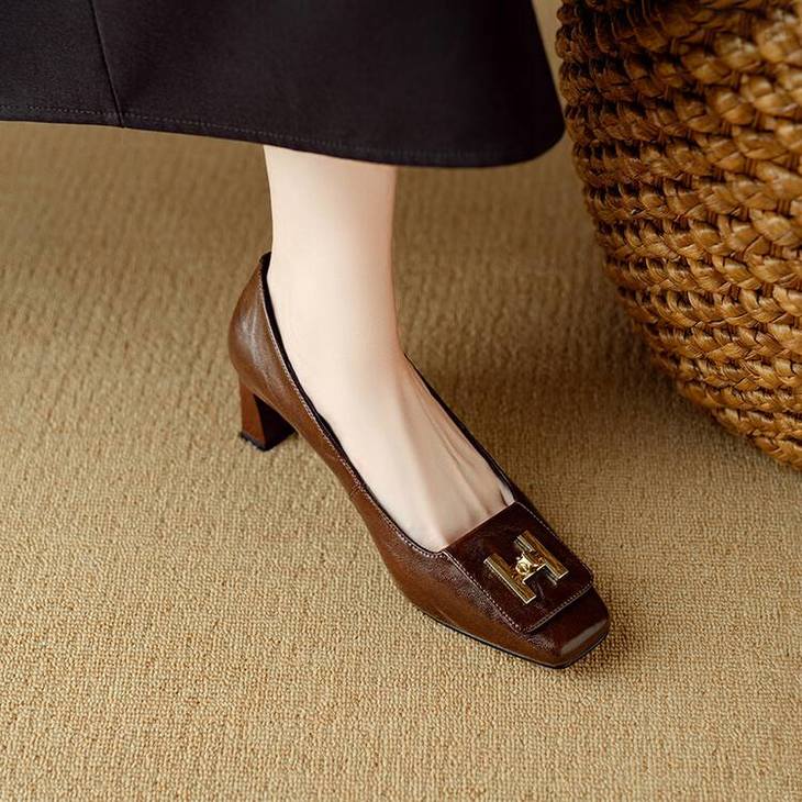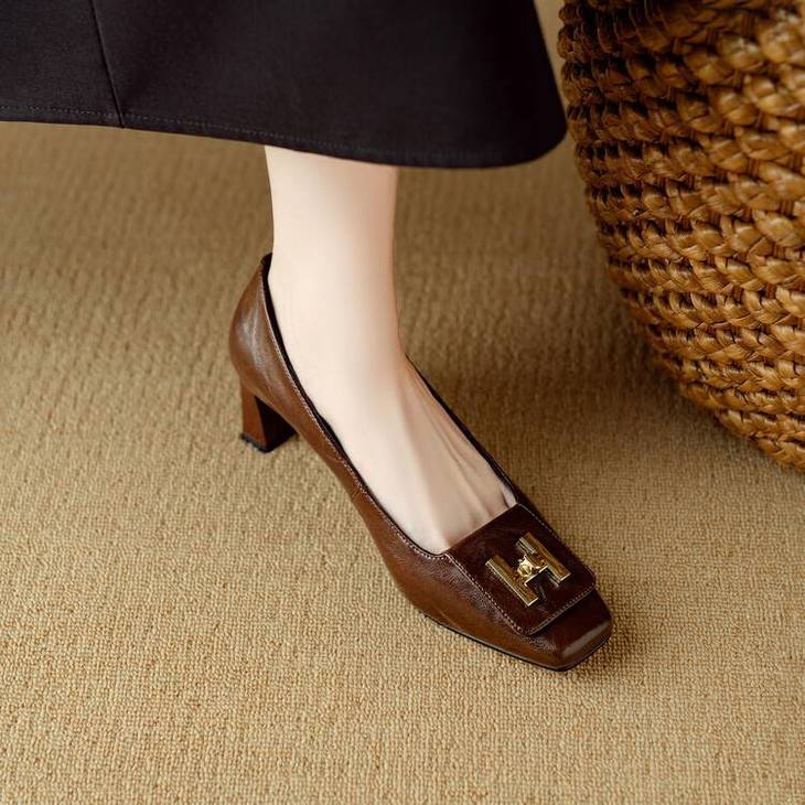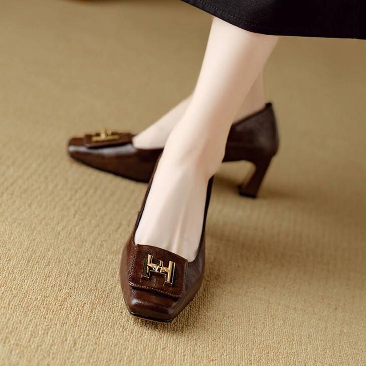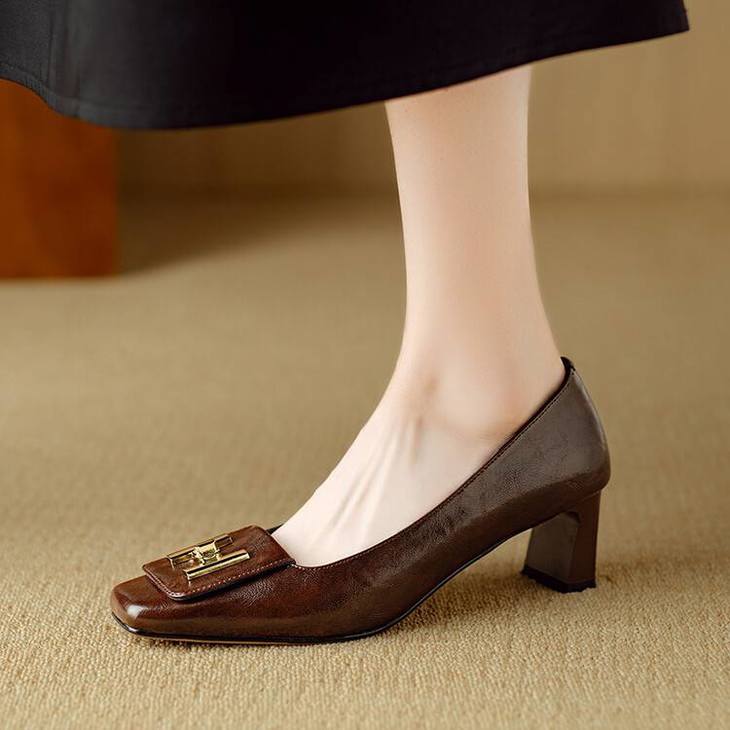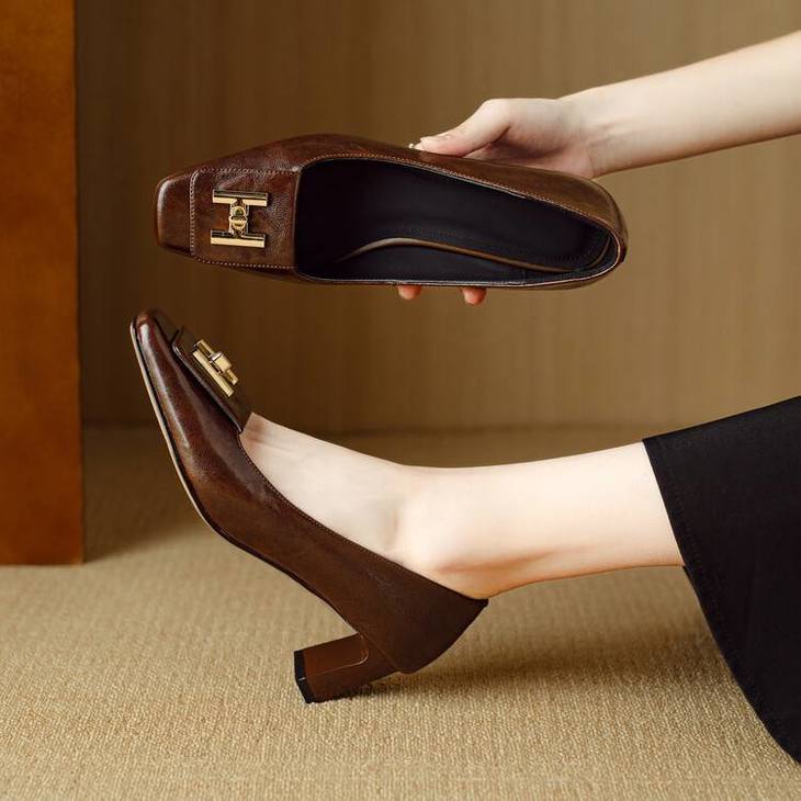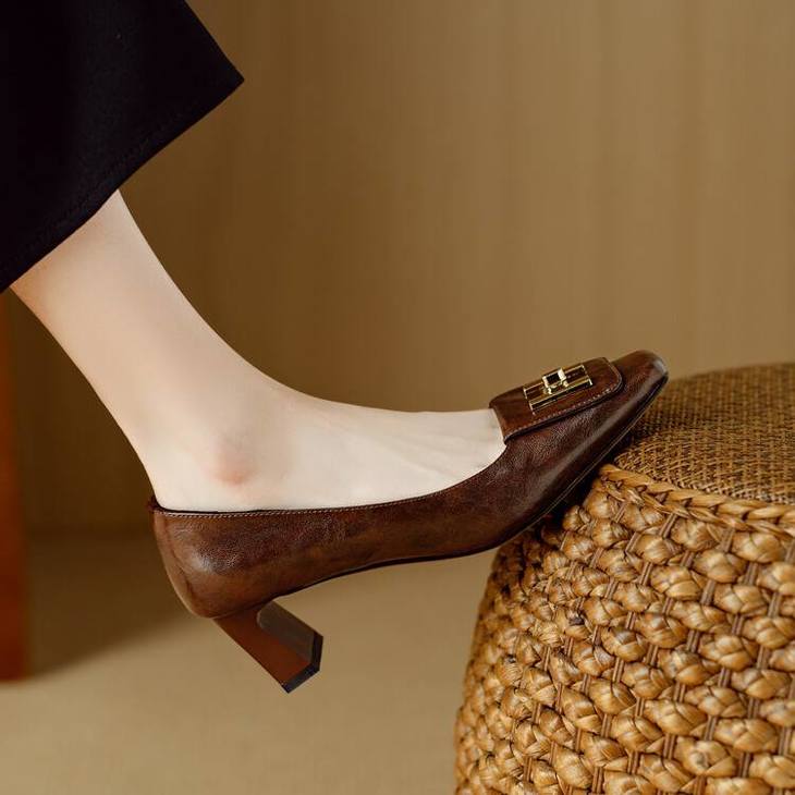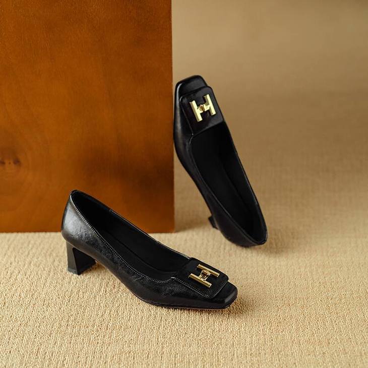 【预售5天】优雅气质女鞋方头粗跟秋春季新款鞋子金属扣四季通勤单鞋DB&M6018