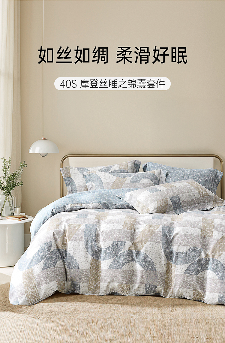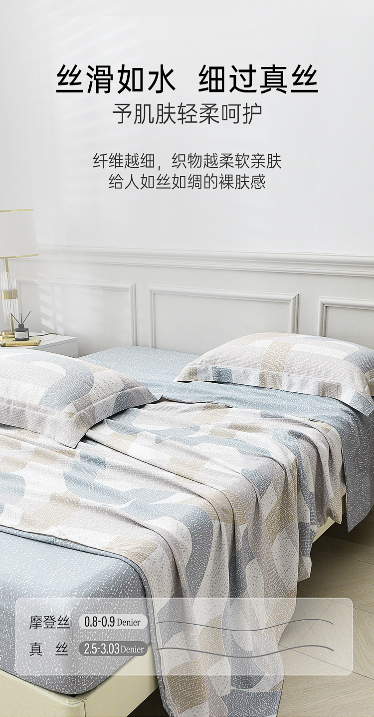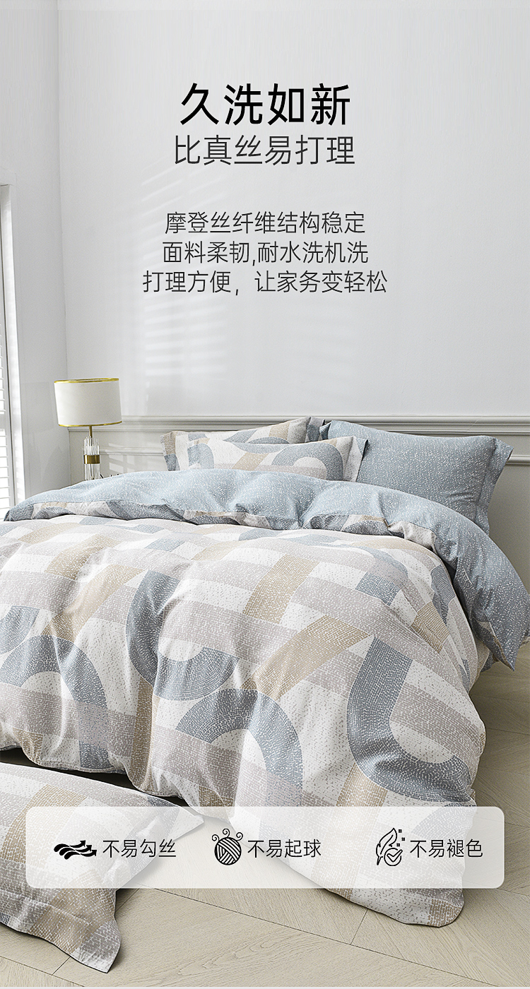 2025年春季新款雅芳婷摩登丝床笠五件套现代简约风被套薄被芯套件