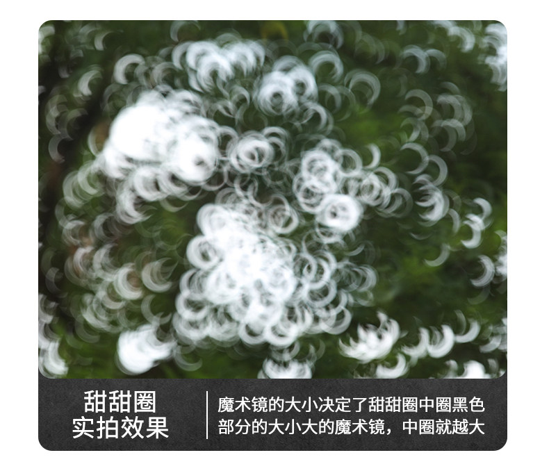贴的位置是正中,稍偏一点也没有关系,只是拍摄的圈圈效果不那么对称而已,这个效果你可以根据自己需要变化。提示:拍摄时使用200mm焦段,圈圈效果更好,不然画面中间有一个黑的渐变。使用最大光圈效果最好。另外由于当中有硬币遮挡,自动对焦会失灵,拍摄时需要手动对焦。1.硬币不是一个平面,很难与UV镜贴紧,在使用过程中很容易掉。