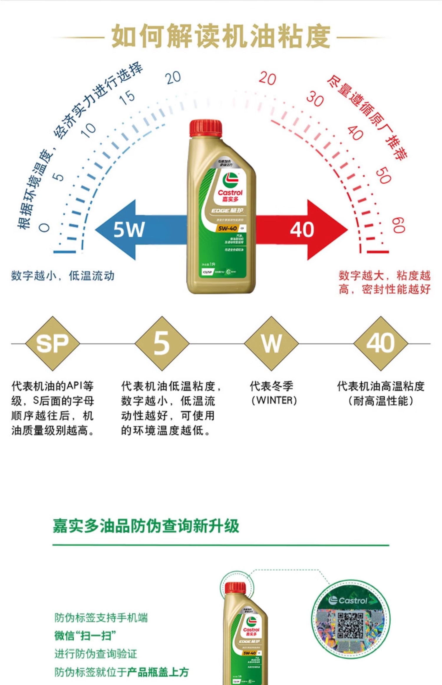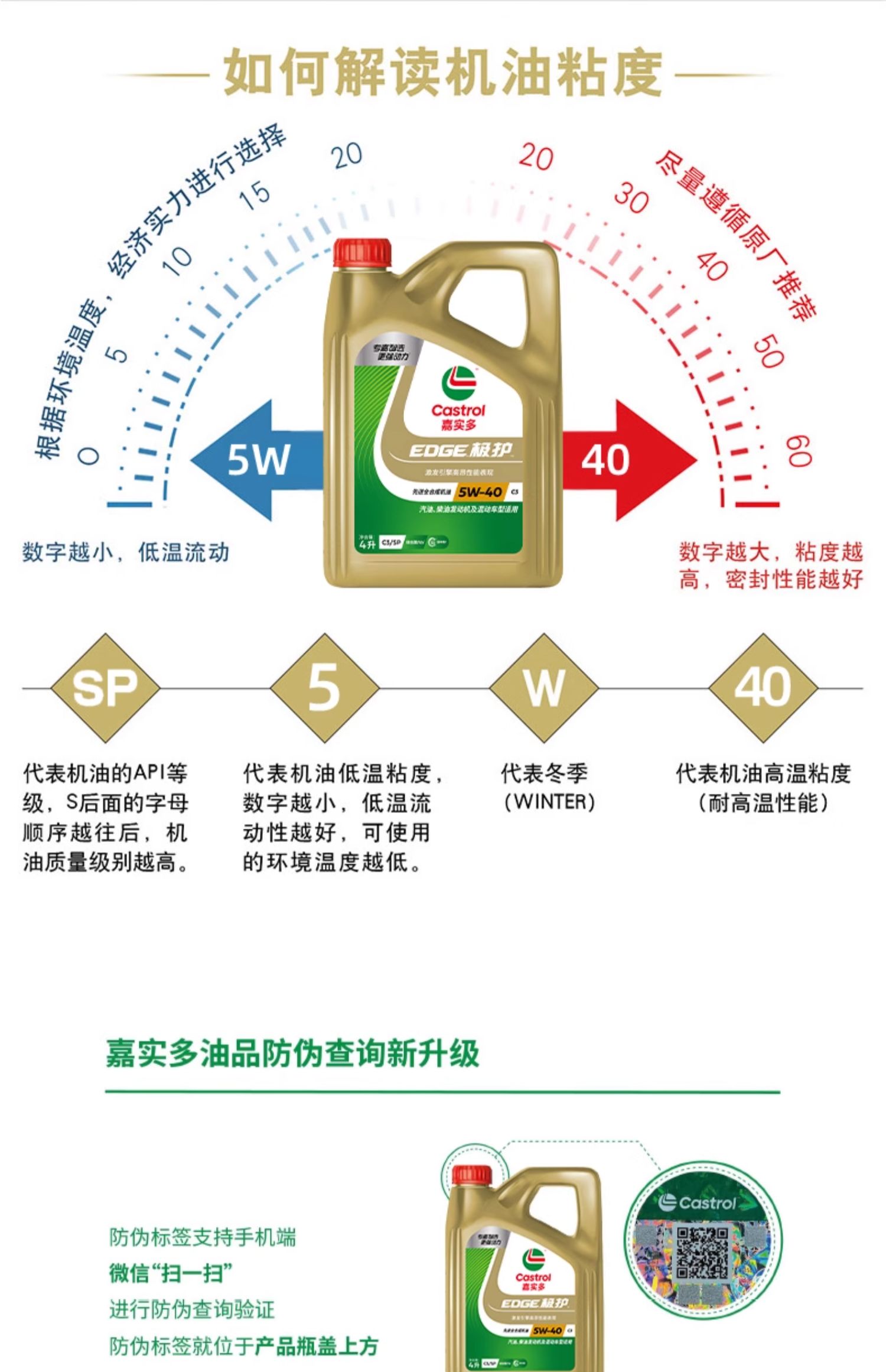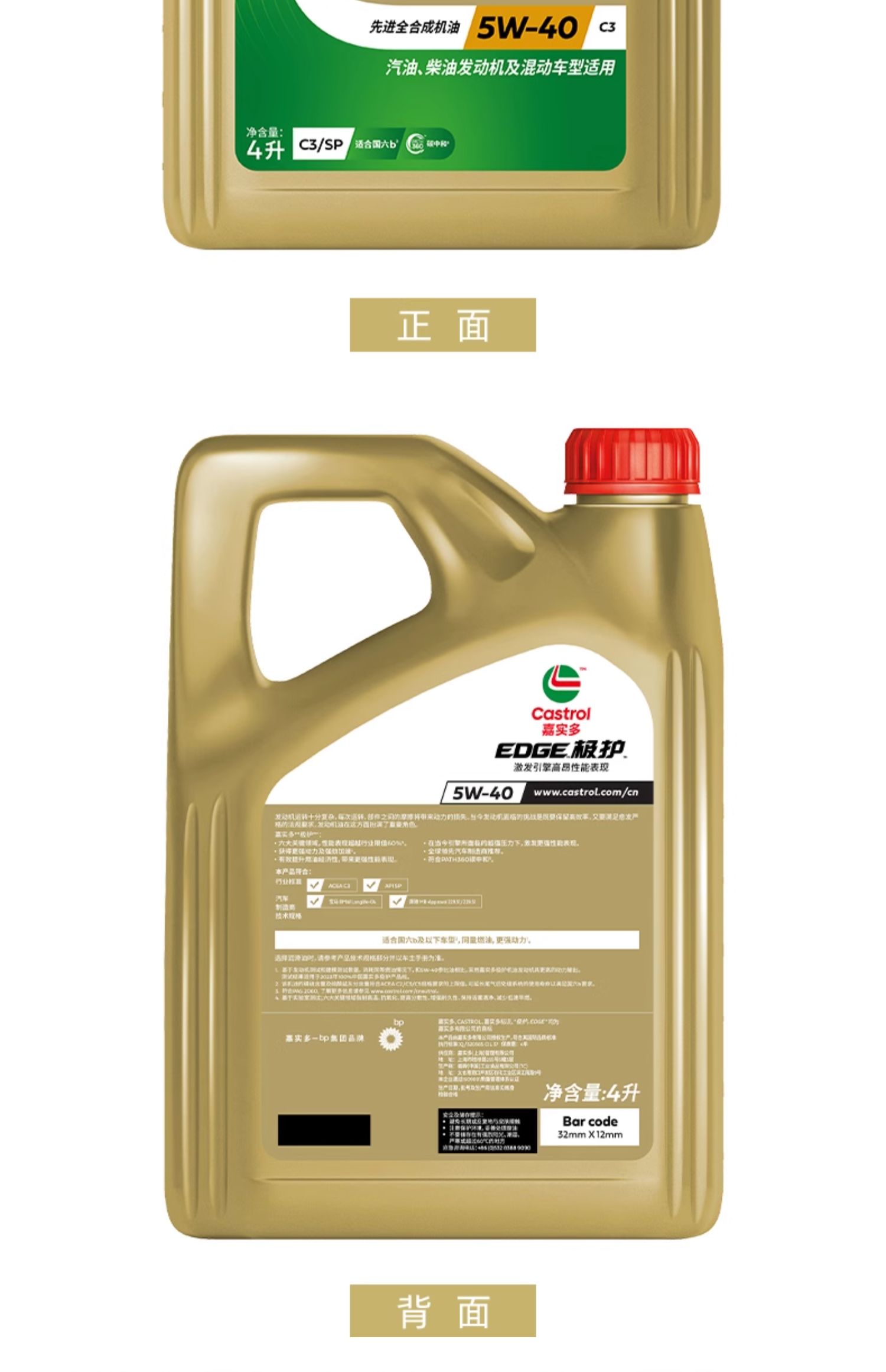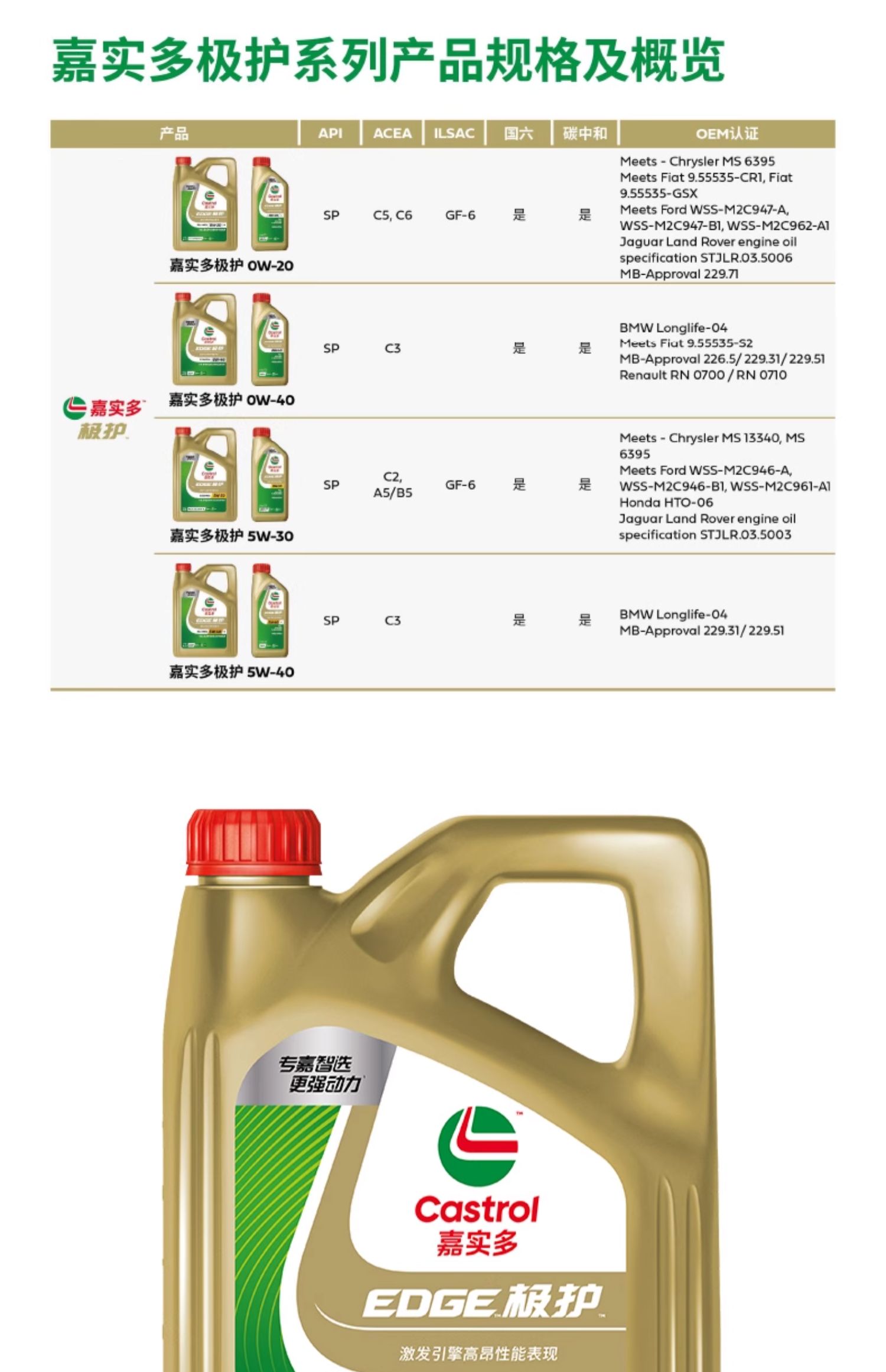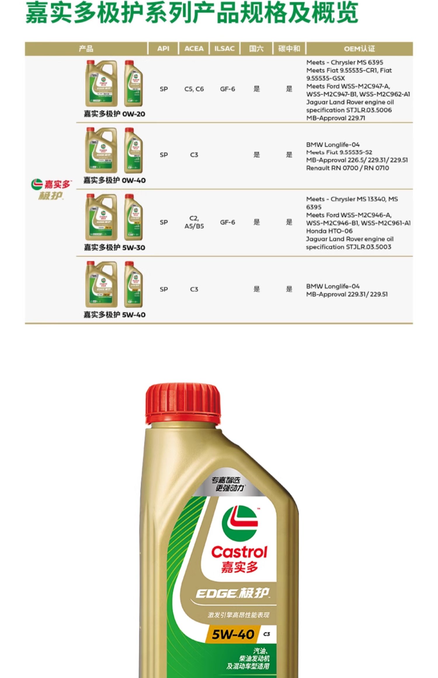 嘉实多极护5W-40 API SP;ACEA C3 全合成润滑油,宝马BMW Longlife-04;奔驰MB-Approval229.31/229.51