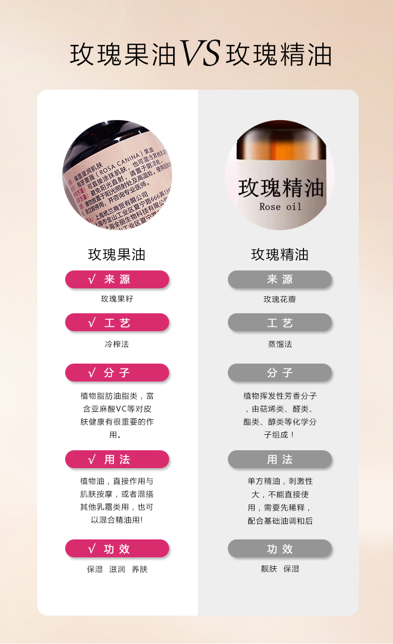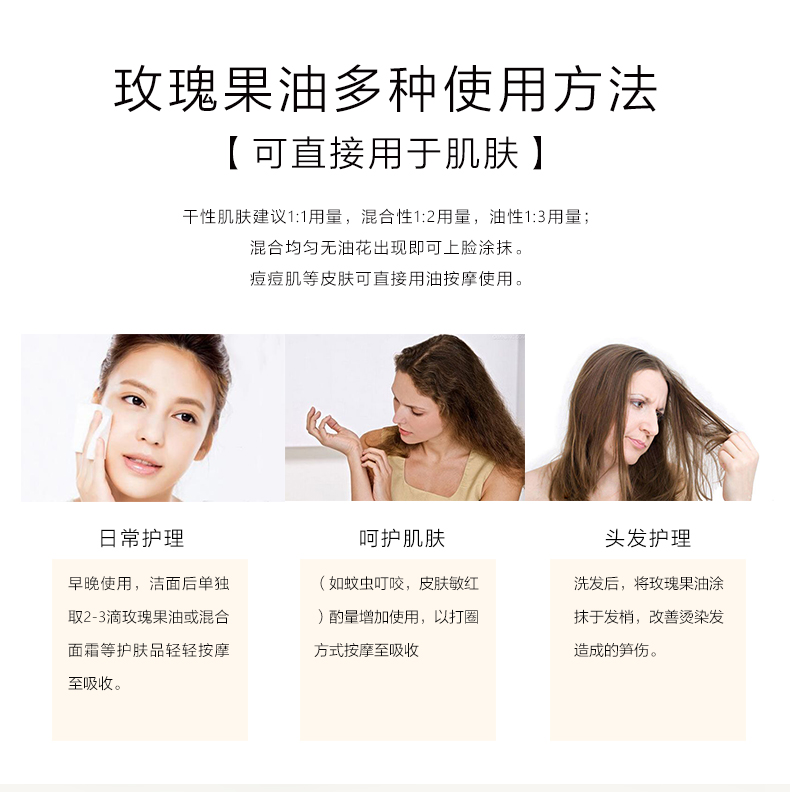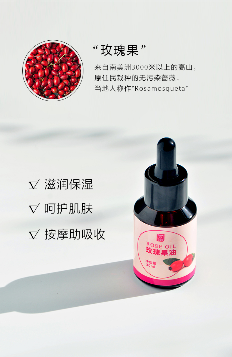 【送一盒五片玫瑰花萃面膜】智利原产欧盟有机美国有机的玫瑰果油 30ml纯玫瑰果籽油 橙红色 用好油养好肤 无防腐 以油养肤干皮救星面部身体头发 百搭