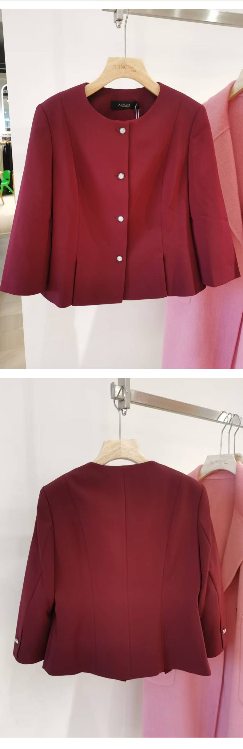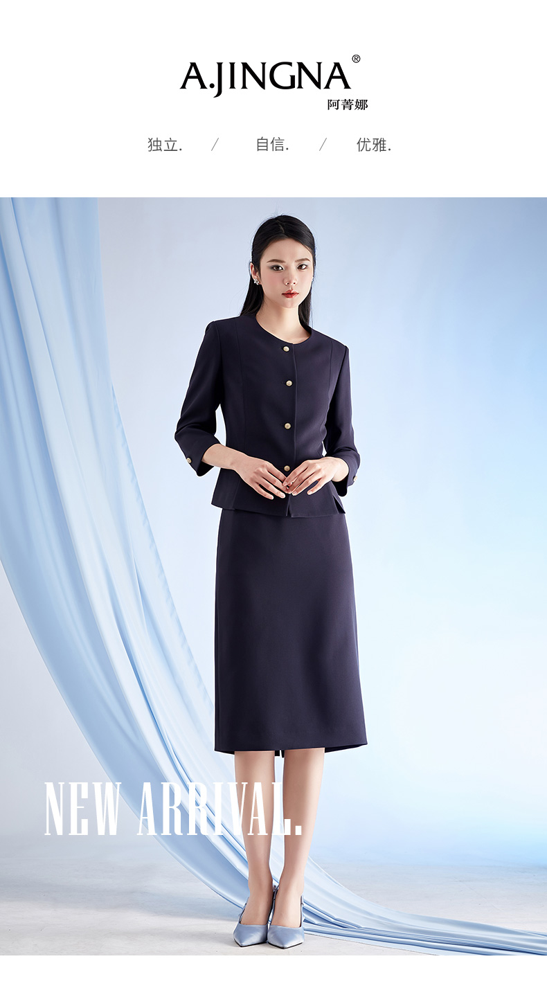 【商场同款】阿菁娜春季新款圆领简约优雅职场正装外套A28C107012