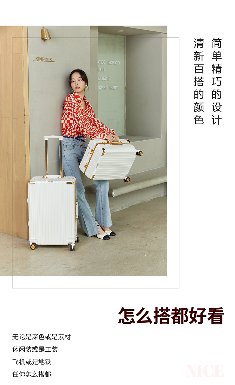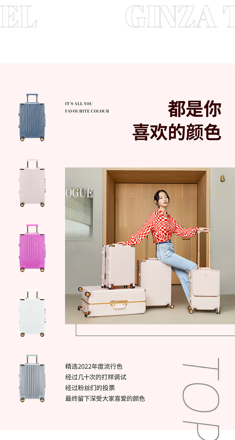 银座时尚ins铝框密码拉杆箱万向轮大容量男旅行李箱20/24/28寸9890K
