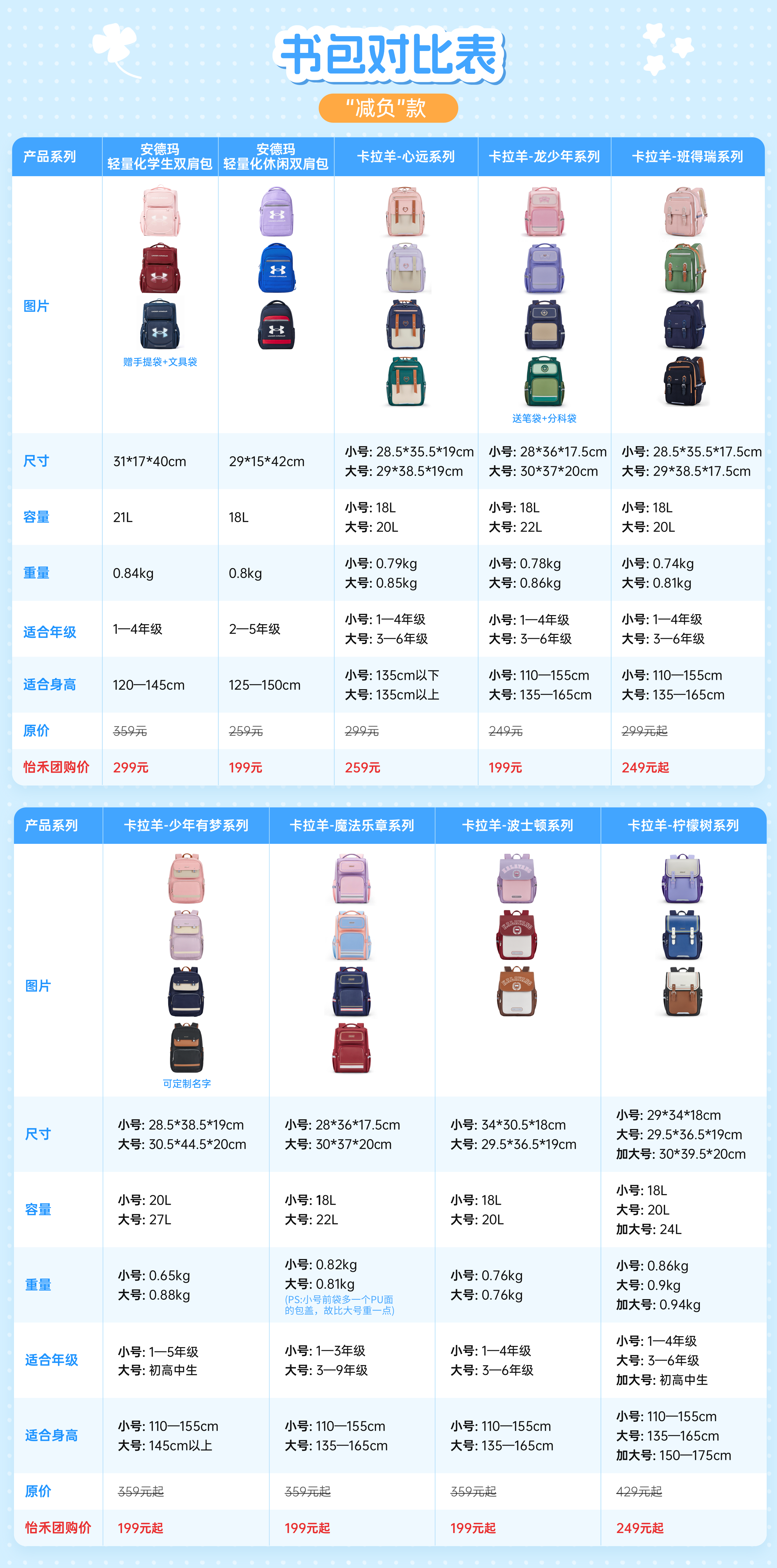 卡拉羊班得瑞系列书包背包双肩包,CX2192+CX2660【此款不支持定制名字】
