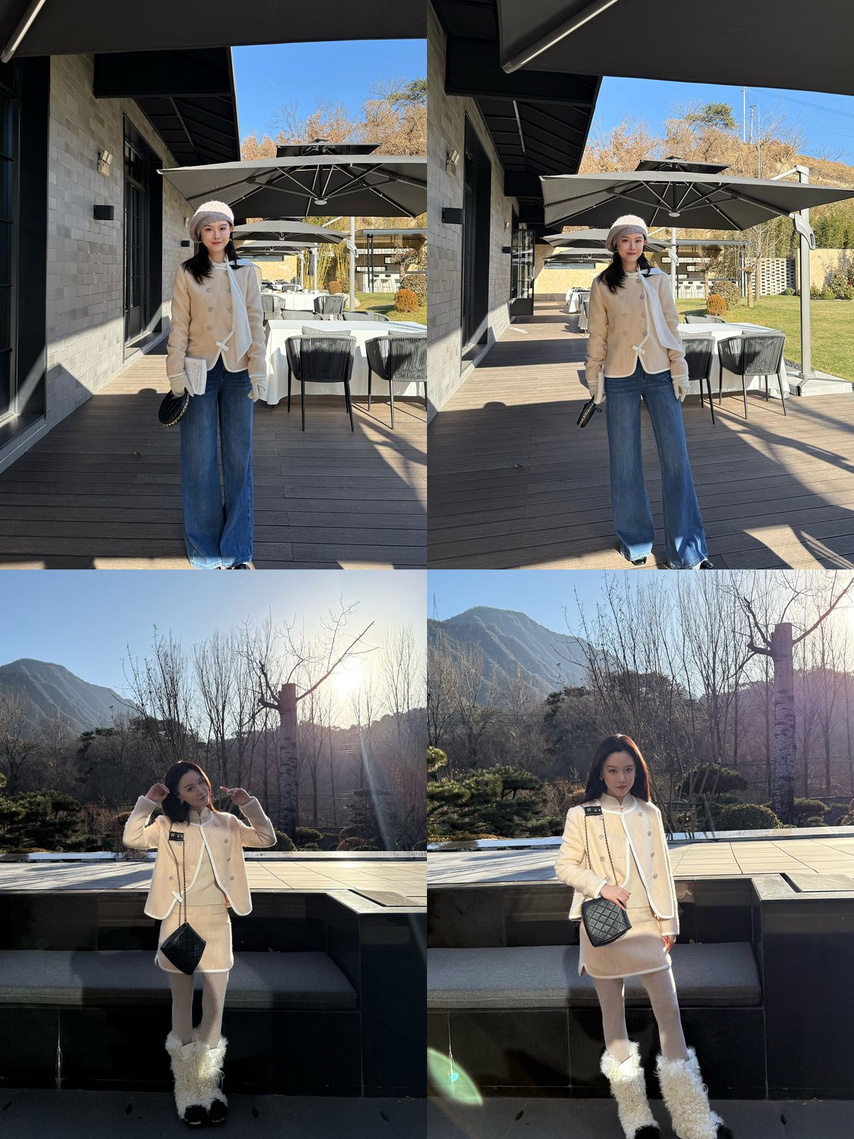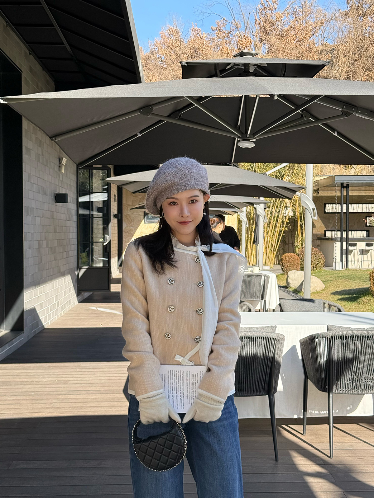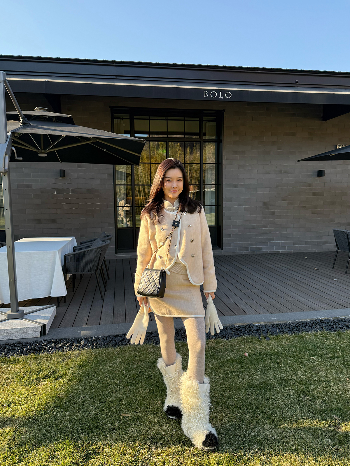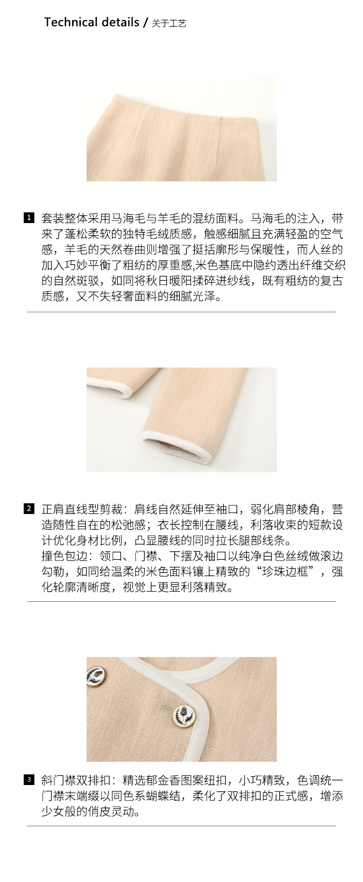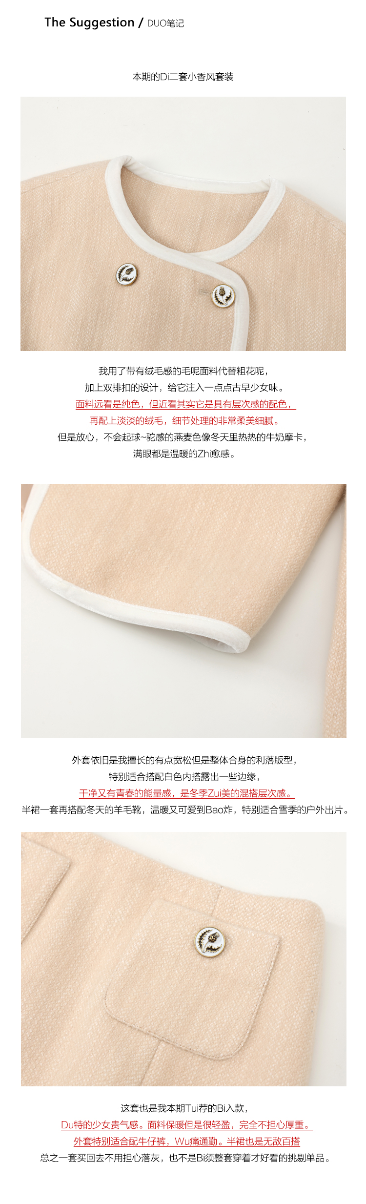 DUO智仙生 黑标 古早滑雪女孩小香风毛呢外套和半裙套装