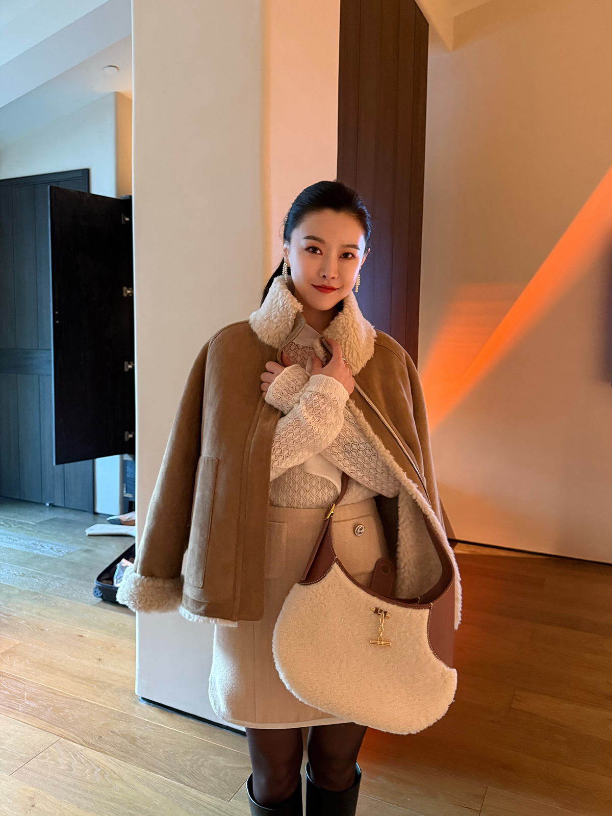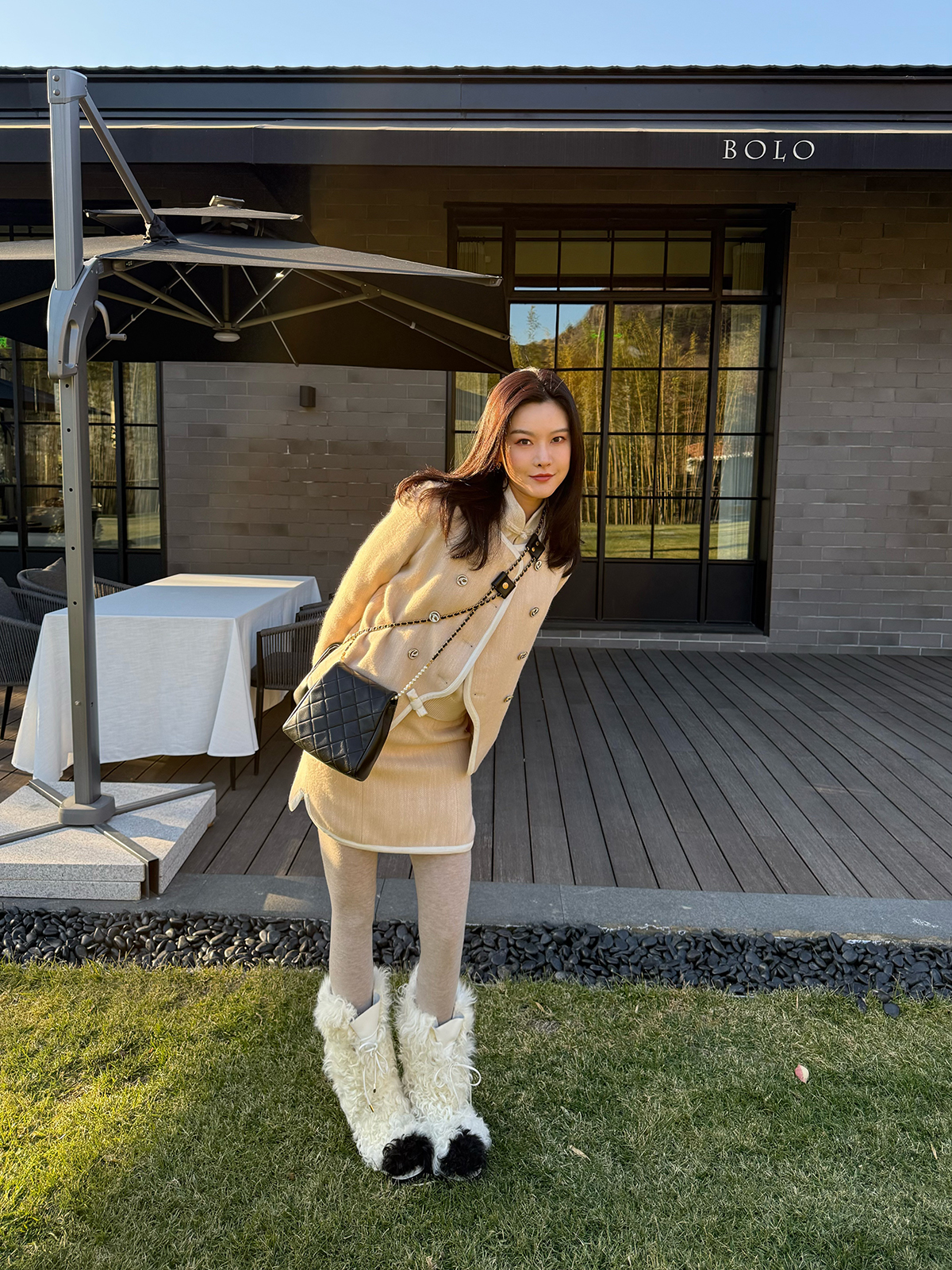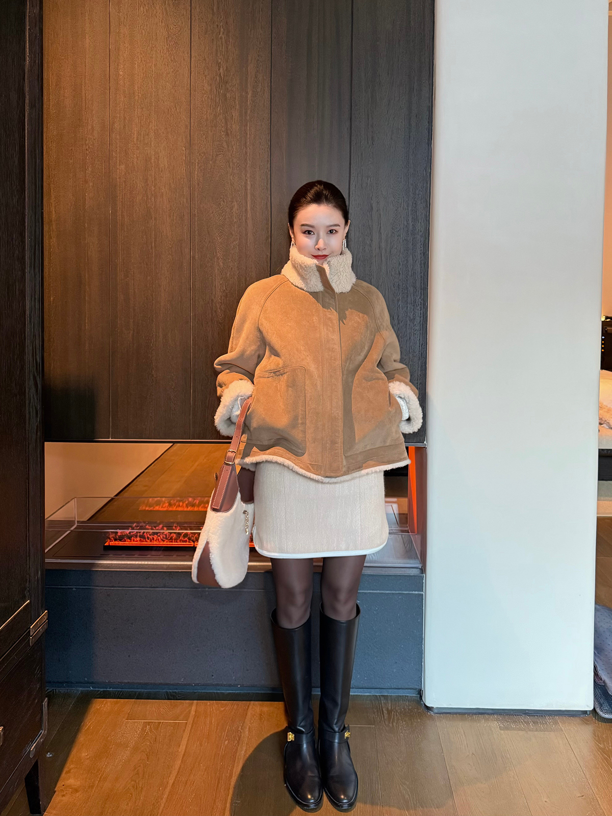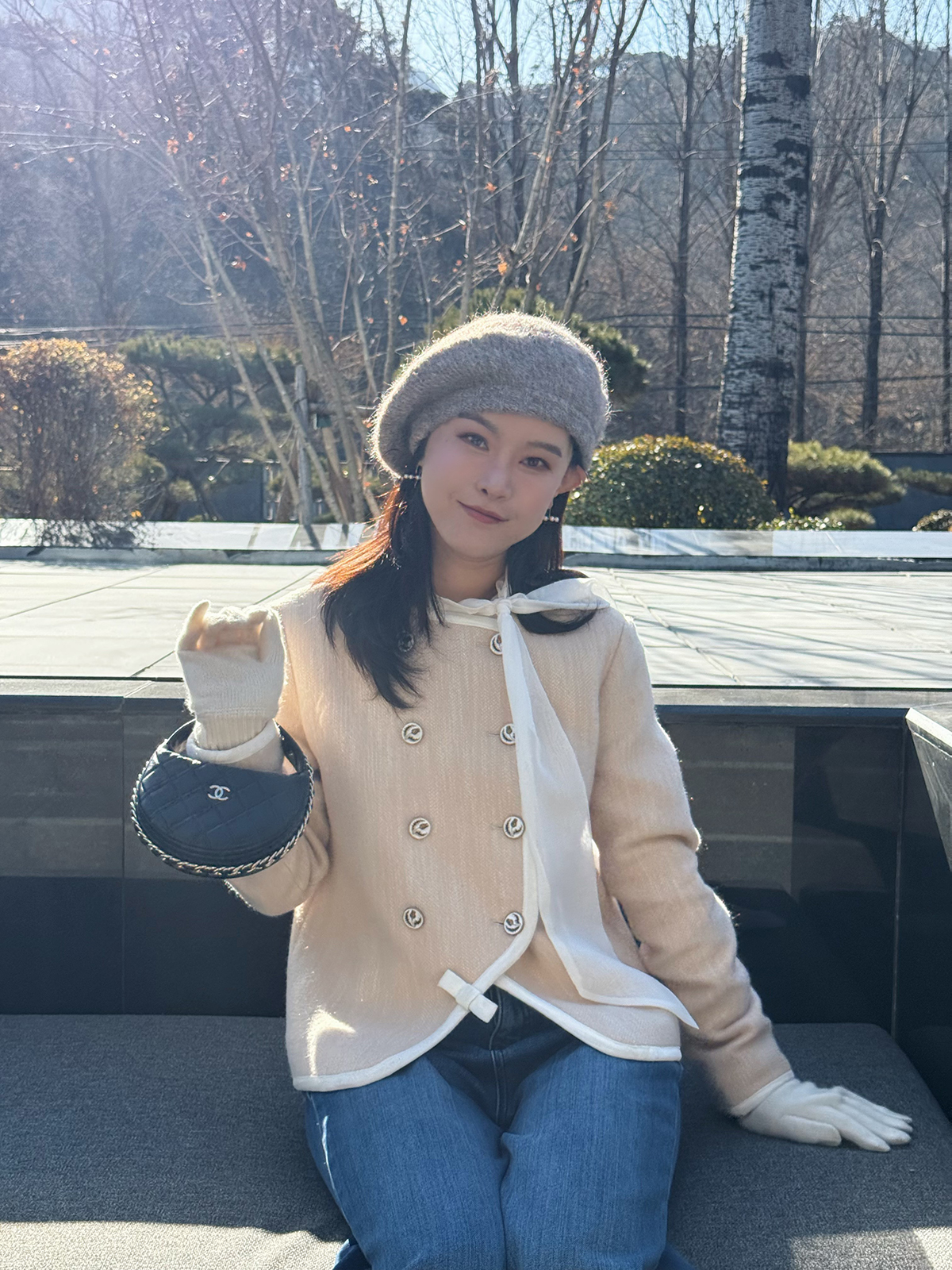 DUO智仙生 黑标 古早滑雪女孩小香风毛呢外套和半裙套装