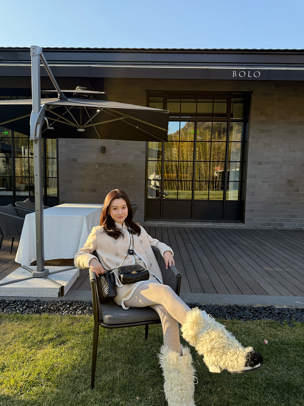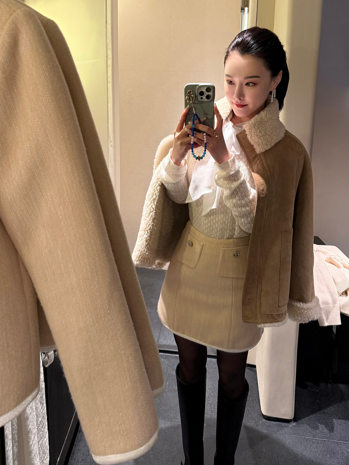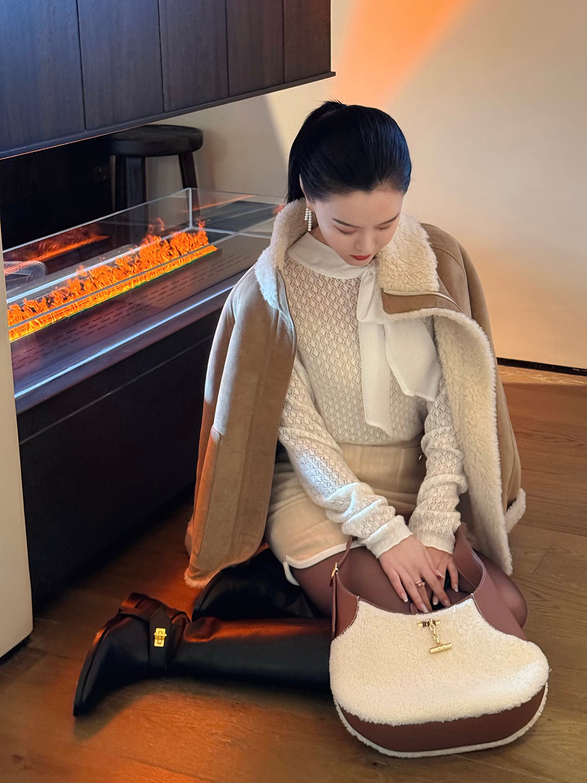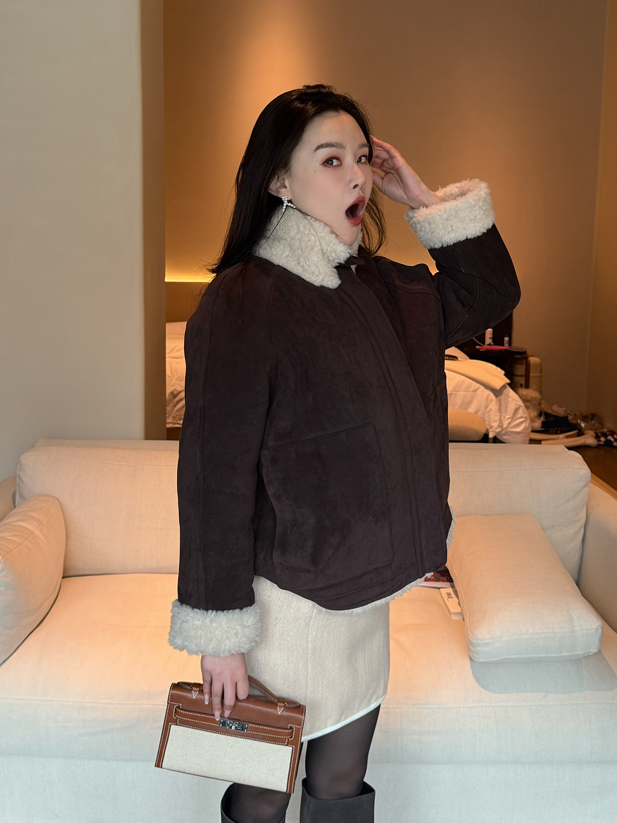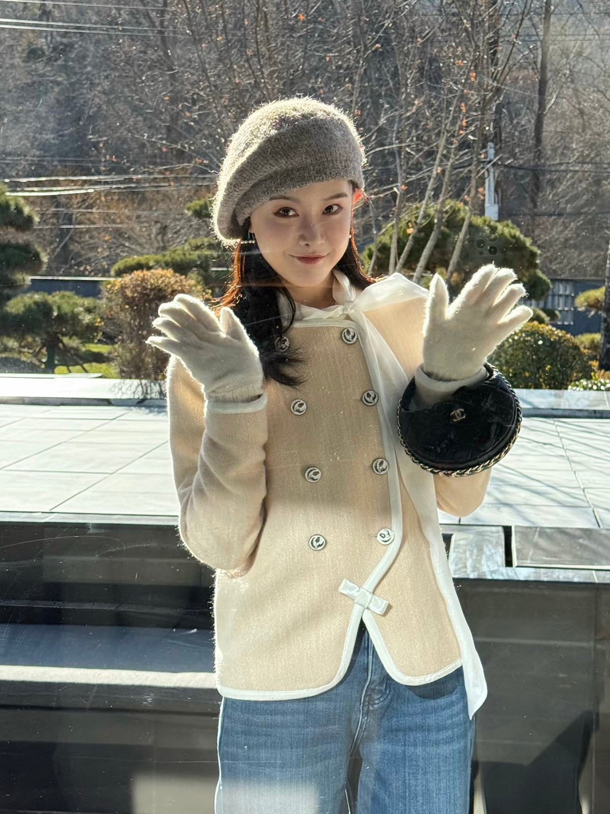 DUO智仙生 黑标 古早滑雪女孩小香风毛呢外套和半裙套装