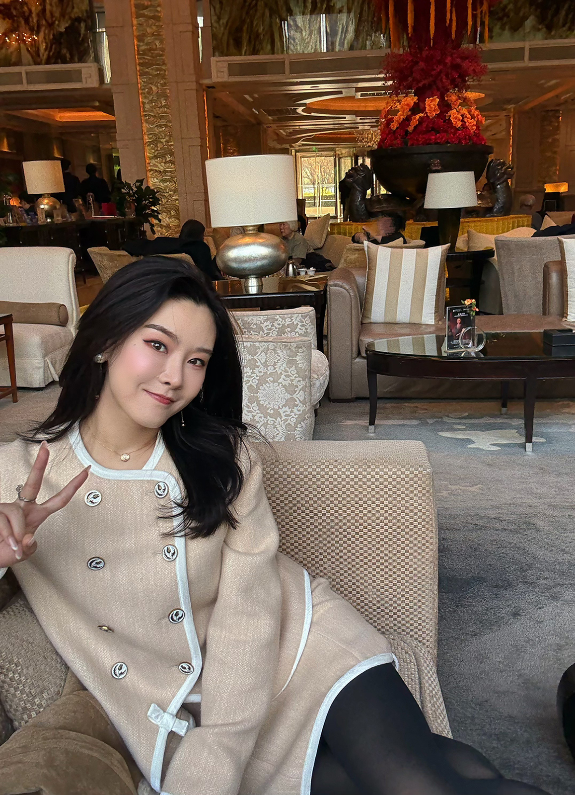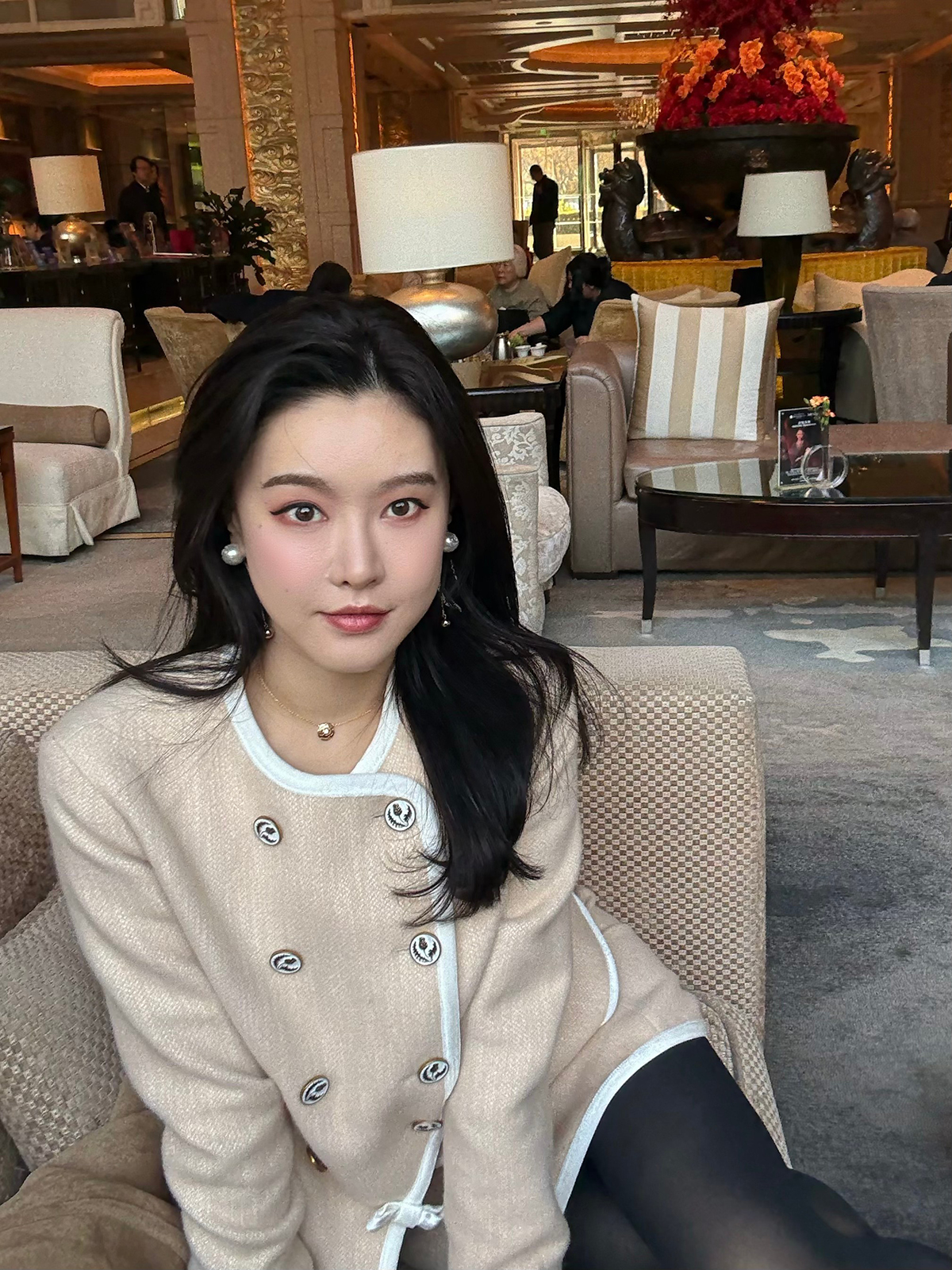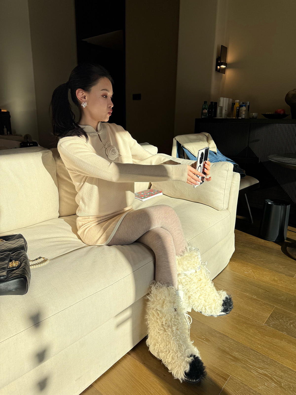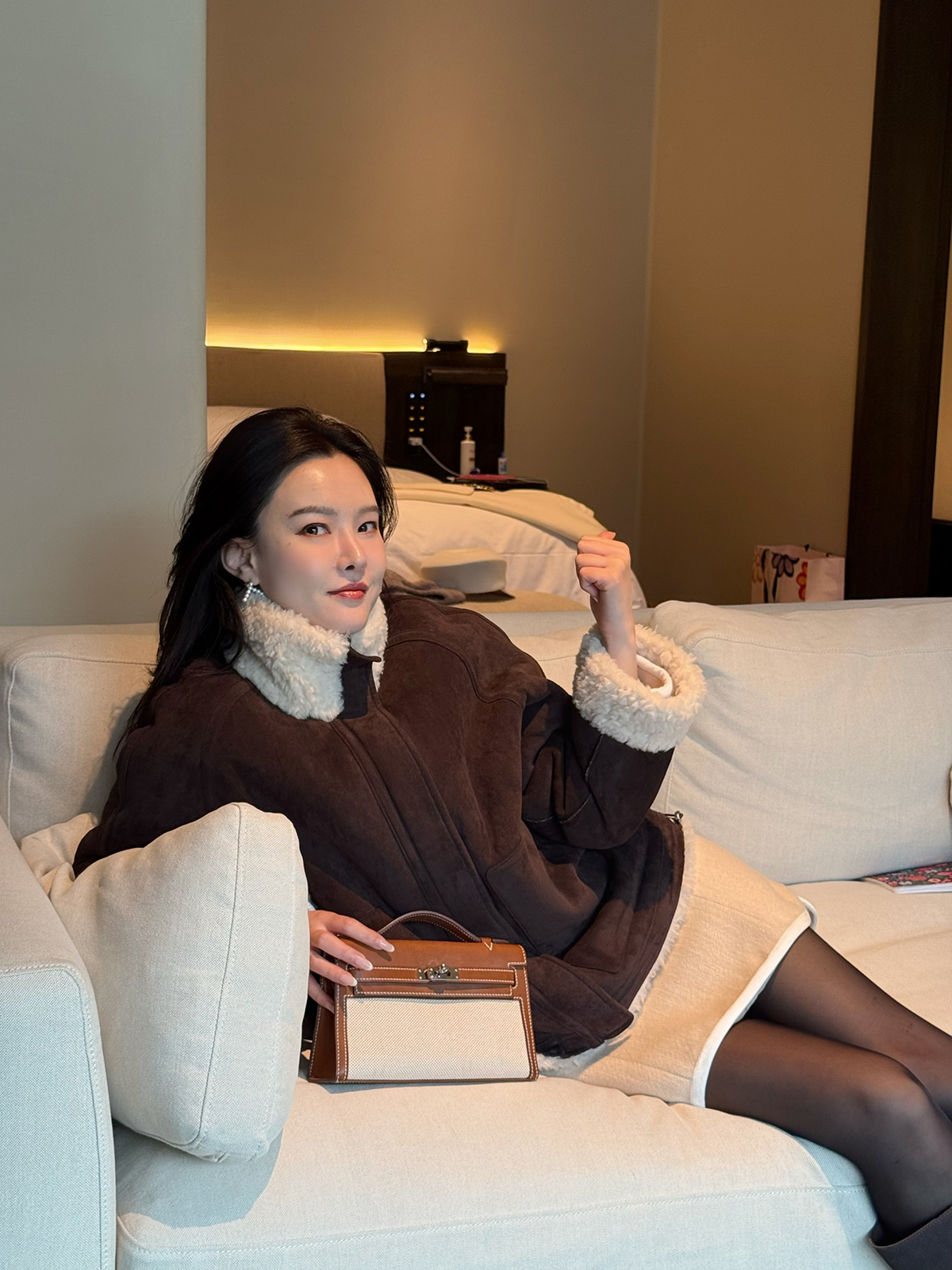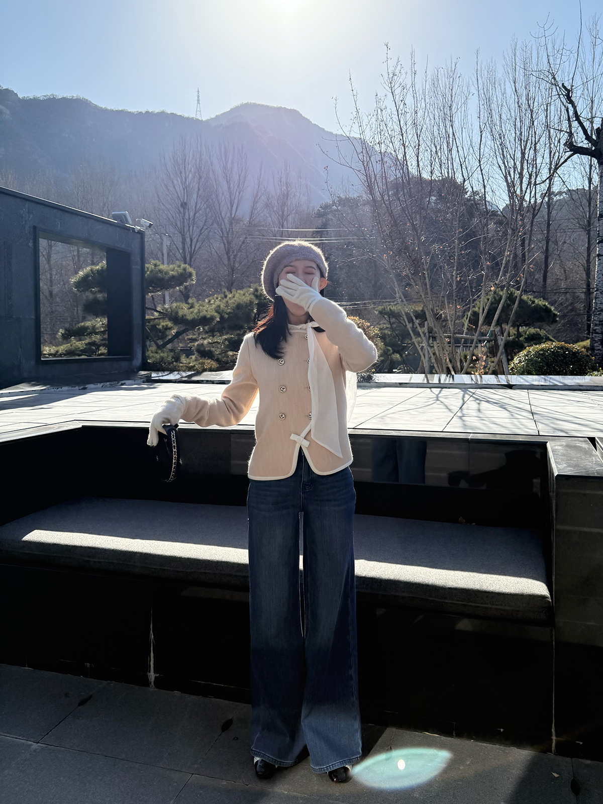 DUO智仙生 黑标 古早滑雪女孩小香风毛呢外套和半裙套装