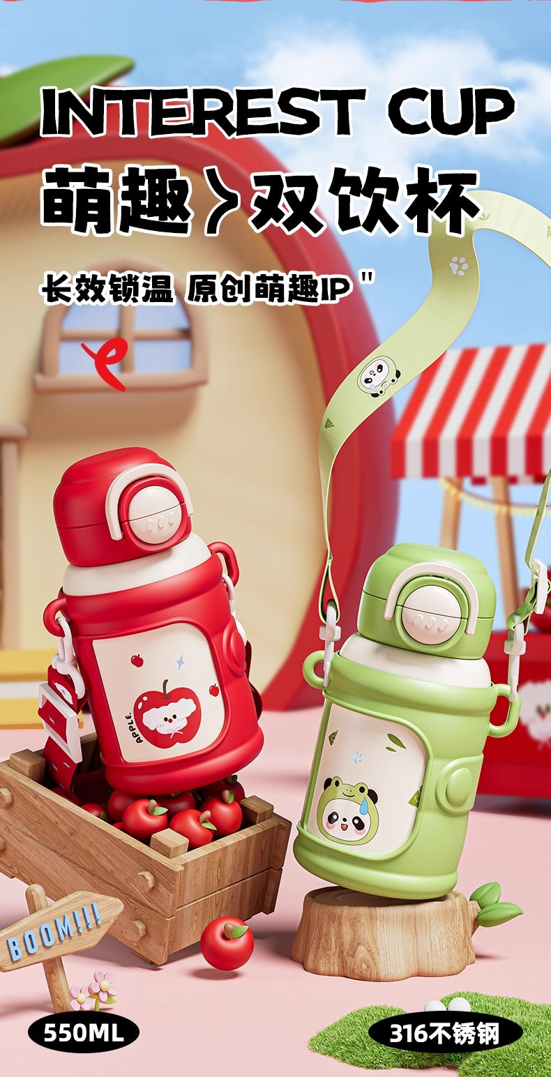 春节不打烊【一杯双饮❗️上学专用】保温杯女生2025新款水杯幼儿园小学生儿童上学专用便携壶吸管杯子。jc