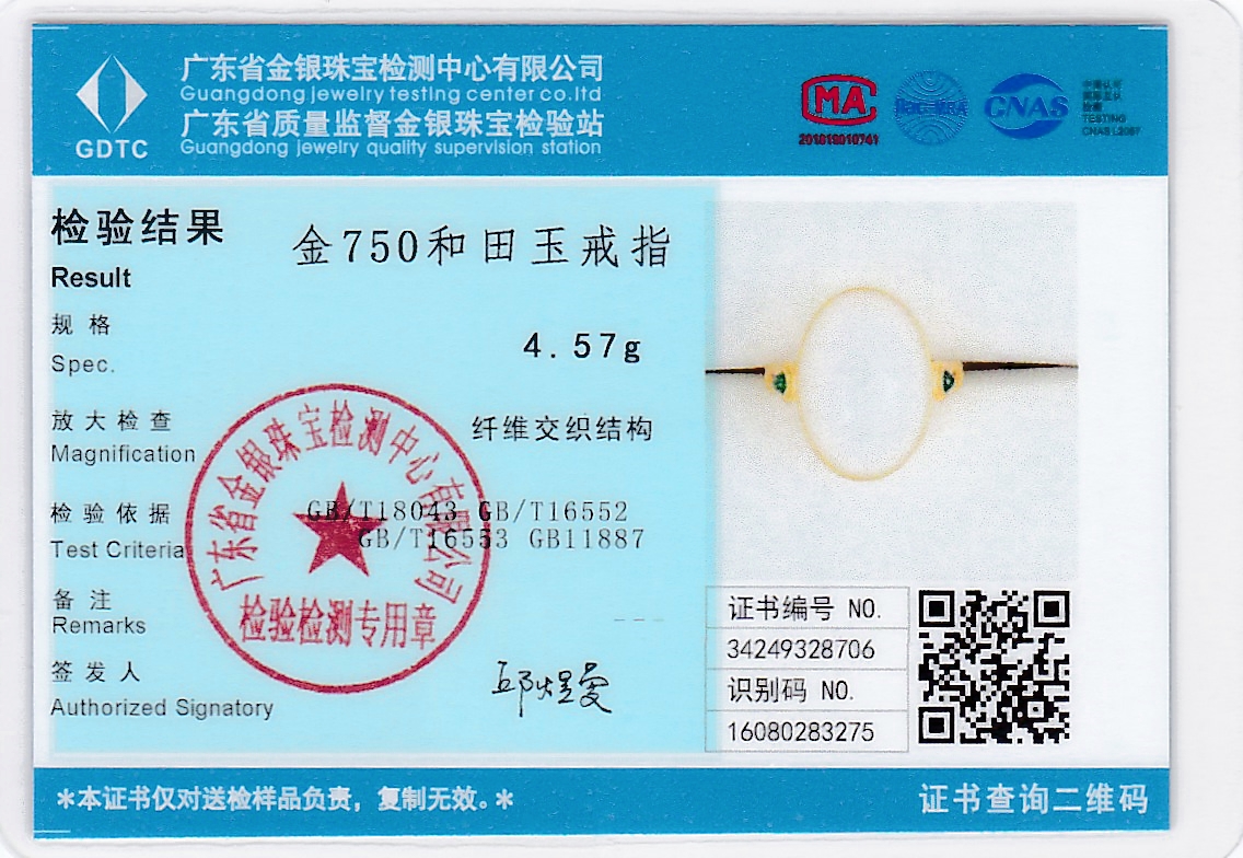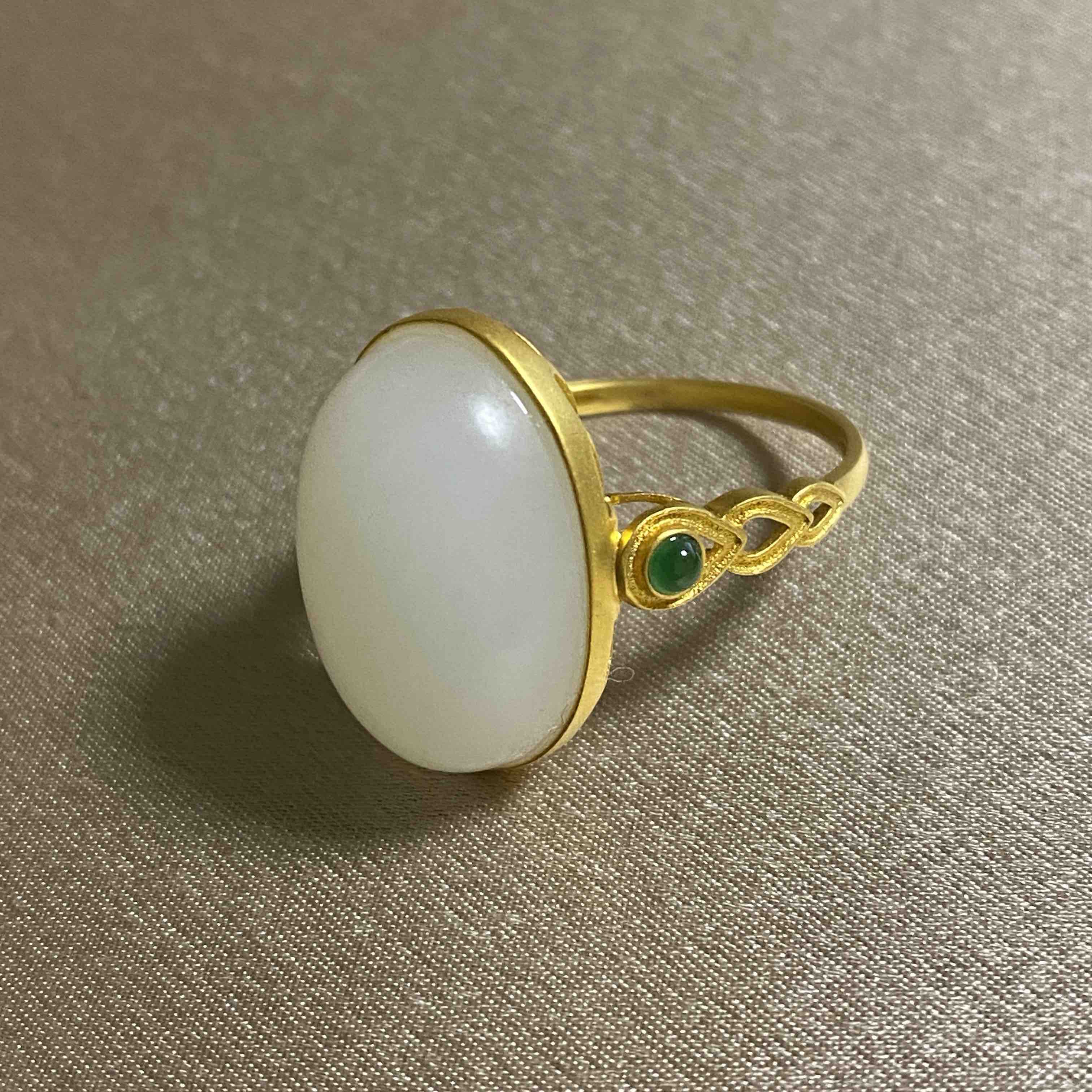 18K黄金和田玉(白玉) 戒指