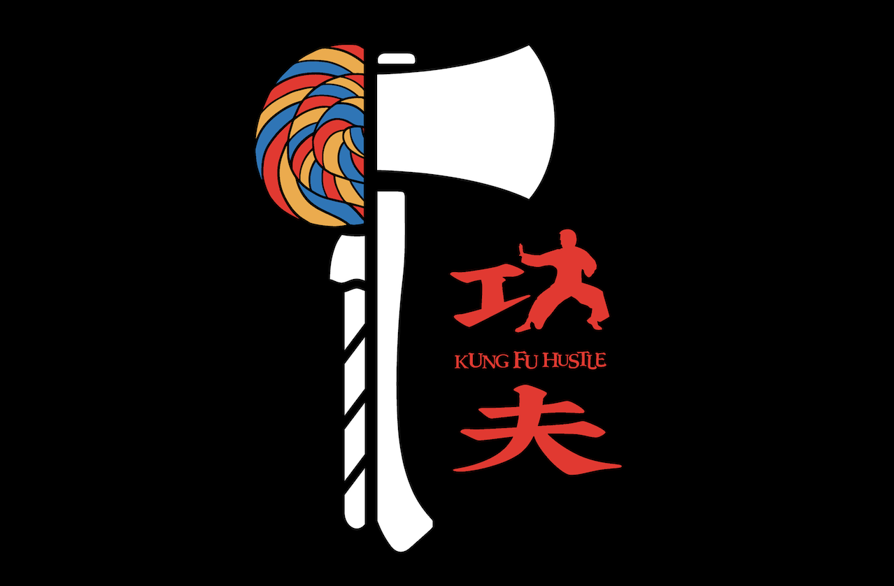 把棒棒糖与斧头合成一个元素,片名用了星爷的剪影拼贴: