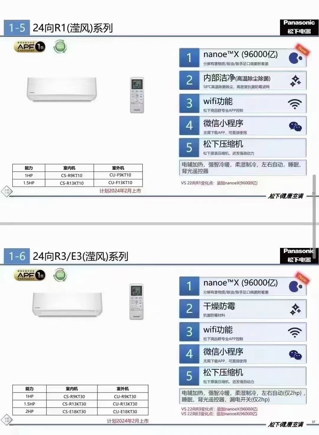 松下空调滢风系列空调新一级/三级能效变频冷暖挂机20倍纳诺怡高温杀菌WiFi智能 大1匹/1.5匹 R9KT30/R13KT10
