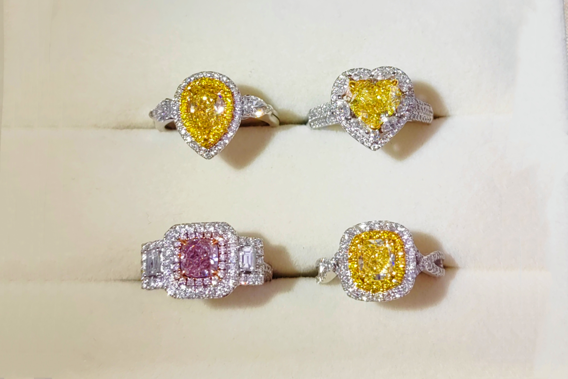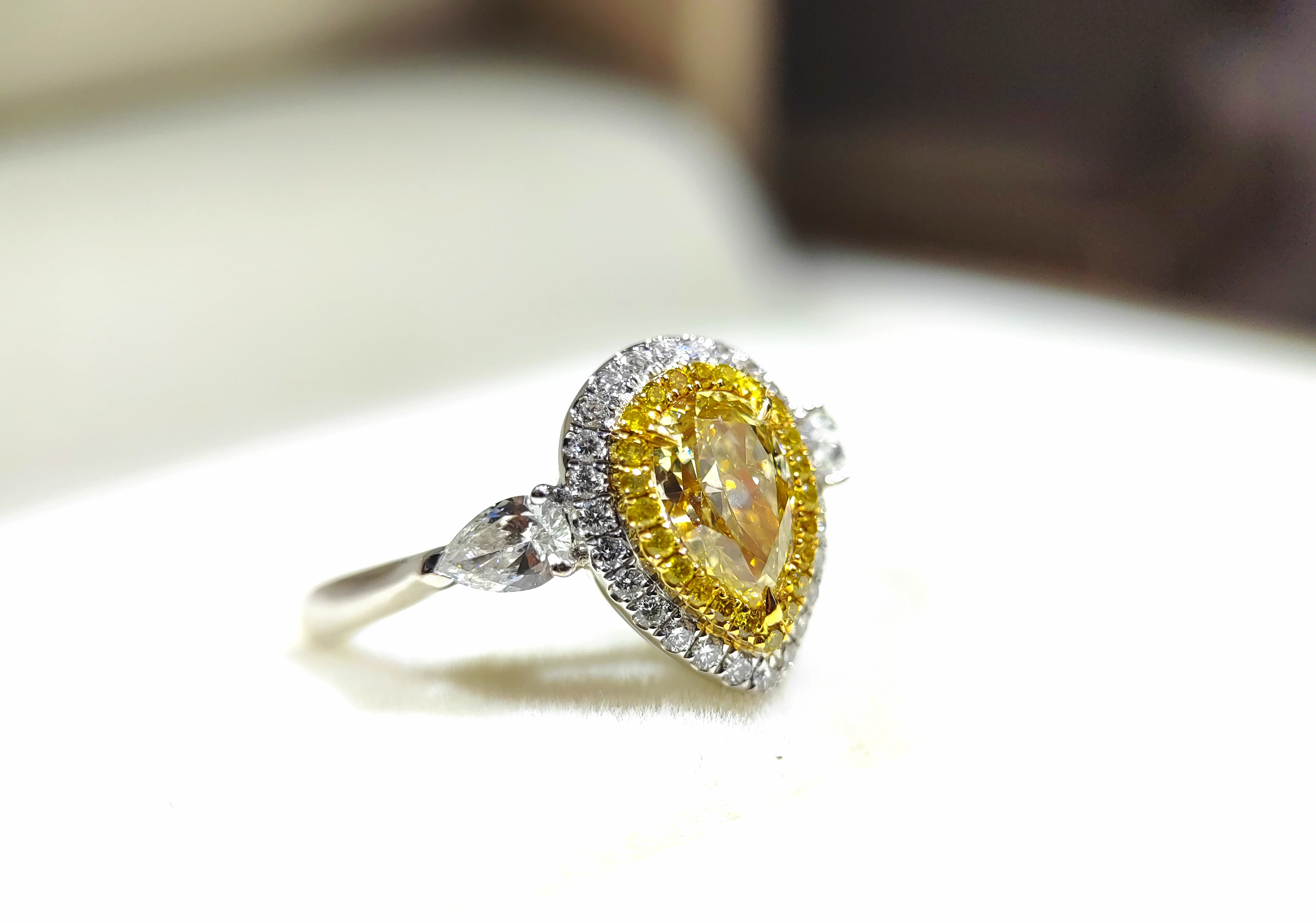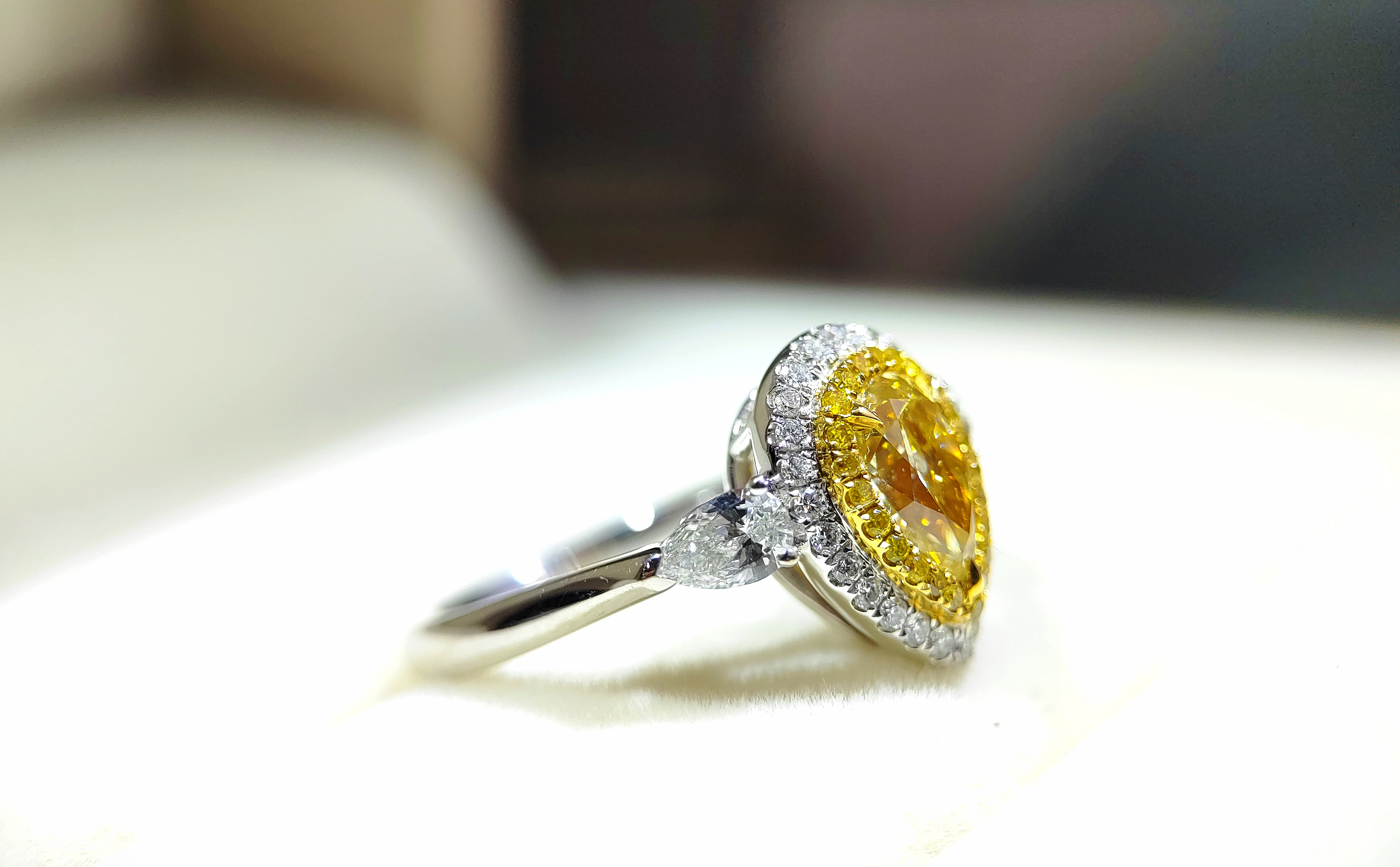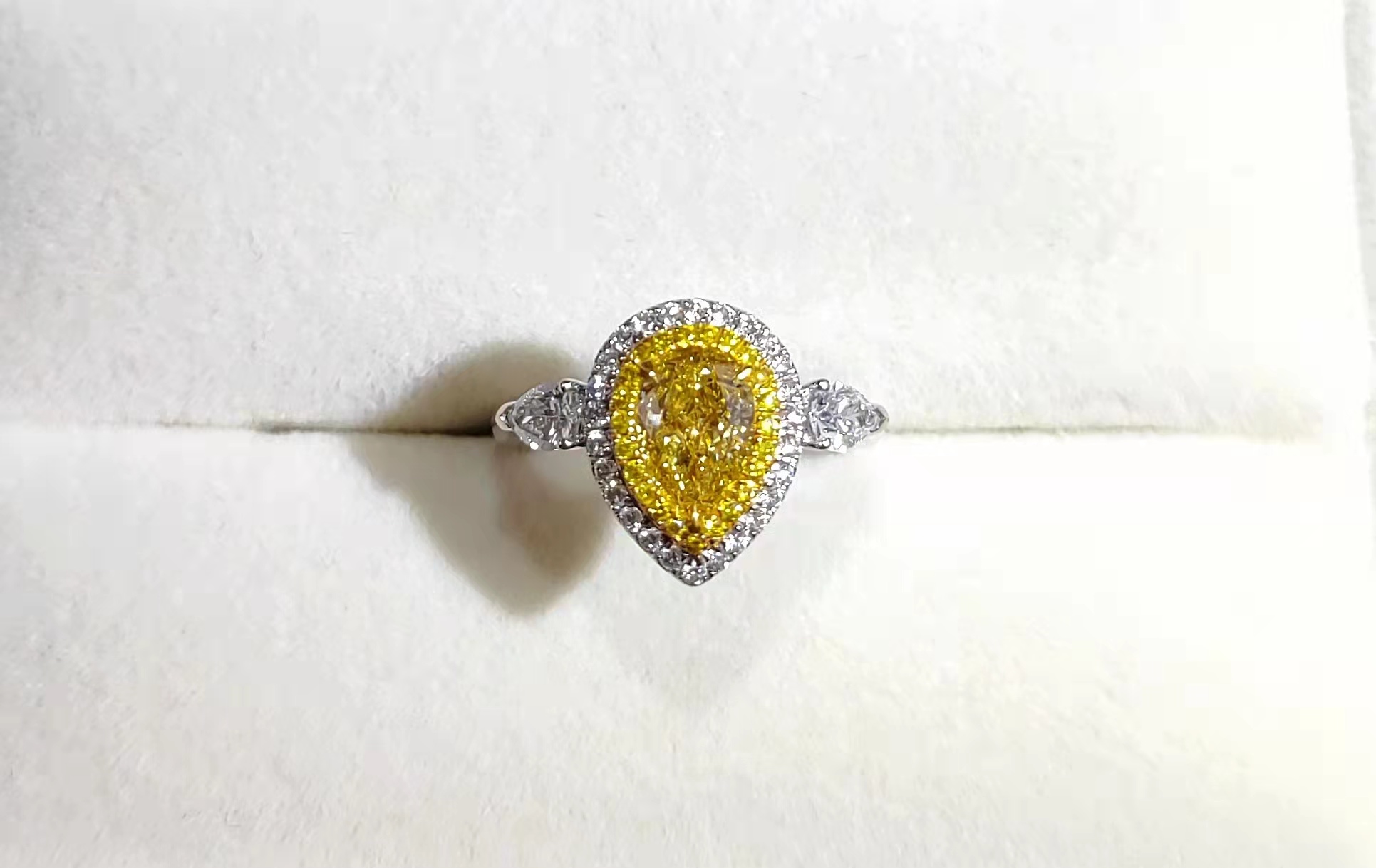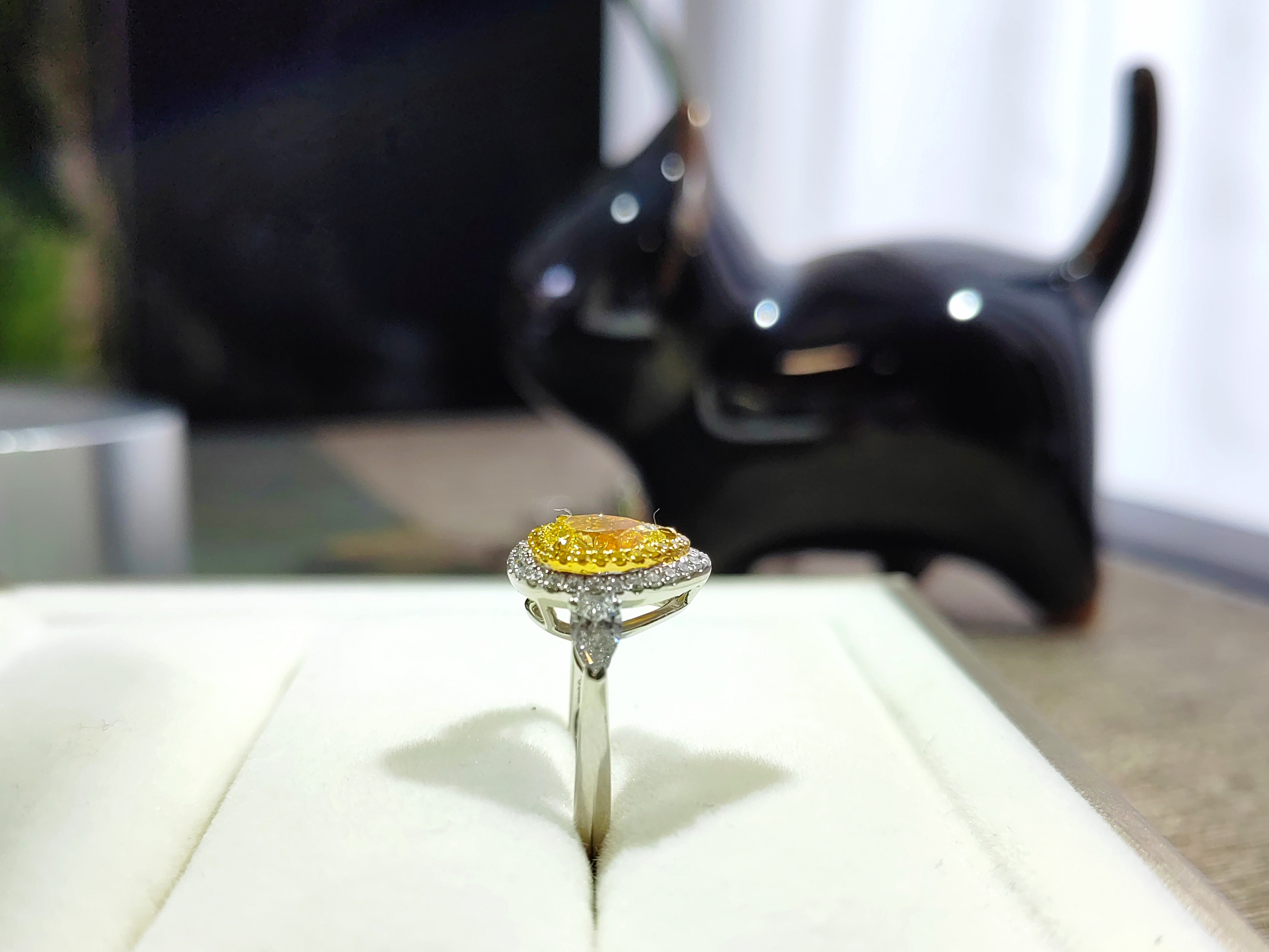 颜色漂亮,FANCY YELLOW,净度好,火彩绚丽。
