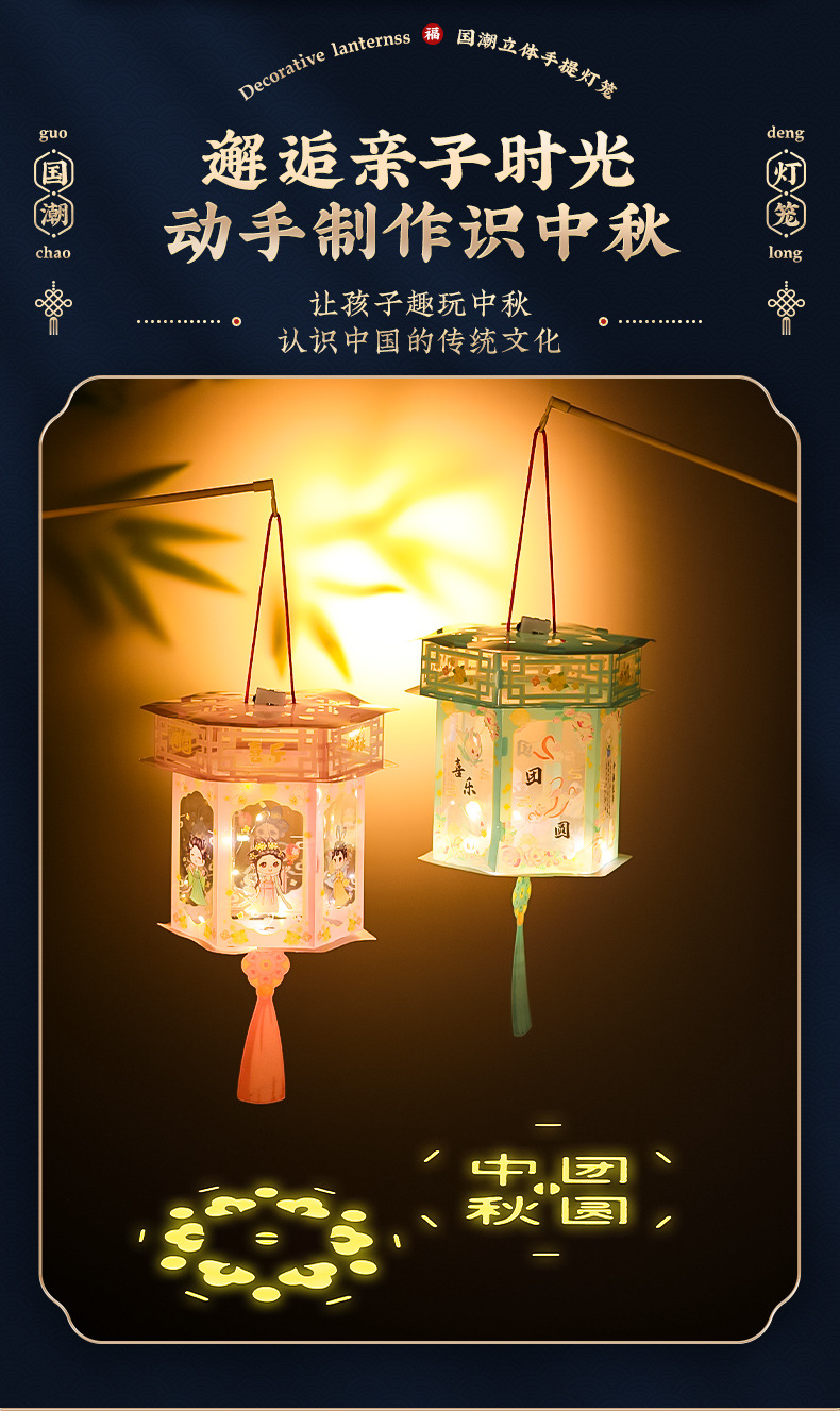 超值两个装【盏盏小灯笼!浓浓氛围过佳节】中秋灯笼儿童手提复古灯笼古风 新款手工diy材料包发光走马灯,让孩子趣玩中秋 认识中国的传统文化。ry