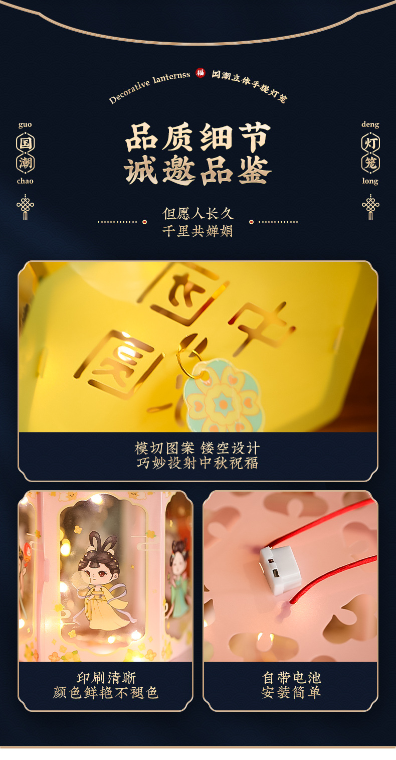 中秋发光灯笼投影走马灯儿童手工diy材料包led手提花灯地摊批