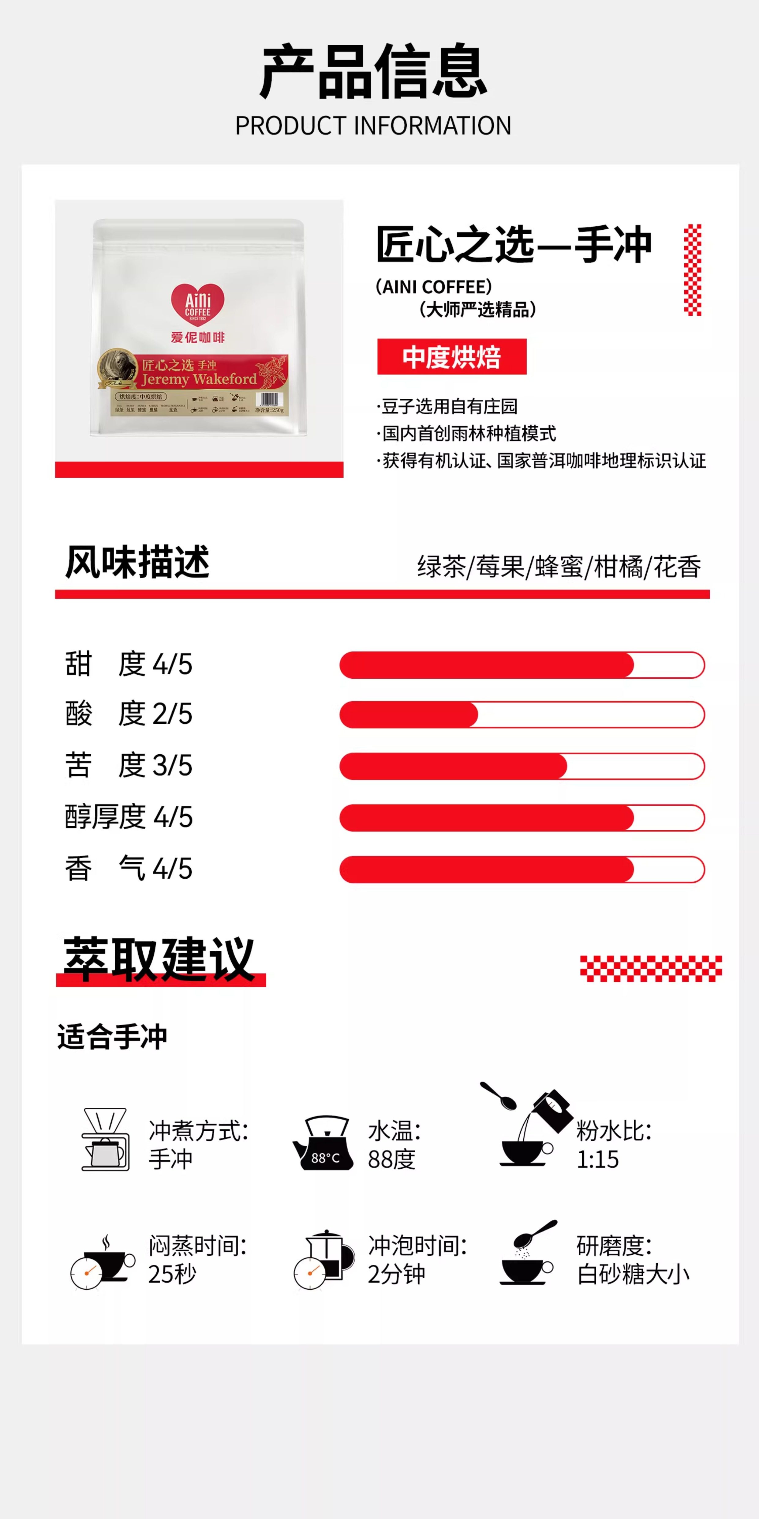 爱伲庄园 匠心之选咖啡豆 中烘手冲/深烘意式 拼配精品云南咖啡豆250g/袋