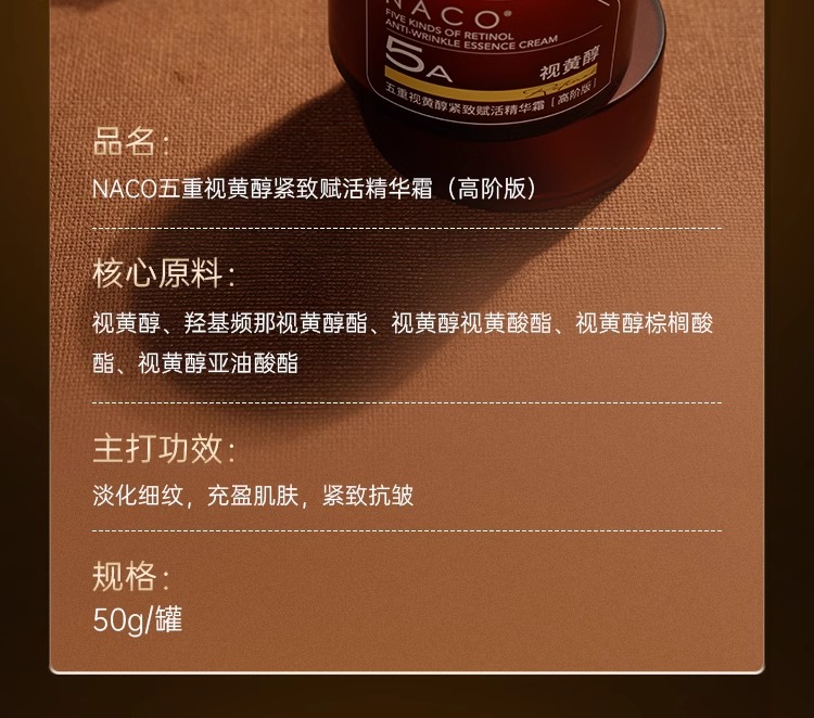 【4周抗皱抚纹 紧致提拉】NACO五重视黄醇紧致赋活精华霜(高阶版)50g#5a视黄醇精华抗皱保湿面霜紧致提拉非抗衰老官方旗舰店正品