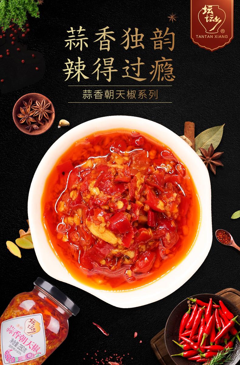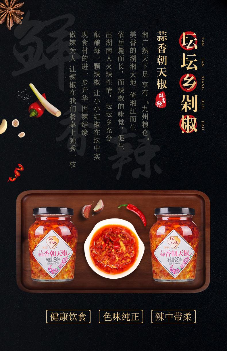 坛坛乡蒜香朝天椒280g瓶装剁辣椒酱湖南特产拌面蒜蓉豉香拌饭辣酱