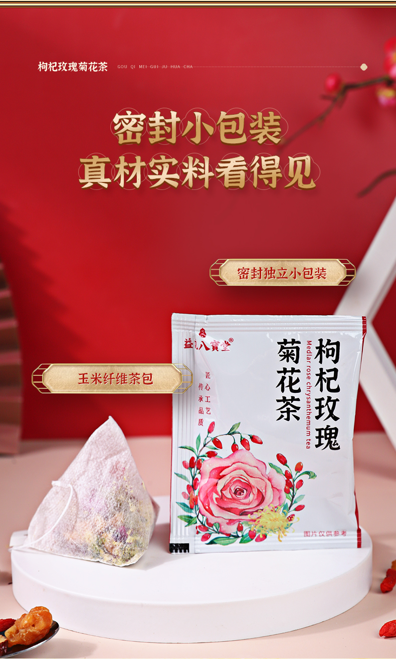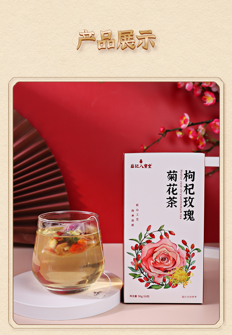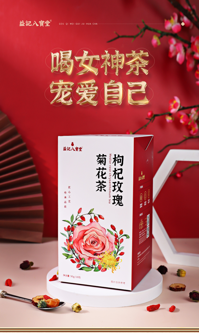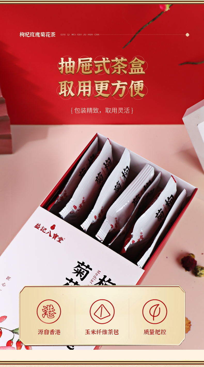 香港益记八宝堂 枸杞玫瑰菊花茶 独立包装 港式代用茶16包/盒 买2送16包