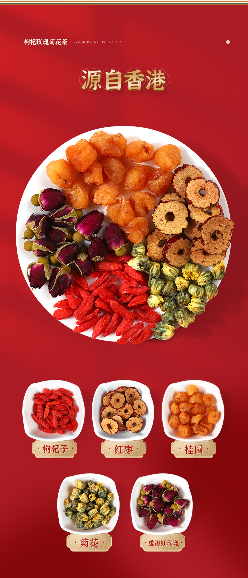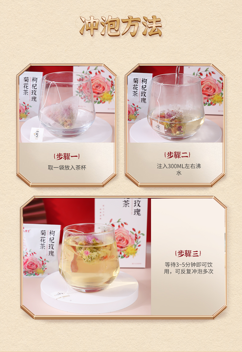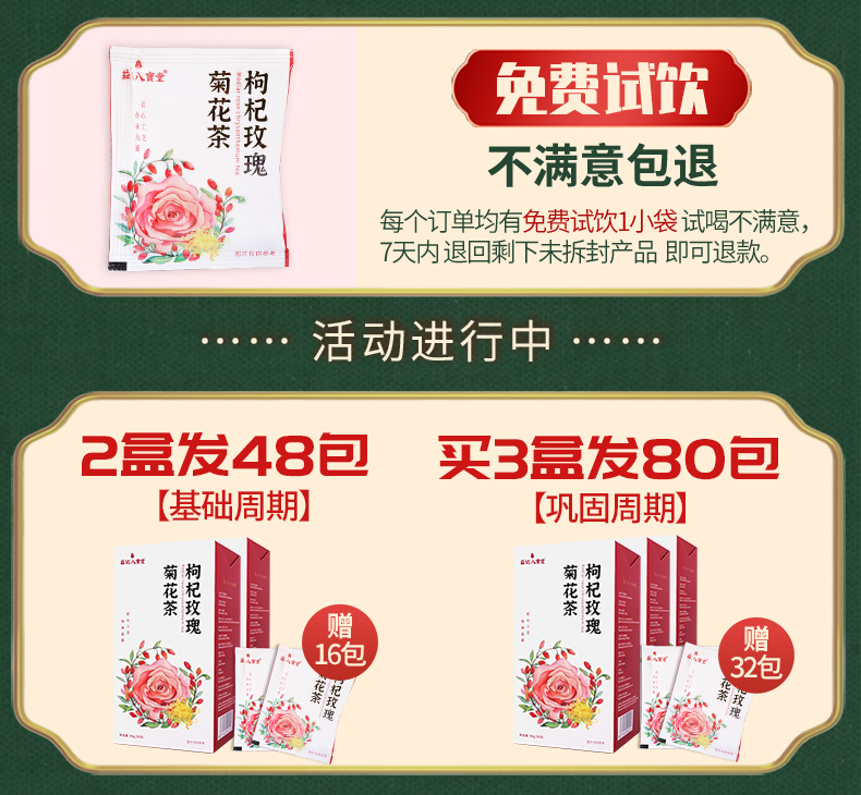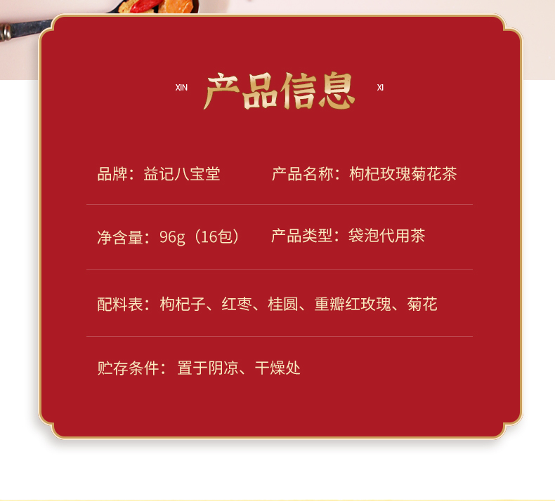 香港益记八宝堂 枸杞玫瑰菊花茶 独立包装 港式代用茶16包/盒 买2送16包
