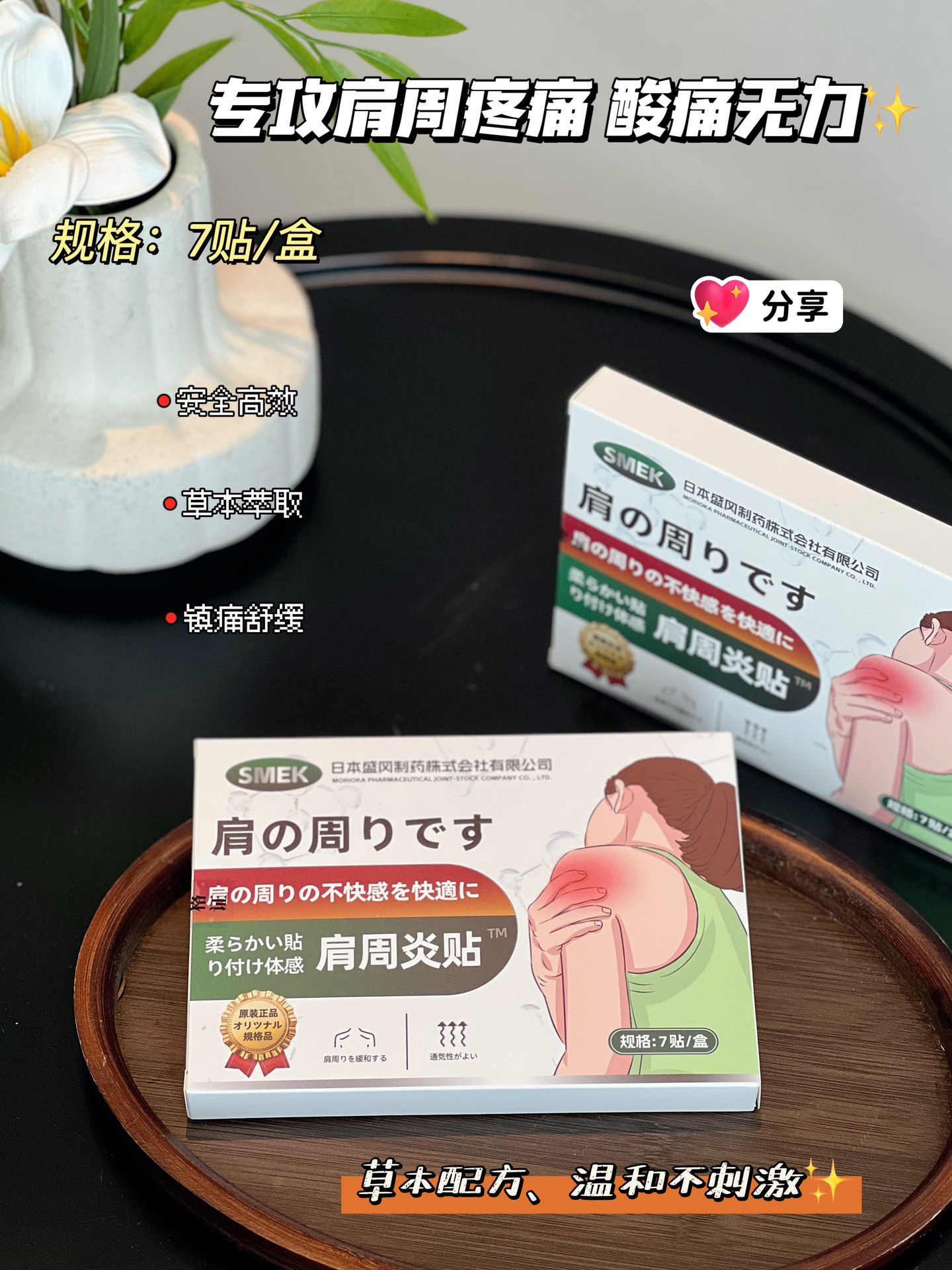 【日本SMEK肩周炎贴】肩膀酸痛!肩颈无力!抬不起来!通通打咩X一盒顶~普通药膏10瓶,多种中yao草本成分协同作用深入肌底直接作用于受损组织!