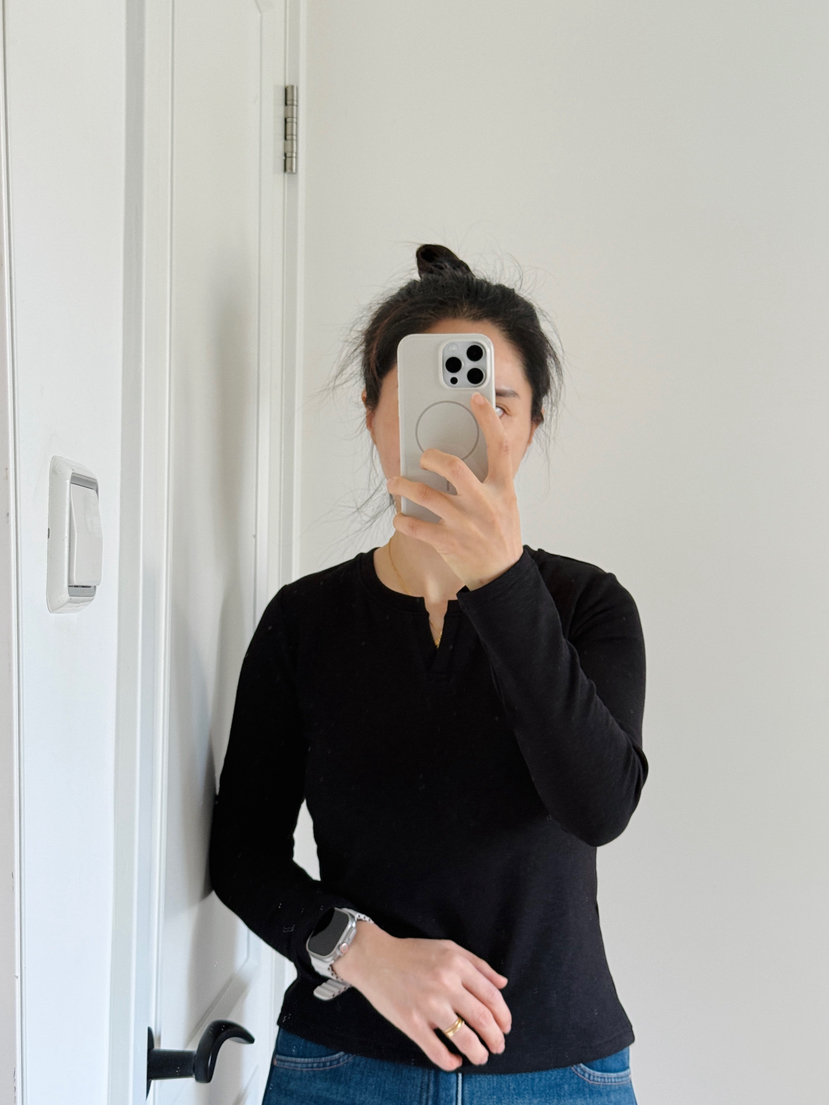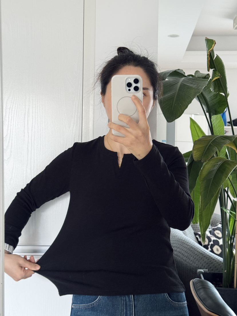 后领口本布包领,穿着不会有摩擦感;长袖设计在更保温、防风,衣袖自然堆积,更显的整个手臂纤长;袖口、底边都采用双针加固,走线整齐,抗拉防磨;表面呈现竹节肌理纹路,面料更加立体显贵,高弹力,对身材的包容度极高,增加的舒适度和合体性。