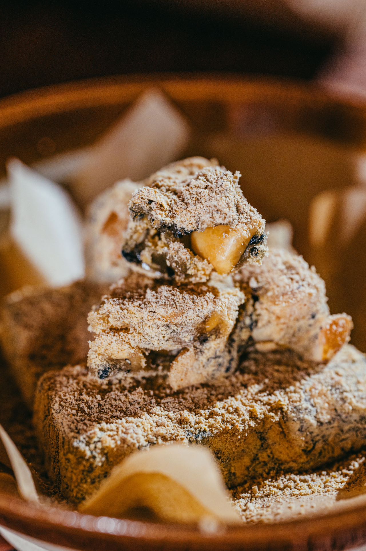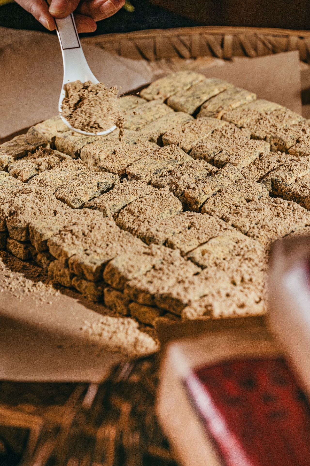 每一块黄豆麻糕都敦厚瓷实。