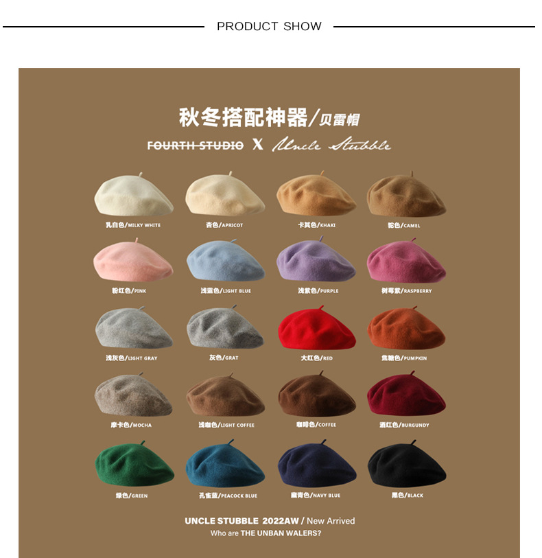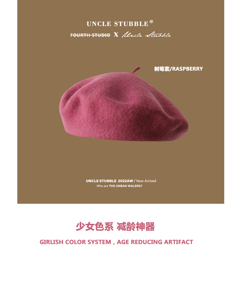 丁摩 羊毛贝雷帽女生冬季百搭蓓蕾帽日系文艺复古画家帽子4ZF-123004