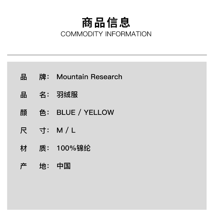 Mountain Research Puff JKT. 联名款轻量保暖连帽羽绒服