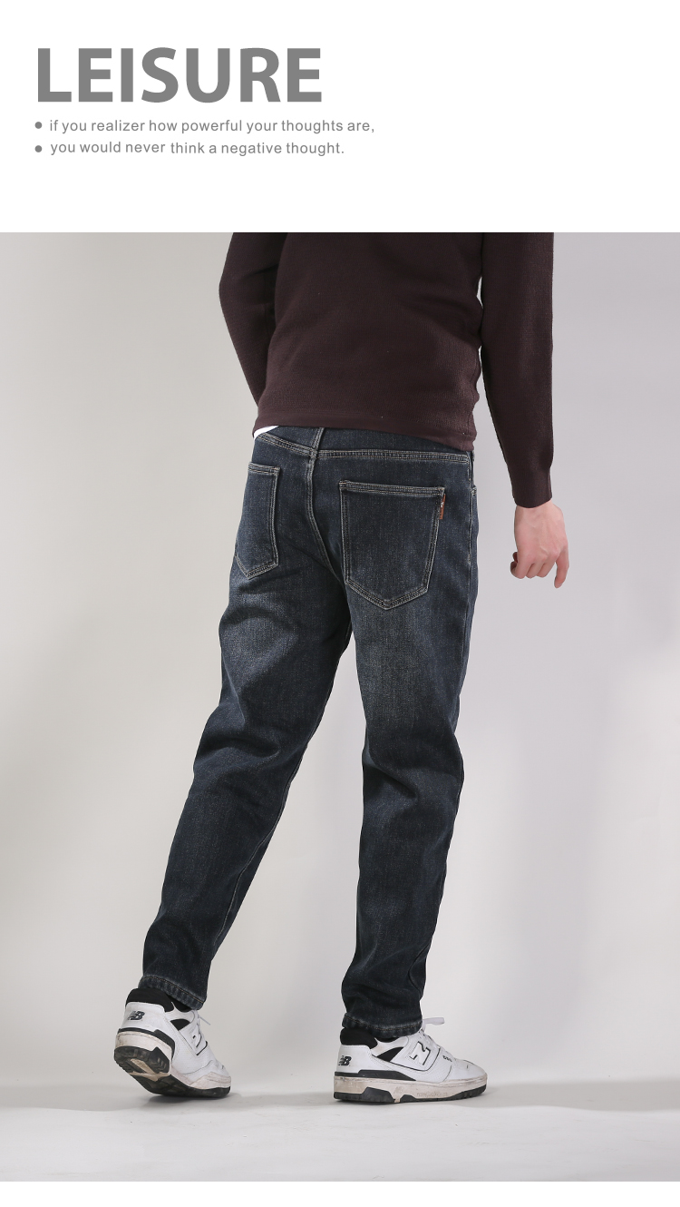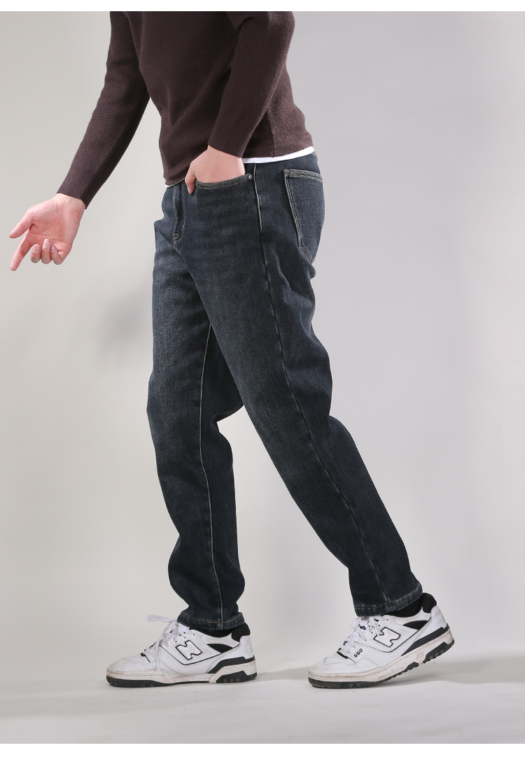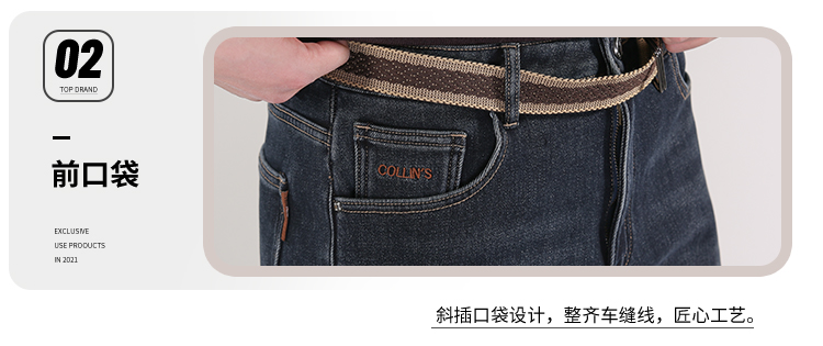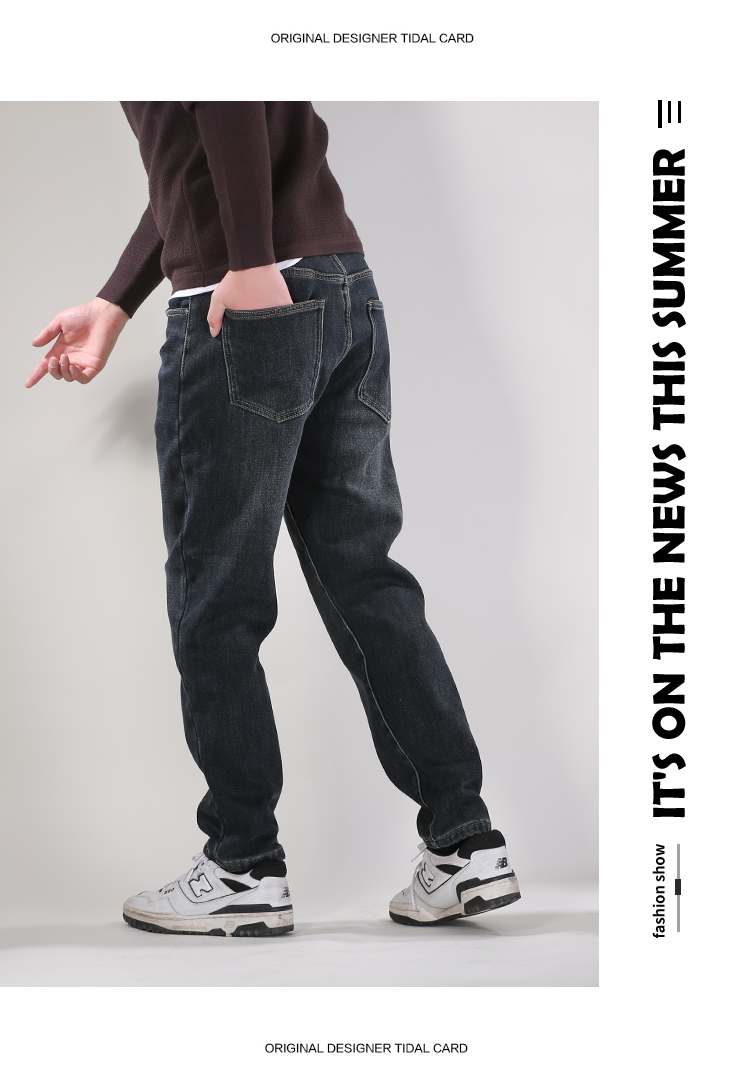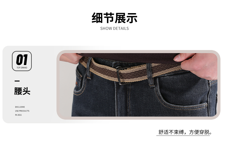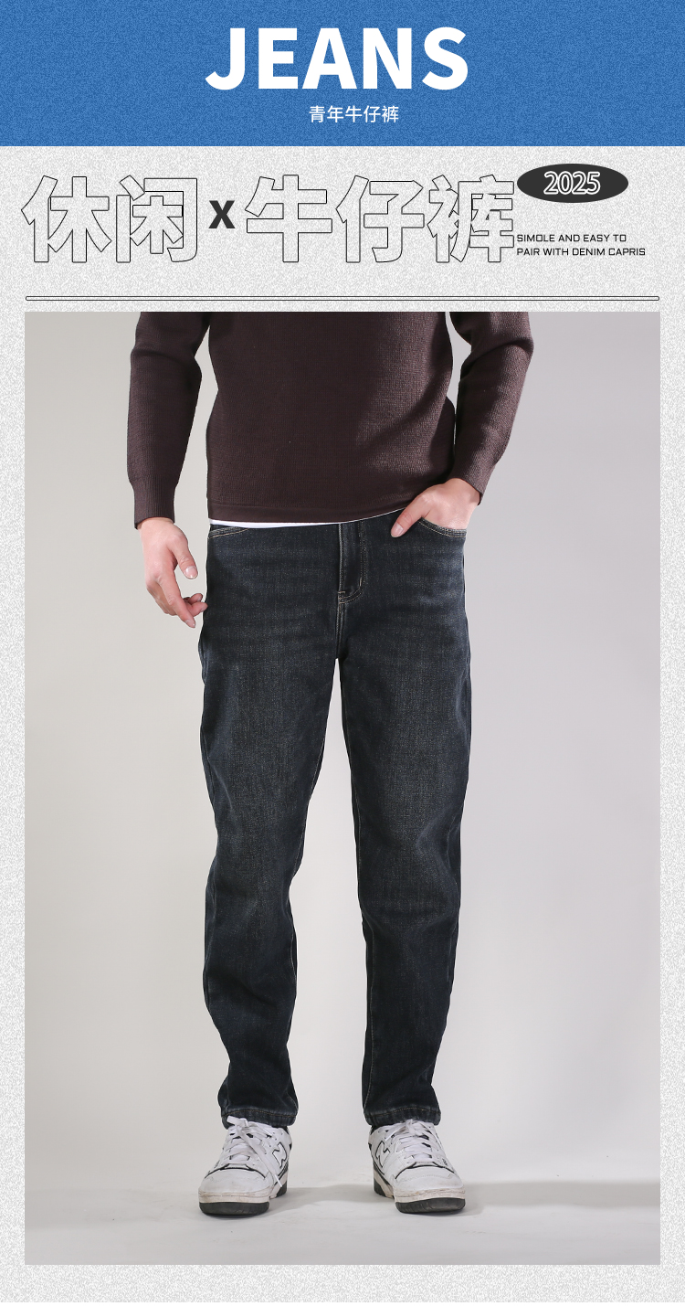 DRONKOO 2025 织带腰带表袋刺绣字母复合绒厚牛仔长裤