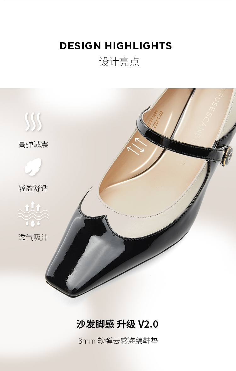 DFuse迪芙斯复古高跟小方头玛丽珍单鞋女细跟一字扣带DF33111222