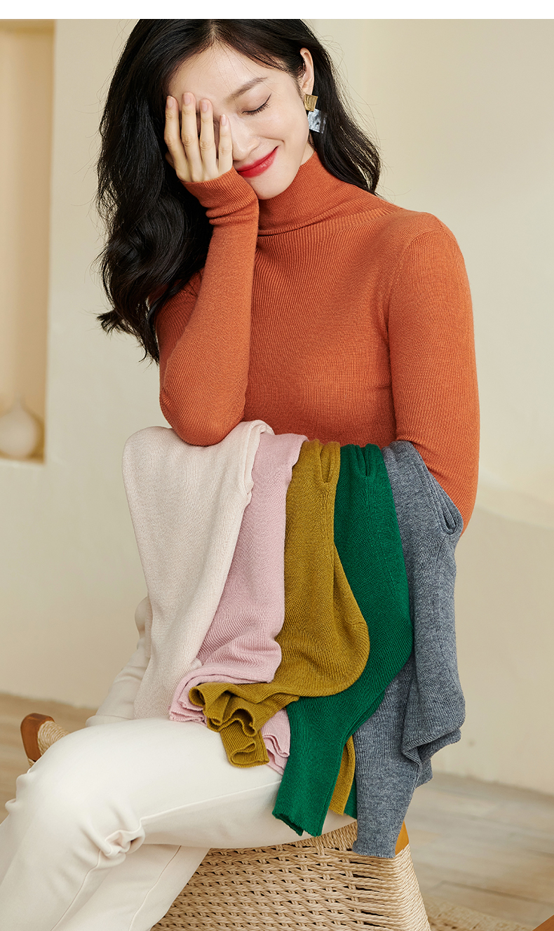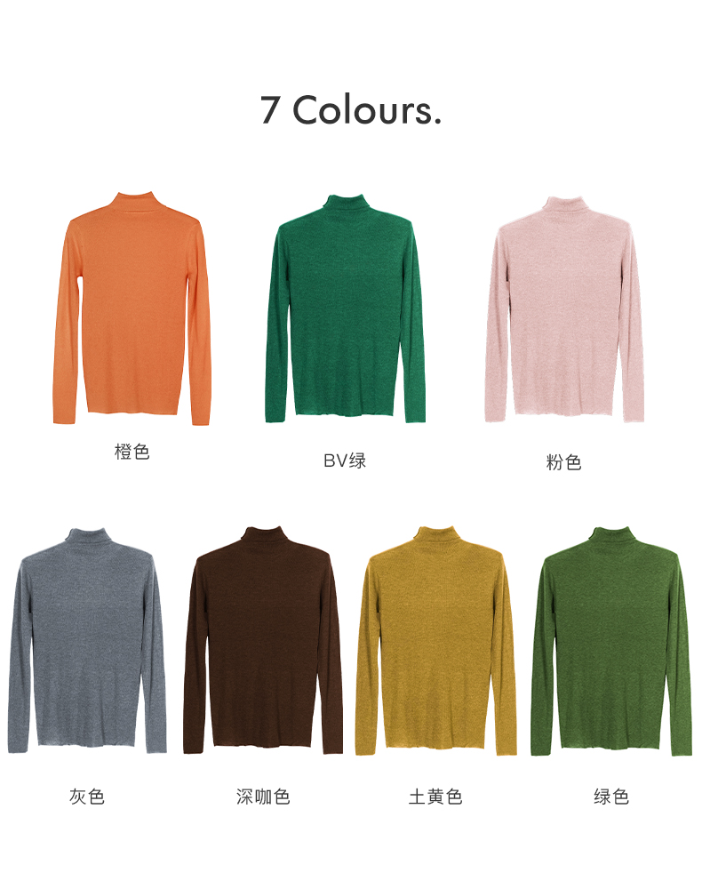 软弹15色羊毛针织打底衫 贴肤不扎 人手2件的百搭打底衫 纯色紧身羊毛打底衫高弹针织衫女2900