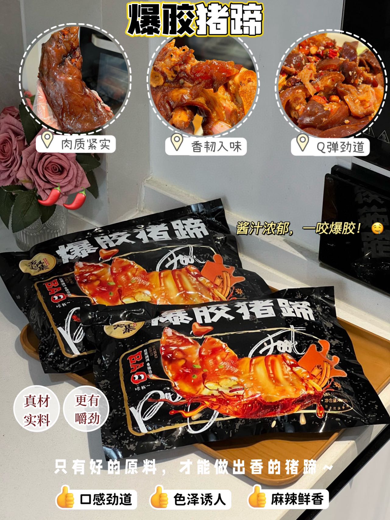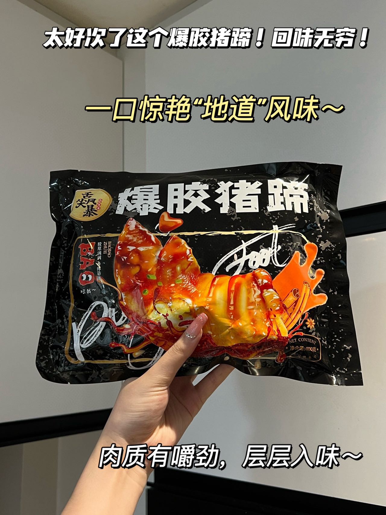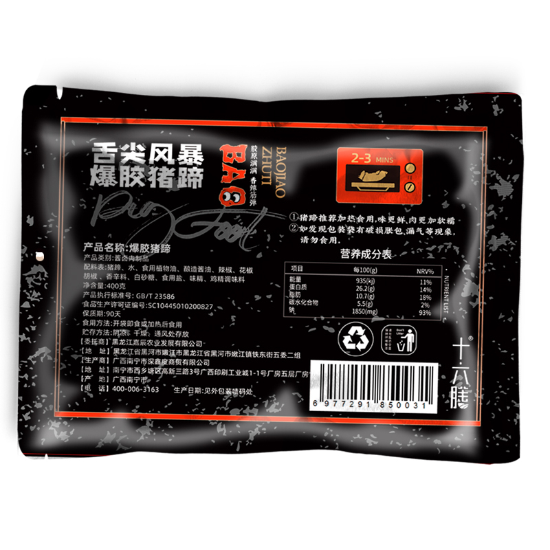 品名:爆胶猪蹄规格:400g/袋发货地/产地:广西/广西保质期: 90天,建议收到后尽快食用。包装方式:袋装物流信息:四通一达或其它快递随机发货,不接受指定快递。不发货区域:新疆、西藏、内蒙、港澳台、疫情管控区。 |