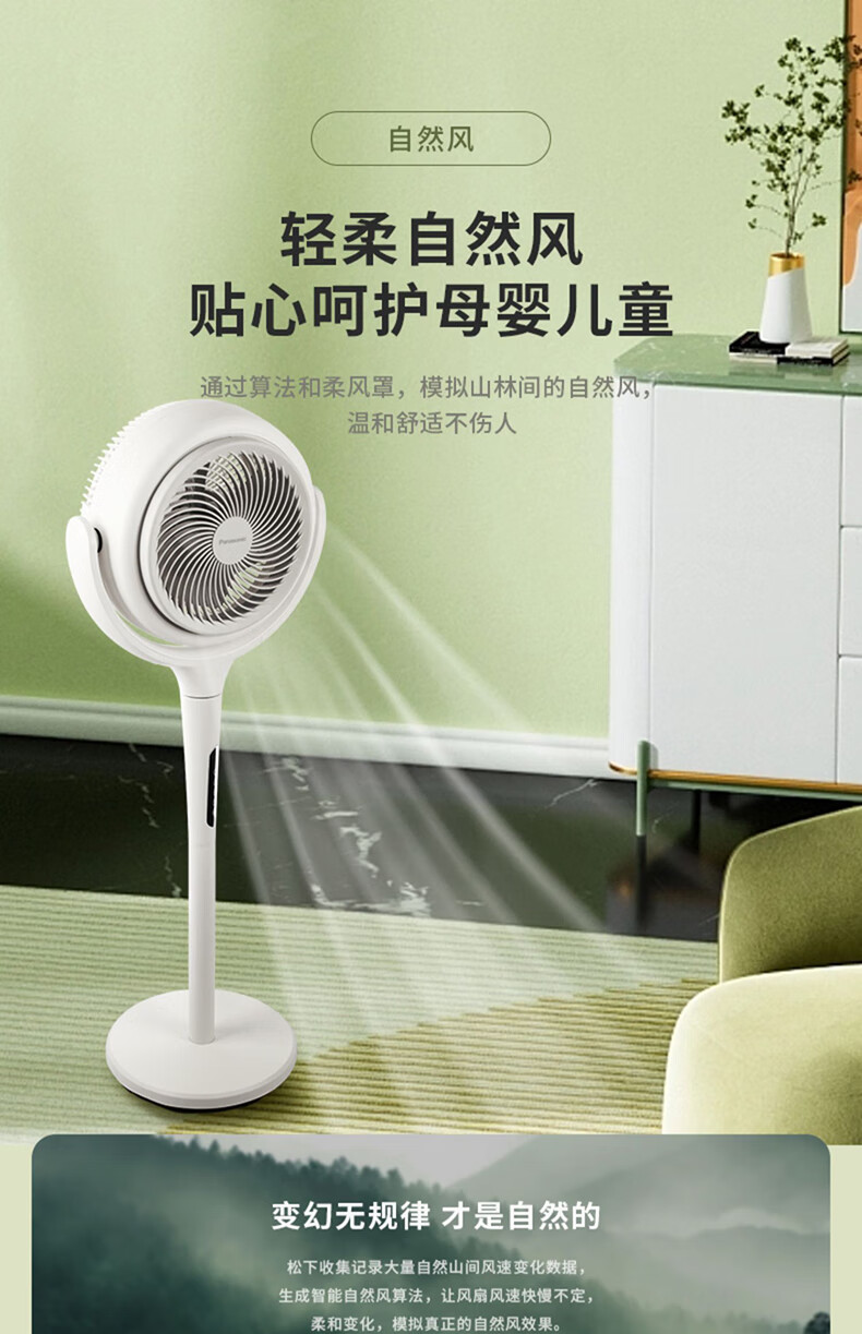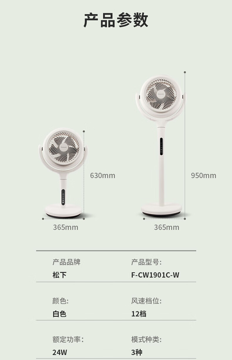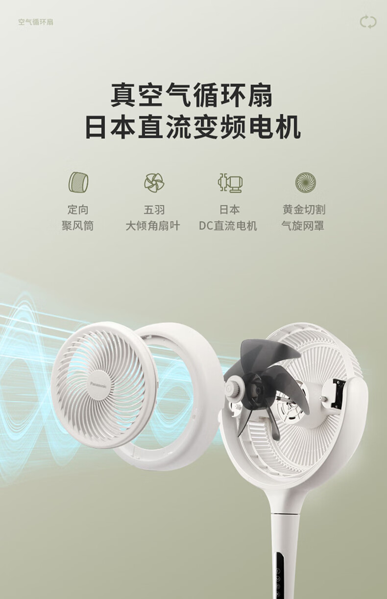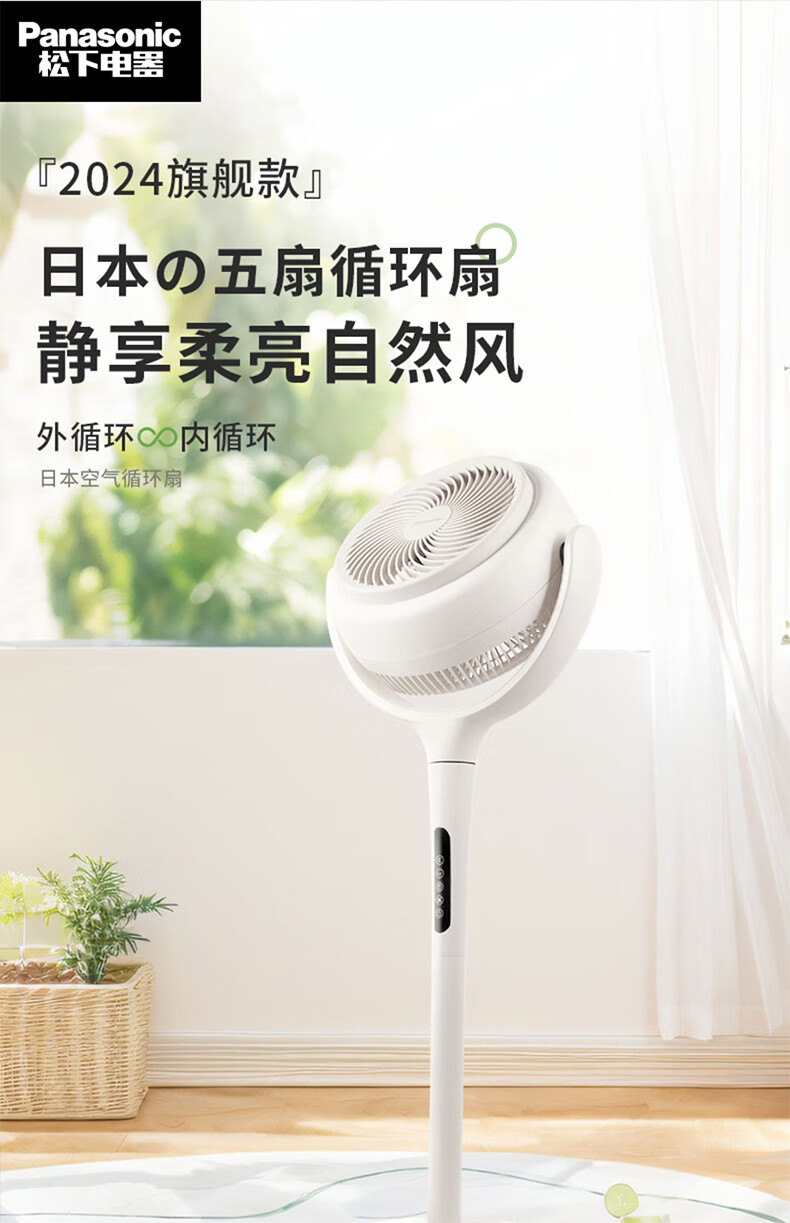 8月内购 松下空气循环扇家用直流变频电风扇落地扇3D立体广角送风 新品上市循环扇F-CW1901C-W