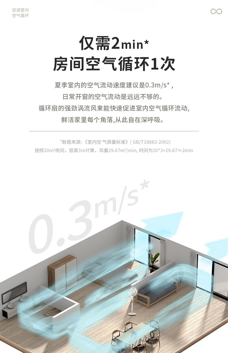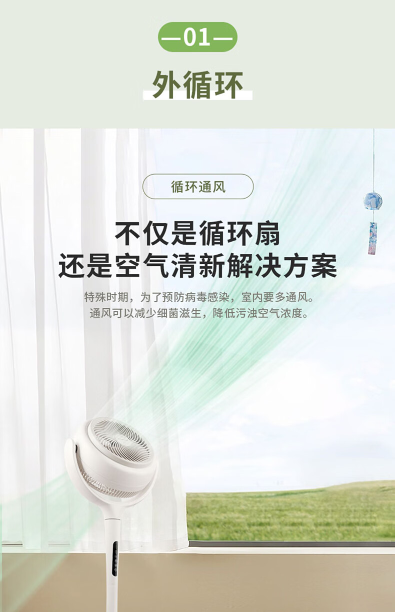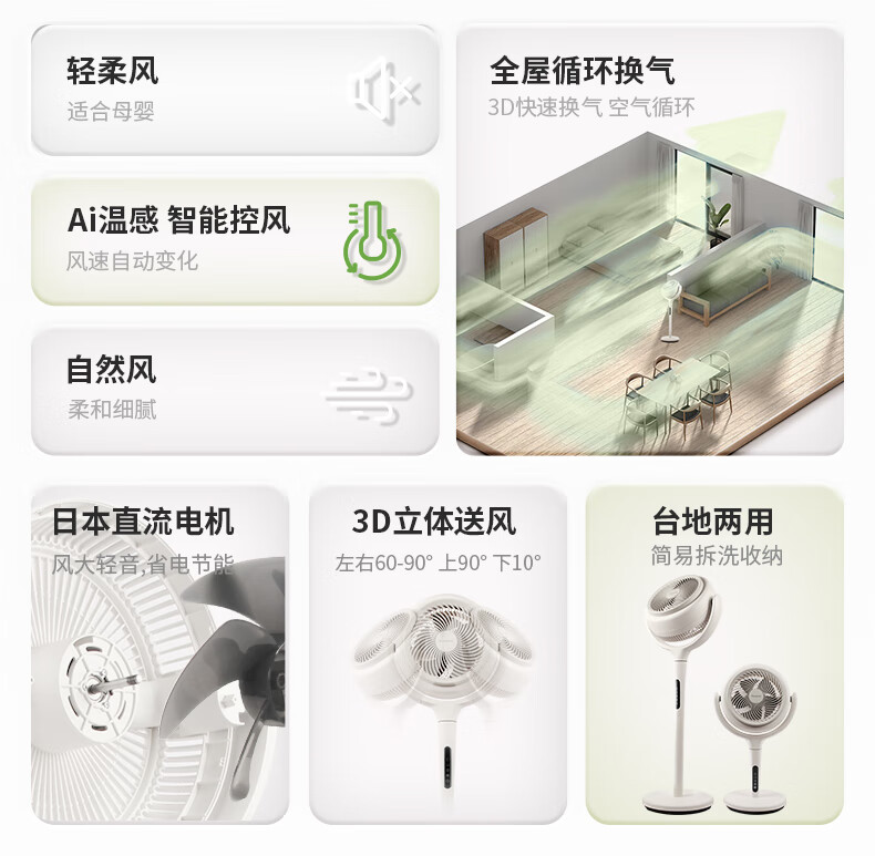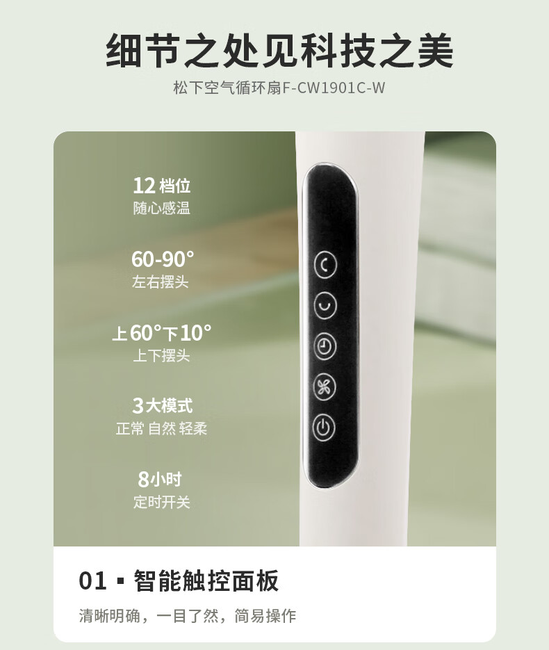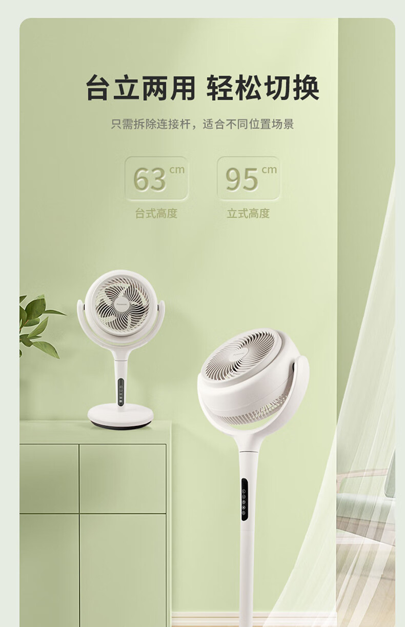 8月内购 松下空气循环扇家用直流变频电风扇落地扇3D立体广角送风 新品上市循环扇F-CW1901C-W